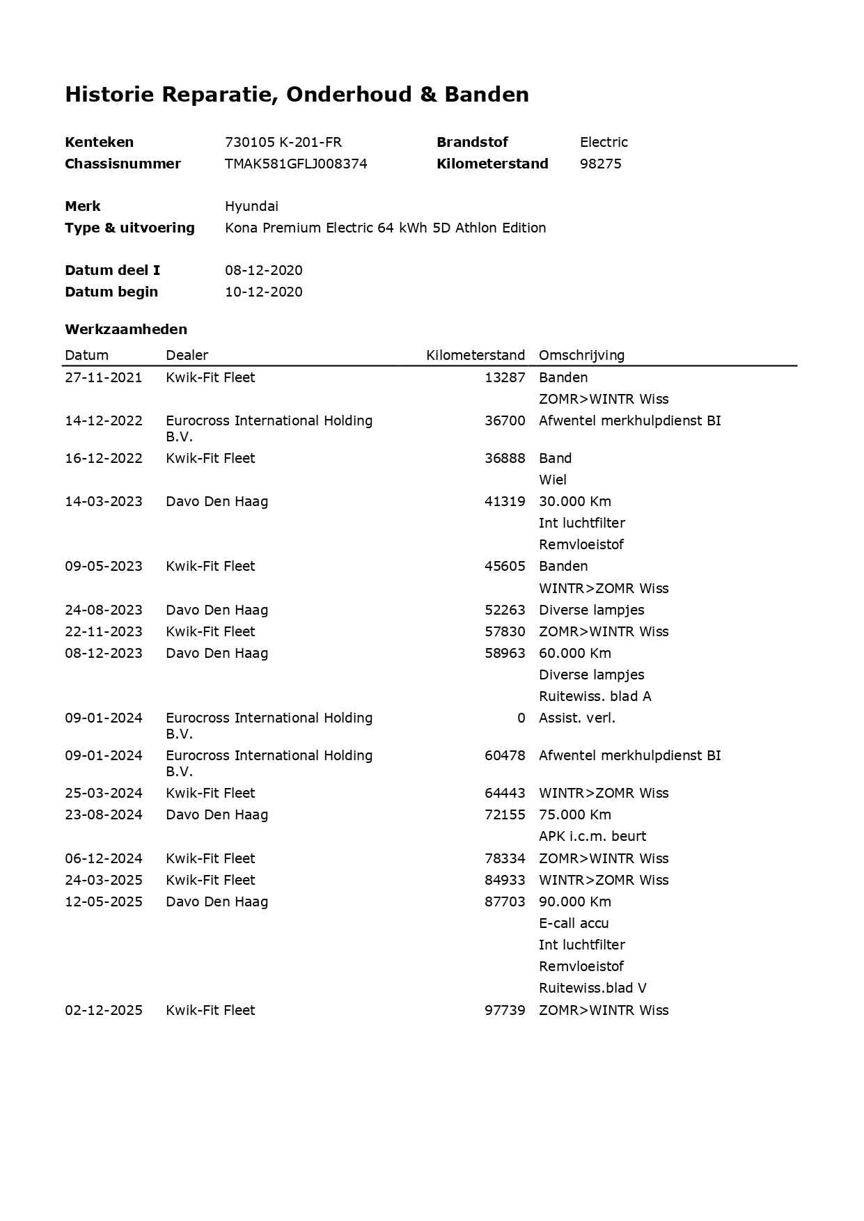 • Km. stand: