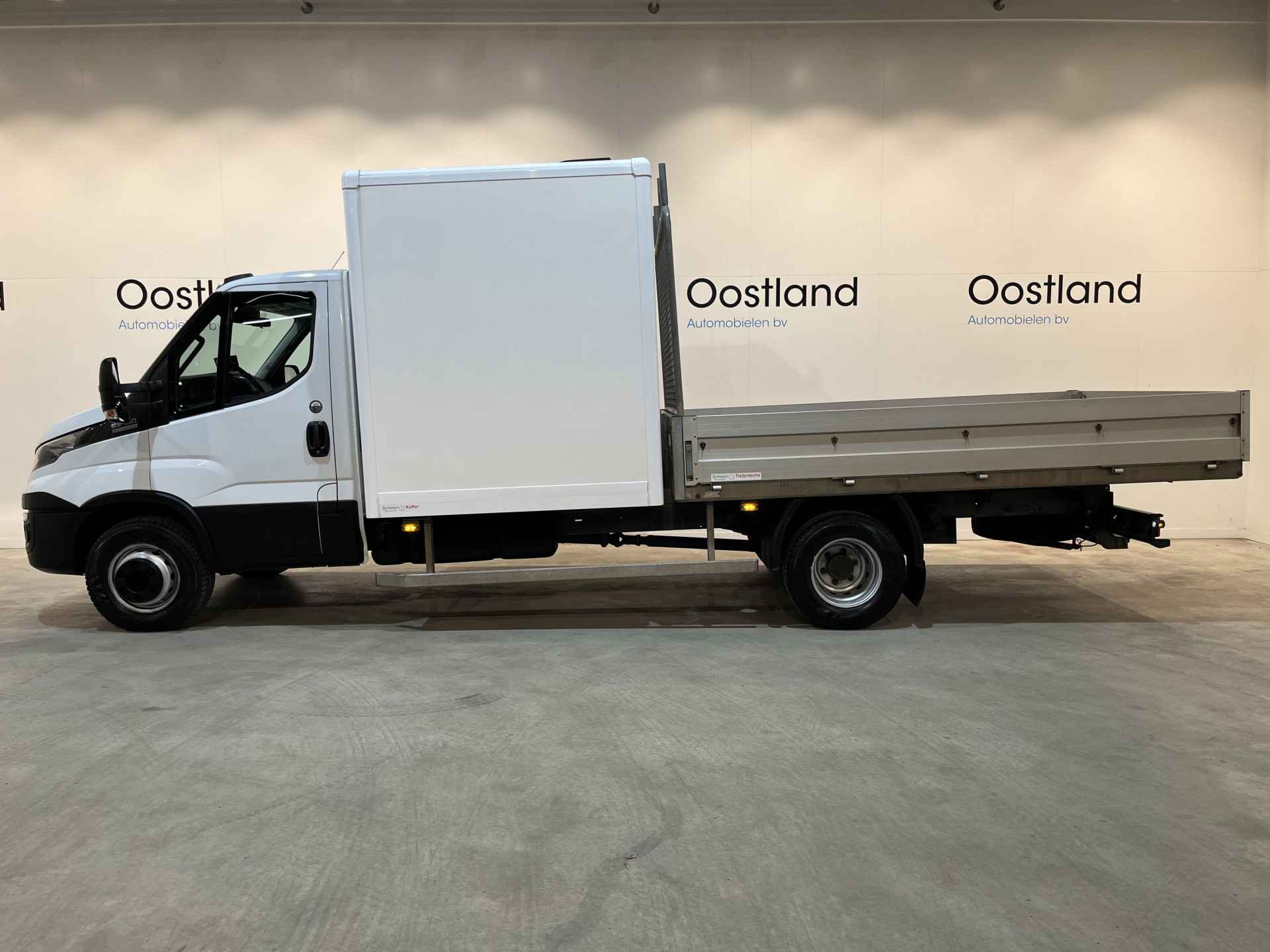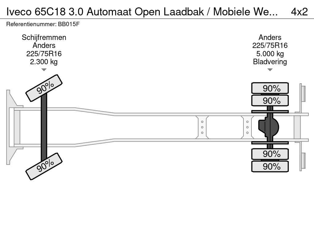 Iveco op C rijbewijs met o.a. open laadbak, mobiele werkplaats met Bott inrichting en werkbank, trekhaak 3500 KG, airco, cruise control, achteruitrijcamera.