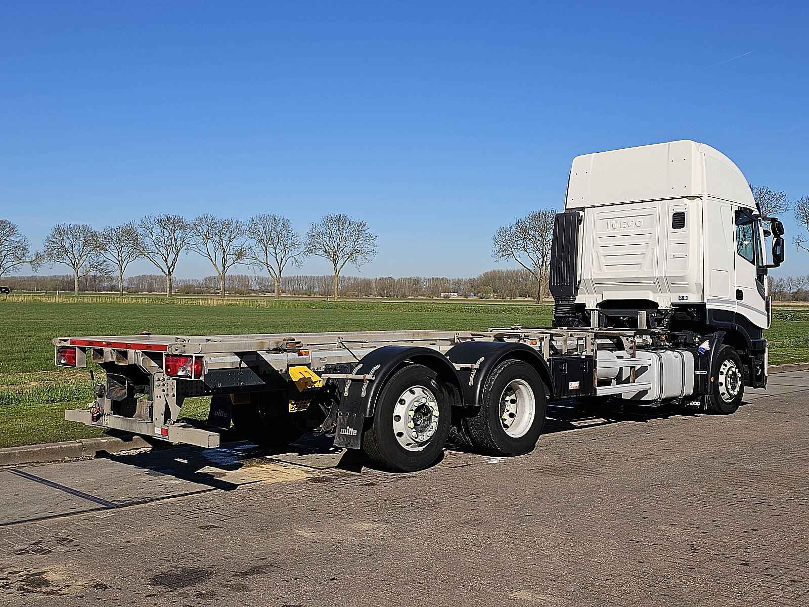Aantal Assen: 3, Configuratie: 6x2, Dubbele banden, Eigen gewicht: 9580 kg, Totaalgewicht: 26000 kg, Diesel inhoud totaal: 390 liter, Aanhangwagen kopp., Dikte koppelingspen: 40 DIN, Materiaal chassis: staal, Aantal sperren: 1, Lichtmetalen velgen, Vering type: luchtvering, Soort cabine: slaapcabine, Cruise control, Tachograaf, Digitale tachograaf, Airconditioning, Stand airco, Standkachel, Elektrische ramen, Elektrische spiegels, Radio/cassette, Kleur: Wit, Verwarmde spiegels, Soort lampen: Halogeen, Laneassist, Stoelverwarming, Bluetooth, Motorvermogen: 309 Kw (414 Hp), Brandstof: diesel, Euro: 6, Soort versnellingsbak: Automaat, Merk versnellingsbak: ZF, Versnellingen: 12, Extra remsysteem, Merk retarder: Intarder, Stuurbekrachtiging, ABS (Anti Blokkeer Systeem), ASR (Anti Slip Regeling), Start accu, Twistlocks: 1x20, Stoelopstelling: 1+1, Stoelbekleding: stof, Stoel verstelling: Handmatig, Profiel reservewiel: 88 %