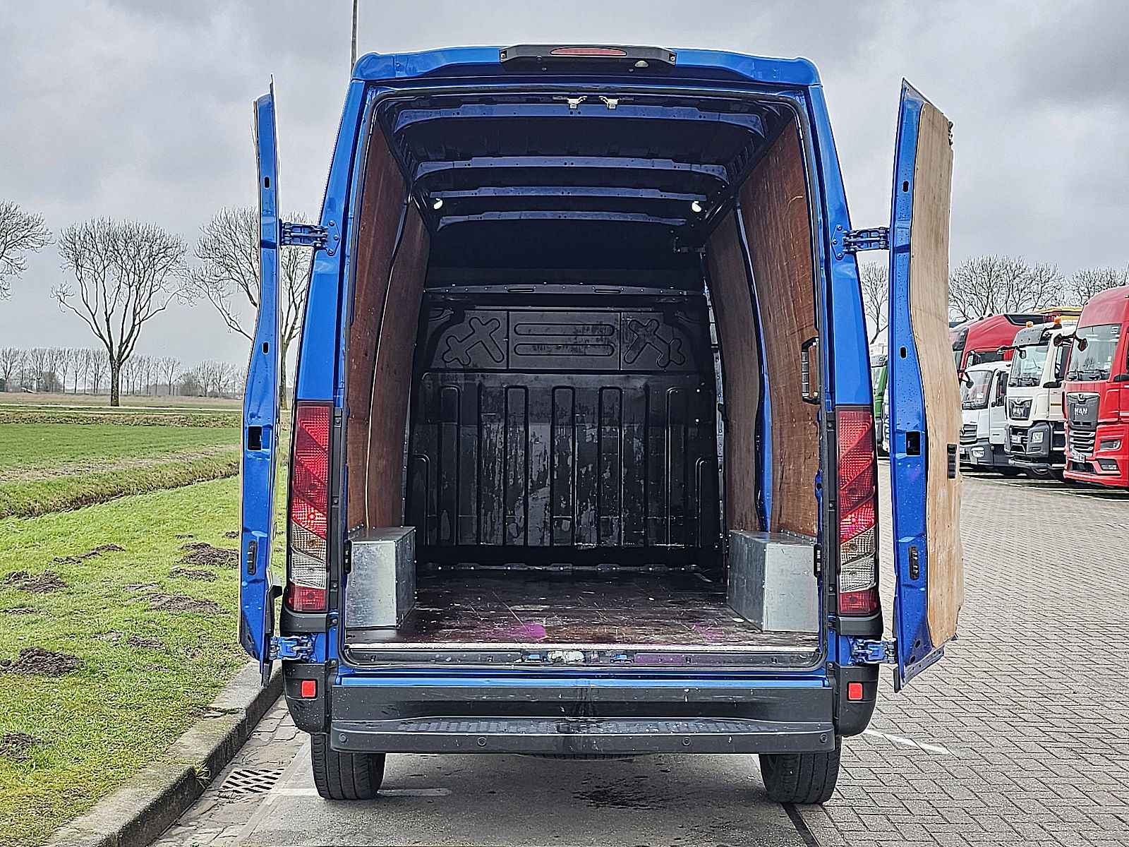 Configuratie: 4x2, Lichtmetalen velgen, Soort cabine: enkele cabine, Cruise control, Airconditioning, Aantal airbags: 1, Parkeerhulp: Voor en achterkant, Getint glas, Elektrische ramen, Elektrische spiegels, Tussenschot, Radio/cassette, GPS navigatie, Kleur: Blauw, Metallic, Verwarmde spiegels, Achteruitrij camera, Soort lampen: Halogeen, Laneassist, Climatecontrol, Bluetooth, Motorvermogen: 129 Kw (173 Hp), Brandstof: diesel, Euro: 6, Distributie type: Distributieketting, Soort versnellingsbak: Automaat, Stuurbekrachtiging, ABS (Anti Blokkeer Systeem), ASR (Anti Slip Regeling), Start accu, Opbouw model: L2H3 – Middellange wielbasis, hoog dak, Laadruimte betimmerd, Imperiaal: Geen, Zijdeuren: 1, Achtersluiting: dubbele deur, Centrale vergrendeling, Zitplaatsen: 3, Stoelopstelling: 1+2, Stoelbekleding: leder, Stoel verstelling: Handmatig, L2H2, 3.0L, automaat, airco, navi, pdc, Reservewiel, Banden soort: Zomer banden