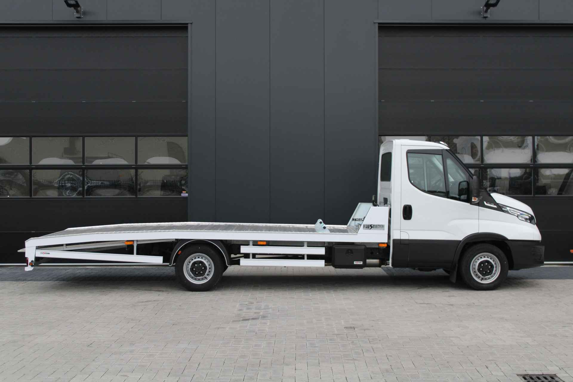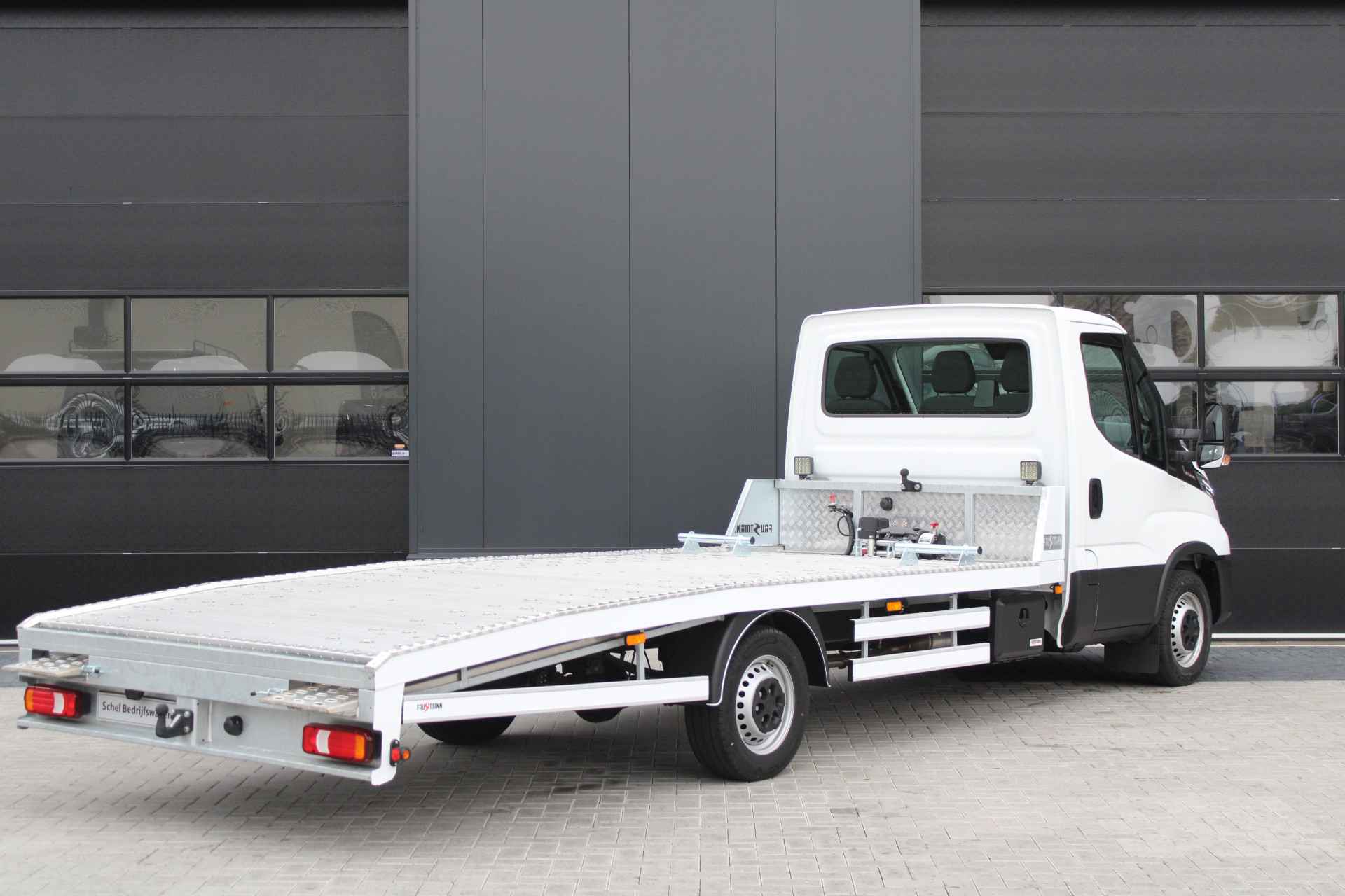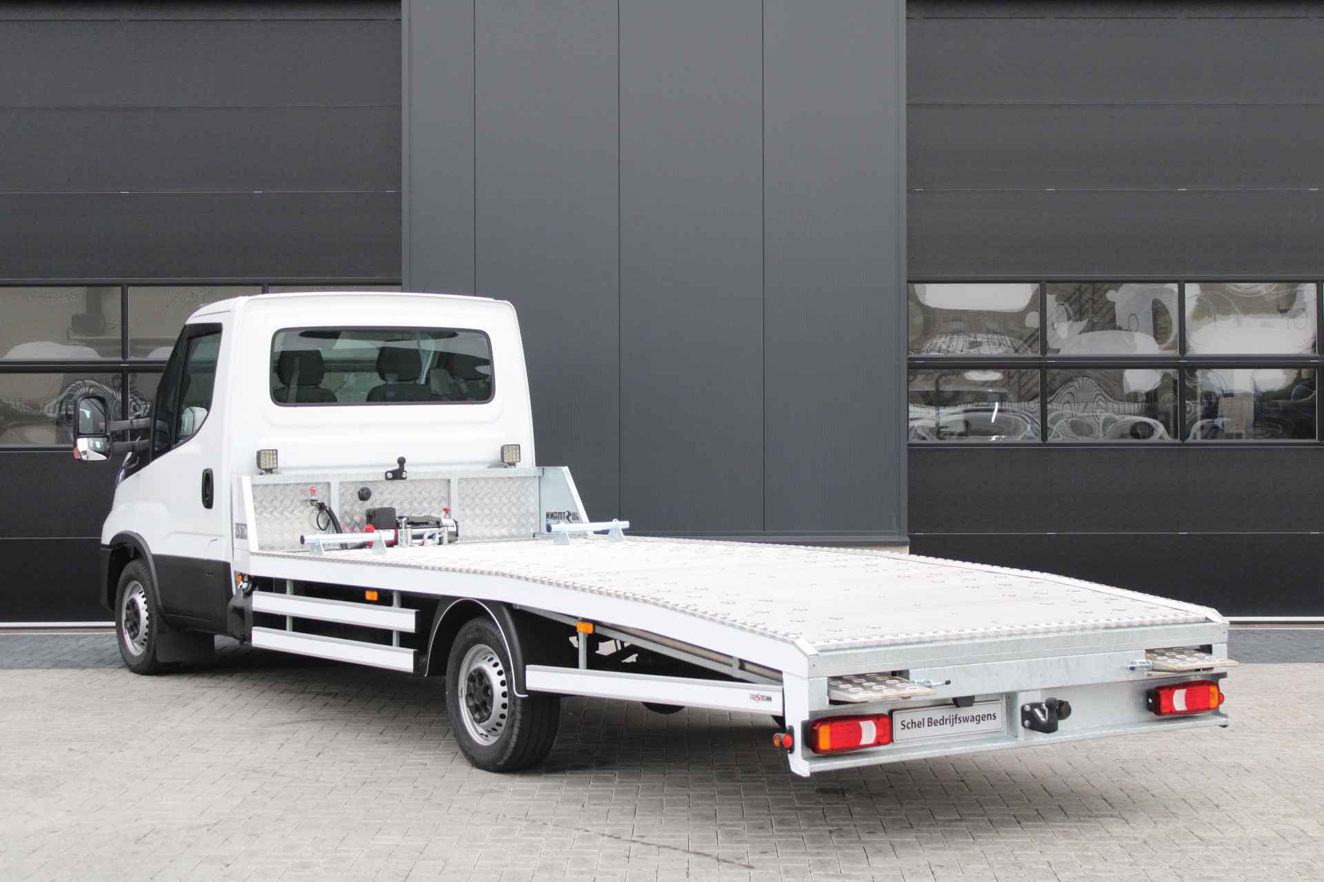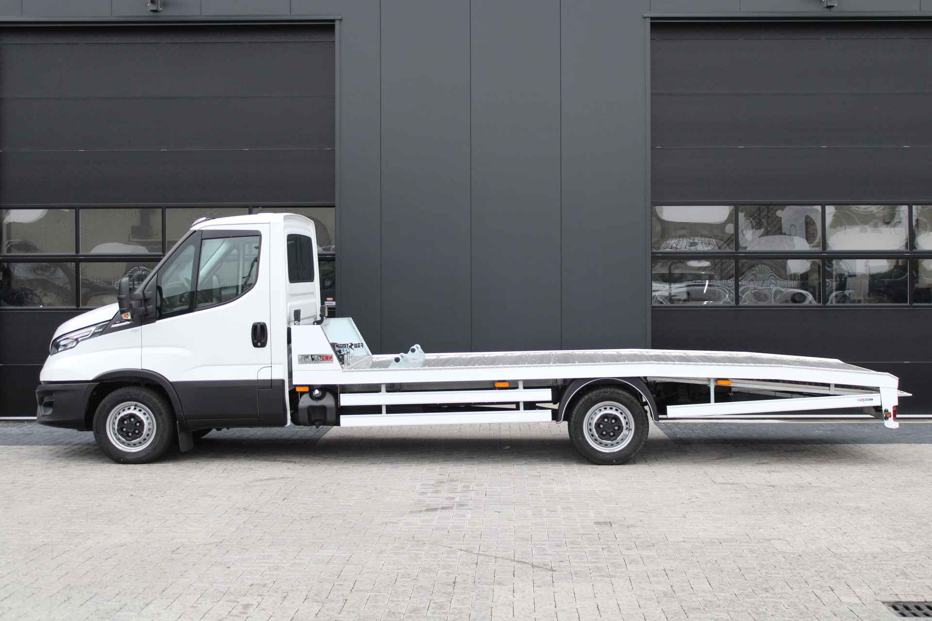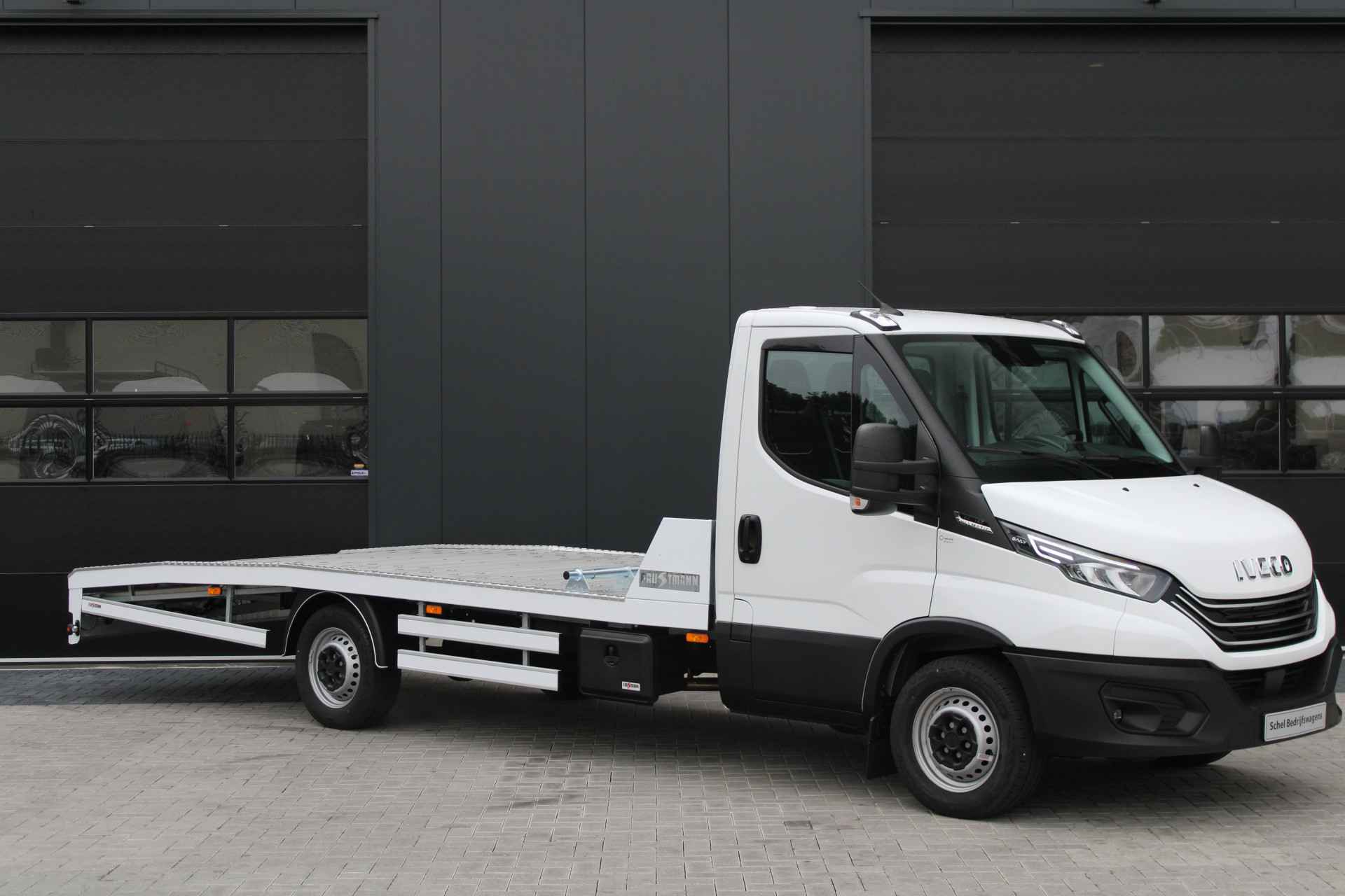 Deze Iveco Daily 35S18 met 3.0L motor en 180 pk is een rijklaar afgeleverde autotransporter, specifiek opgebouwd door Faustmann. Dankzij de automatische transmissie, geveerde bestuurdersstoel en uitgebreide uitrusting is dit voertuig ontworpen voor intensief en comfortabel gebruik in het dagelijks transportwerk.