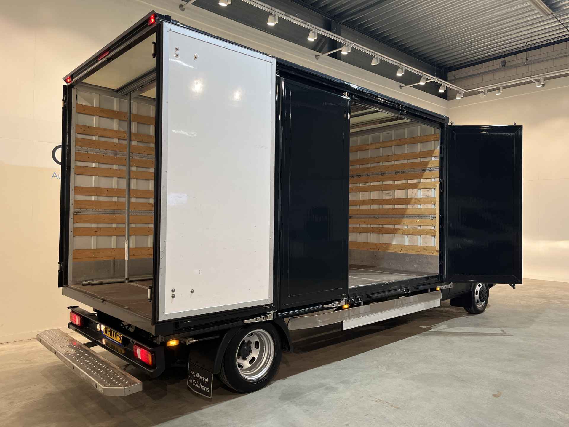 Laadbak voorzien van harmonica-zijdeuren rechterkant. Ideaal voor het laden van grote objecten via de zijkant met een heftruck.