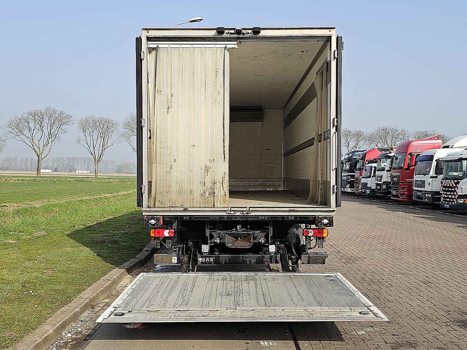 Aantal Assen: 2, Configuratie: 4x2, Eigen gewicht: 8300 kg, Totaalgewicht: 14000 kg, Diesel inhoud totaal: 260 liter, Aanhangwagen kopp., Dikte koppelingspen: 40 DIN, Schotel type: Fixed, Aantal sperren: 1, Vering type: luchtvering, Soort cabine: Korte cabine, Cruise control, Tachograaf, Digitale tachograaf, Airconditioning, Elektrische ramen, Elektrische spiegels, Radio/cassette, Kleur: Blauw, Verwarmde spiegels, Soort lampen: Halogeen, Laneassist, Stoelverwarming, Bluetooth, Motorvermogen: 207 Kw (278 Hp), Brandstof: diesel, Euro: 6, Soort versnellingsbak: AS-tronic, Merk versnellingsbak: ZF, Versnellingen: 12, Stuurbekrachtiging, ABS (Anti Blokkeer Systeem), ASR (Anti Slip Regeling), Start accu, Centrale vergrendeling, Stoelopstelling: 1+1, Stoelbekleding: stof, Stoel verstelling: Handmatig, Merk koelmotor: Thermoking, Type koelmotor: T-1000R, Koelmotor: diesel/elektrisch, Draaiuren elektrisch: 178 uur, Draaiuren diesel: 6532 uur, Verwarming, Wanddikte: 40 mm, Soort koeling: Koelen en vriezen, Dag/nacht koeling: dag/nacht cooling, Laadklep, Soort laadklep: achtersluit klep, Capaciteit laadklep: 1500 kg, Merk laadklep: B.A.R. cargolift, Materiaal laadklep: aluminium, Plateau grootte: 200 x 255