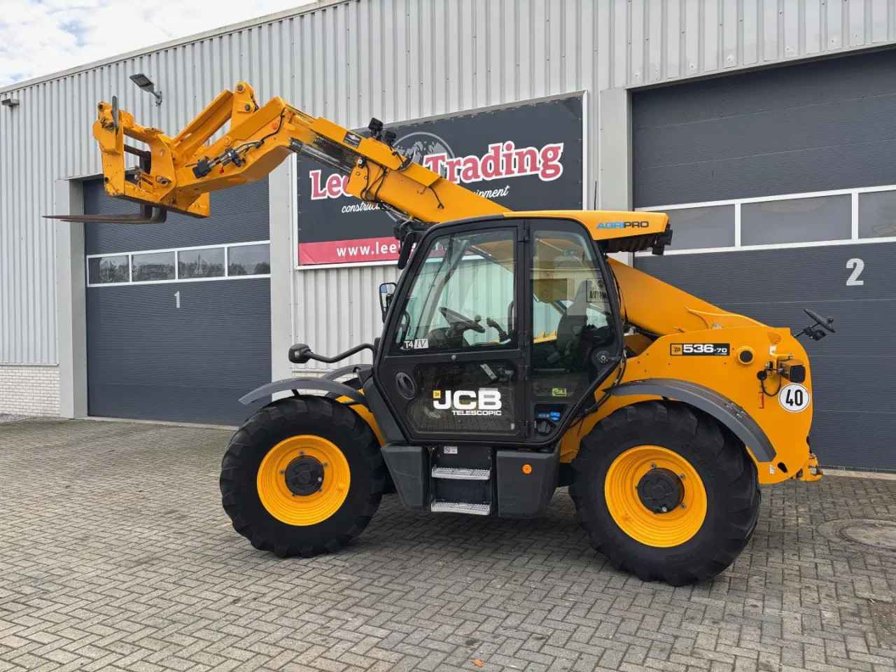 JCB 536-70 AGRIPRO 4x4x4 verreiker, Bouwjaar: 2018, Hefvermogen: 3.600 Kg, 108 Kw/ 145 Pk motor, Hefhoogte: 7 meter. Afgelezen urenstand: 7811. Uitgerust met: 40 KM/H, Snelwissel, Palletvorken, Werkverlichting, Airco, 460/70 R24 Michelin XMCL-banden.