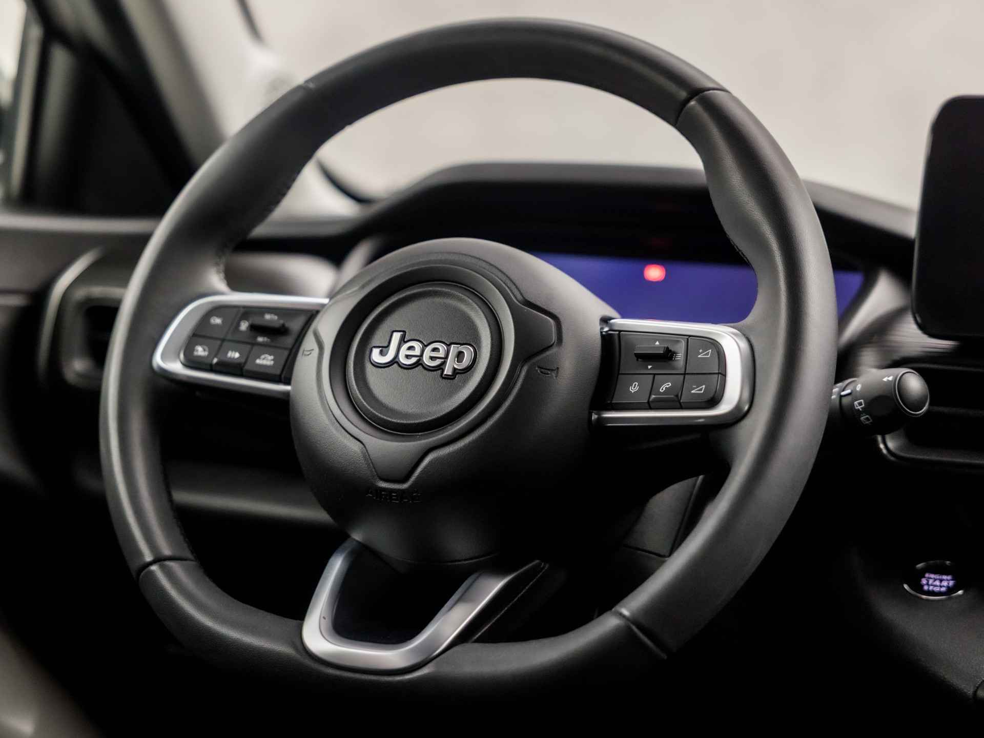 Het digitale dashboard vertelt u onderweg alles dat bijdraagt aan een veilige, efficiënte rit. Dankzij de 360 graden camera op de auto, wordt manoeuvreren in smalle straatjes ineens veel eenvoudiger. Adaptive cruise control houdt de ingestelde snelheid vast en houdt automatisch afstand tot uw voorligger. Deze Jeep Avenger is 'connected'. Belangrijke functies worden permanent gemeten en zijn uit te lezen via een speciale app, ook op afstand. Zo kan muziek in de auto klinken: het high performance audiosysteem levert topklasse geluid! Ook full map navigatiesysteem, automatische airconditioning, draadloos opladen, regensensor, keyless entry en automatisch dimmende binnenspiegel zijn aan boord.