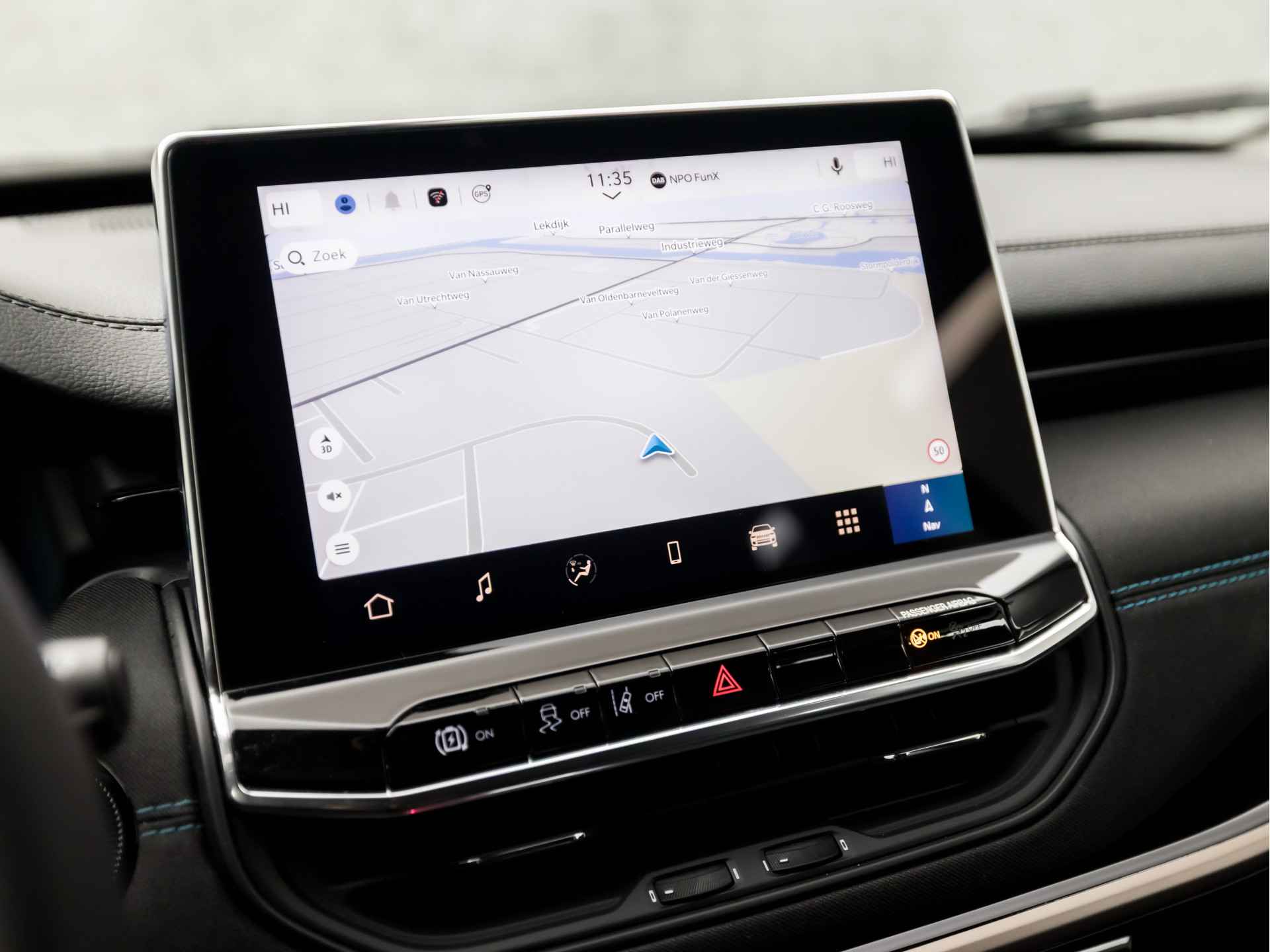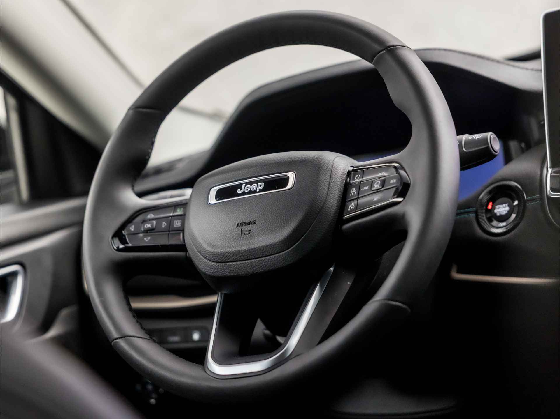 Het rijden met deze Jeep wordt nog meer ontspannen dankzij de innovatieve technieken die onderweg over uw veiligheid waken. Verkeersborddetectie herkent tijdelijke en permanente verkeersborden langs en boven de weg. Deze Jeep Compass is ook behulpzaam als het gaat om een rechte koers. Het Lane-keeping systeem signaleert en corrigeert als u onbedoeld de rijstrooklijnen dreigt te overschrijden. Op een kop-staartbotsing zit niemand te wachten. Daarom is de forward collision warning onderweg constant alert en berekent via een sensor de veilige afstand tot voorliggers. Met voorzieningen als dodehoekdetectie, hill hold functie, vermoeidheidsherkenning, autonoom remsysteem en bandenspanningcontrolesysteem, bent u altijd veilig onderweg.