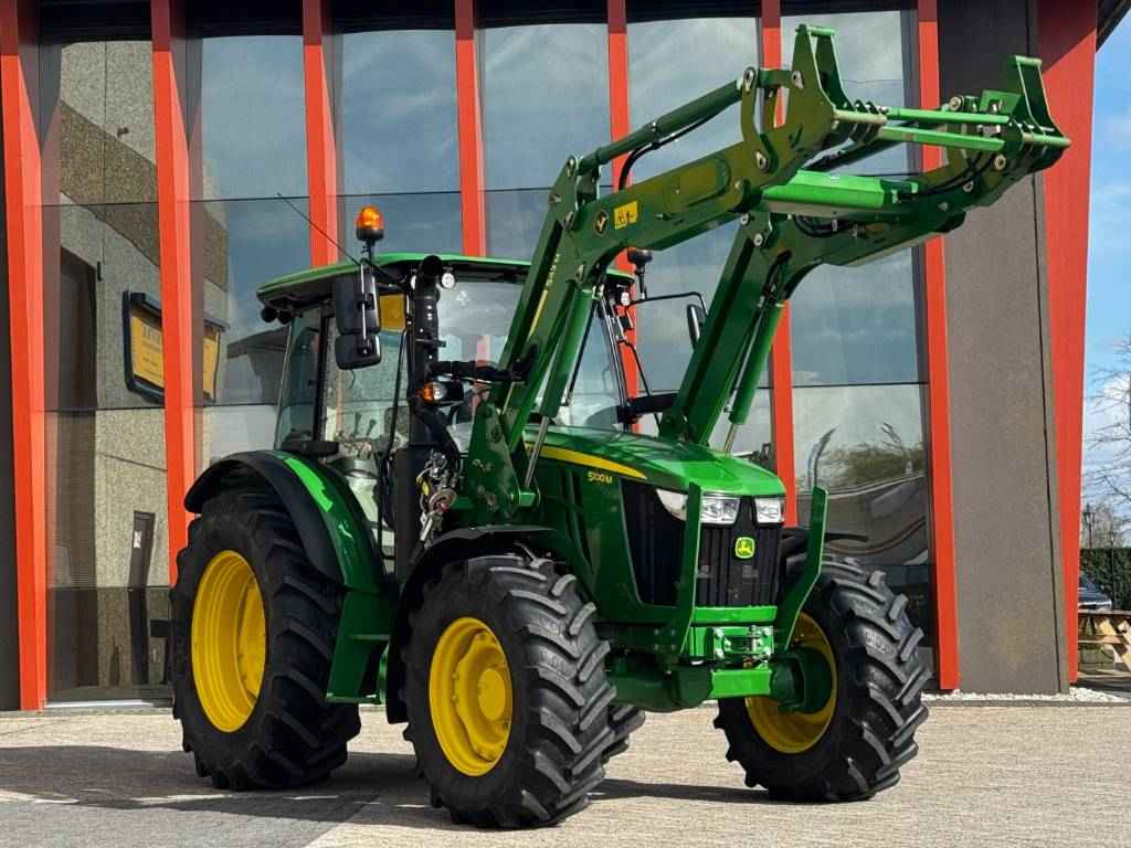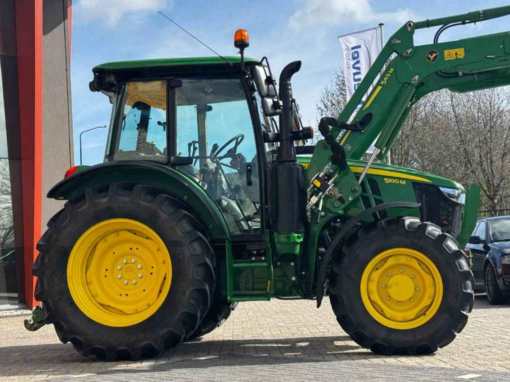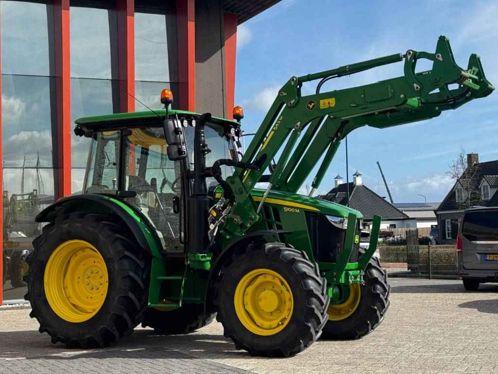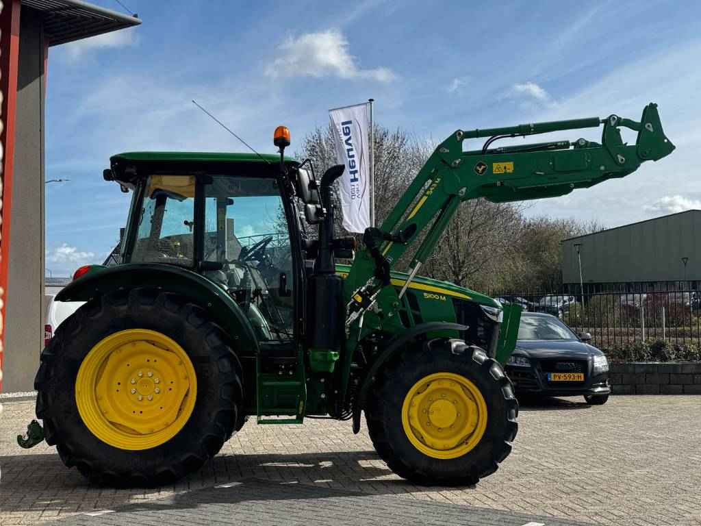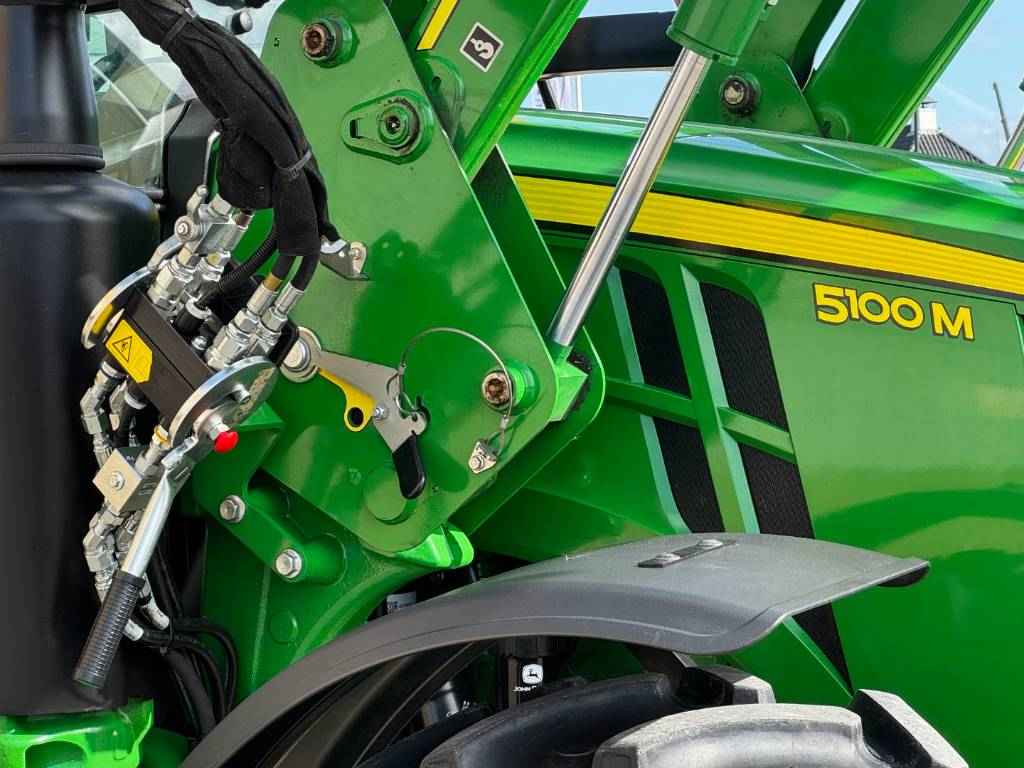 John Deere 5100M, 2022, 887 heures, 32F/16R PowrReverser™, 4 RM, 40 km/h, connection pour chargeur, 3 distributeur, 2 distributeur-midi, 70+24 ltr/min Pumpe d'hydraulique, 540/540E/1000 PdF, joystick, 2-line freinage de remorque hydraulique, Operation du PdF dans l'ailes arrière, attelage regleable, climatisèe, siège à suspension pneumatique, siège du passagiere, radio, 2 balise, ailes avant,