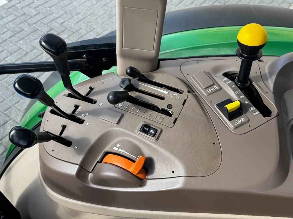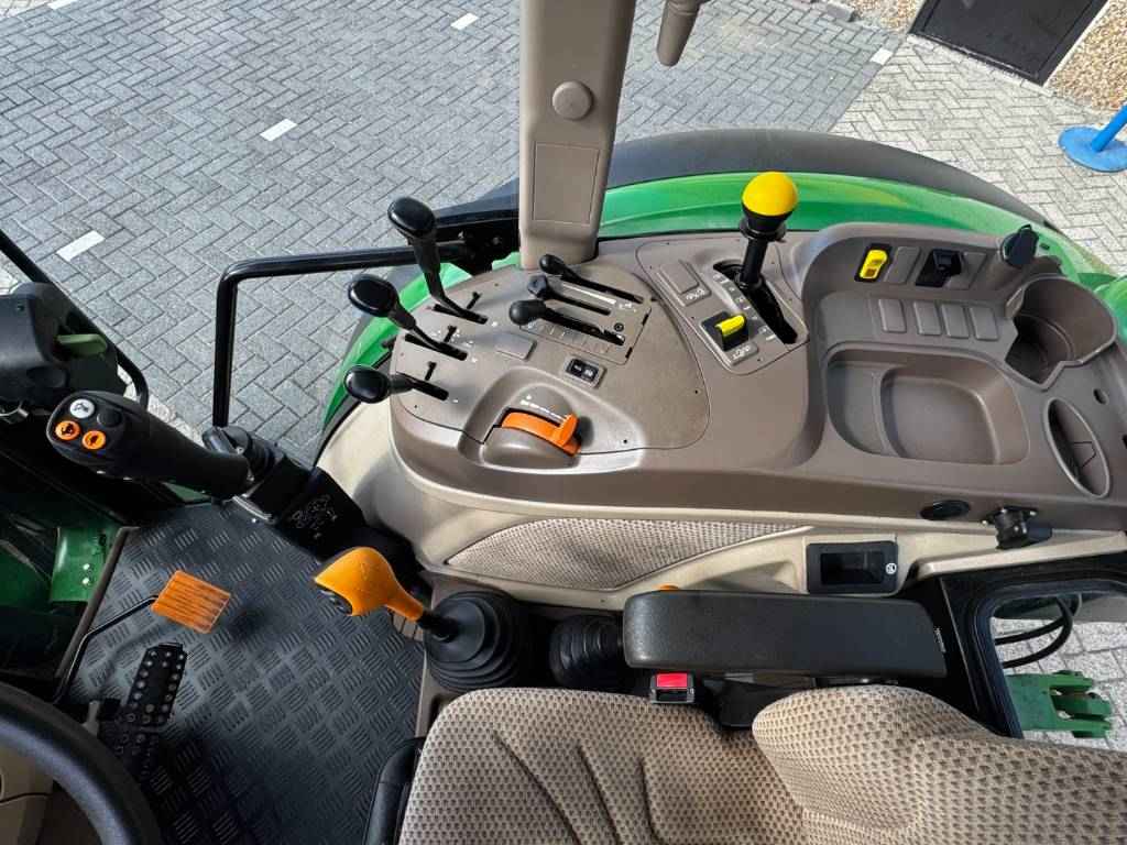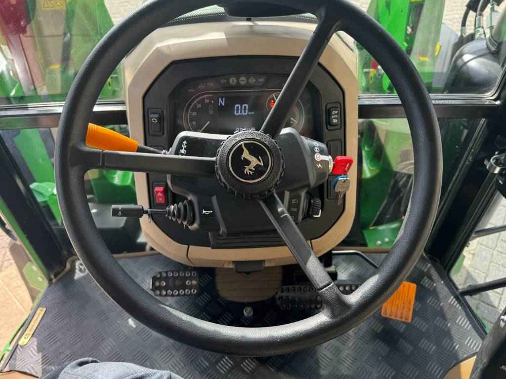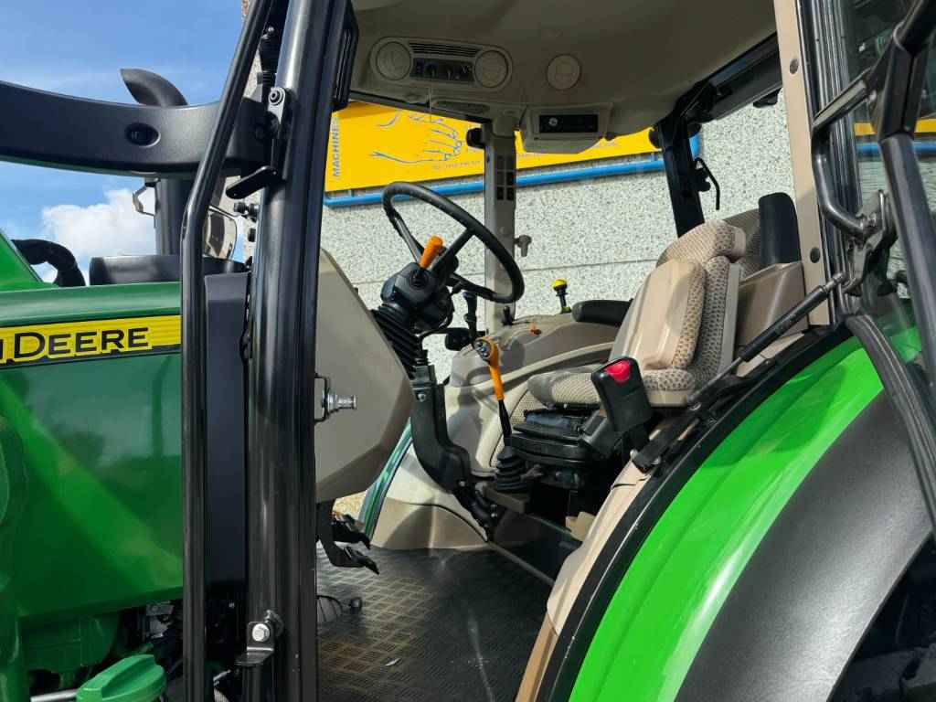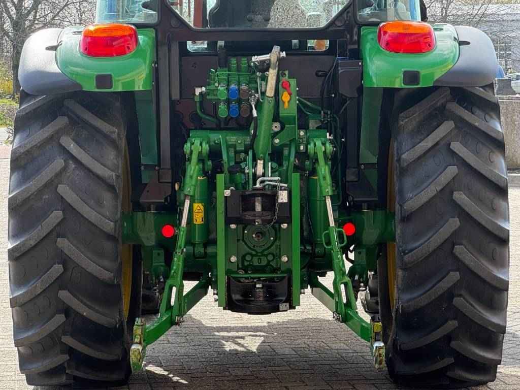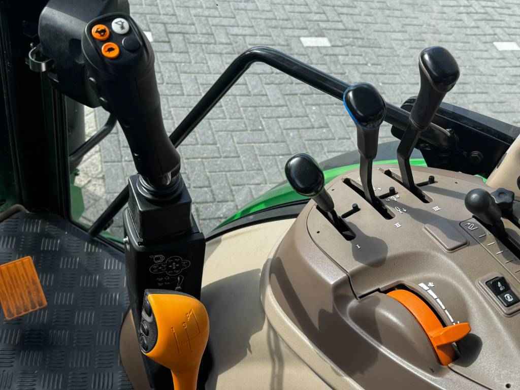 John Deere 5100M, 2022, 887 uren, 32F/16R PowrReverser™, 4 WD, 40 km/h, voorlader aanbouwdelen, 3 ventielen, 2 midmount ventielen, 70+24 ltr/min Hydraulische pomp, 540/540E/1000 PTO, joystick, 2 leiding hydraulische trailerrem, Bediening PTO in achterspatbord, etage trekhaak, airco, lucht geveerde stoel, passagiers zitje, radio, 2 zwaailampen, voorspatborden,