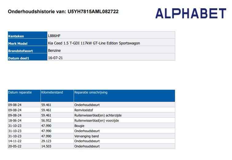 Zorgeloos rijden – zonder extra kosten ✔️ Volledige onderhoudsbeurt uitgevoerd ✔️ Technisch gecontroleerd en afgeleverd volgens BOVAG-normen Tijdens het rijklaar maken van deze auto zijn de volgende handelingen verricht: ✔️ Remblok + remschijf voor vervangen ✔️ 4x banden vervangen AllSeason ✔️ Onderhoudsbeurt ALL-IN SERVICE ✔️ BOVAG-garantie 12 maanden ✔️ BOVAG pechhulp 12 maanden ✔️ BOVAG omruilgarantie14 dagen ✔️ BOVAG 40-puntenchecklist ✔️ BOVAG Afleverbeurt – volgens fabrieksschema ✔️ Grondige reiniging van interieur en exterieur ➕ Uit te breiden BOVAG-netwerkgarantie*** Deze auto is voorzien van een distributieketting. Daar waar een distributieriem periodiek moet worden vervangen is dit bij een ketting in principe niet nodig. Het is een mooie auto, deze Kia Ceed Sportswagon uit 2021, hij heeft 72239 kilometer gelopen. Een krachtige motor geeft deze auto zijn sportieve prestaties. Een lederen interieur staat al decennia voor stijl en klasse. Ook bij deze Kia Ceed Sportswagon. Met het grote glazen panoramadak geniet u van maximale lichtinval. In deze auto profiteert u onder andere ook van: 17 inch lichtmetalen velgen, LED-dagrijverlichting, in hoogte verstelbare passagiersstoel, donker getint glas achter, in delen neerklapbare achterbank en LED-achterlichten. Wat een gemak, die achteruitrijcamera. Alles in beeld zonder capriolen. Deze Kia Ceed Sportswagon is 'connected'. Belangrijke functies worden permanent gemeten en zijn uit te lezen via een speciale app, ook op afstand. In deze auto beschikt u natuurlijk over een navigatiesysteem. Het audiosysteem met DAB-radio biedt glasheldere geluidskwaliteit. U bedient dit veilig, via het stuurwiel of met spraakbediening. Met de automatische airconditioning selecteert u de gewenste temperatuur. Het systeem doet de rest. Natuurlijk is een complete auto als deze ook voorzien van sensoren die de omgeving in de gaten houden. Deze Kia heeft niet alleen een automatisch inschakelbare verlichting aan boord, maar ook een regensensor. Deze auto is voorzien van cruise control, sportstuurwiel, automatisch dimmende binnenspiegel, isofix-aansluiting, usb-aansluiting en centrale deurvergrendeling met afstandsbediening. U geniet nog meer van het rijden met uw Kia omdat u wordt beschermd door intelligente veiligheidssystemen. Een camera houdt de juiste koers binnen de rijstrook in de gaten en het Lane-keeping systeem corrigeert bij afwijkingen. De forward collision warning reduceert het gevaar van een botsing met een voorligger significant. Ook is deze auto uitgerust met een systeem dat u waarschuwt wanneer u achter het stuur in slaap dreigt te vallen. Ook helpen het hill hold functie, autonoom remsysteem en bandenspanningcontrolesysteem, uw rit tot een veilige rit te maken. Er is ook een tellerrapport van Nationale Autopas, dat geeft u zekerheid over de kilometerstand van deze auto. Belangstelling? Bel ons en we leggen de sleutels klaar voor een proefrondje. DISCLAIMER Ondanks de constante zorg en aandacht die wij besteden aan de samenstelling van deze advertentie, is het mogelijk dat de informatie die wordt gepubliceerd onvolledig c.q. onjuist is. Fouten (in de gegevensverwerking) kunnen echter niet altijd voorkomen worden.