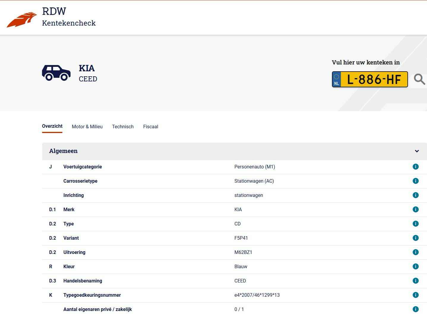 • Kenteken: