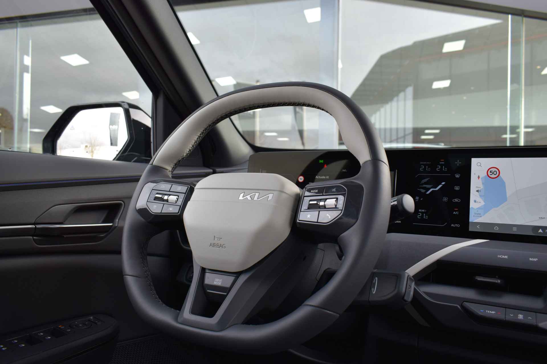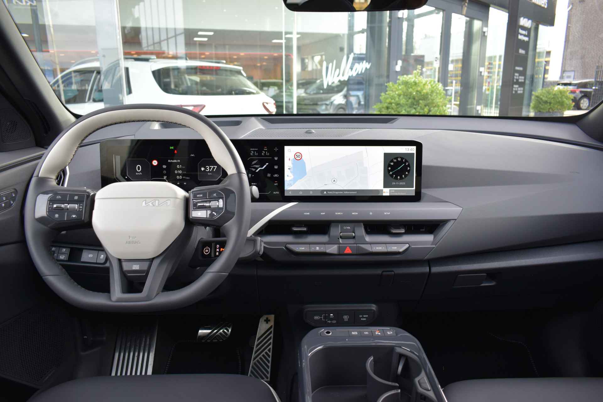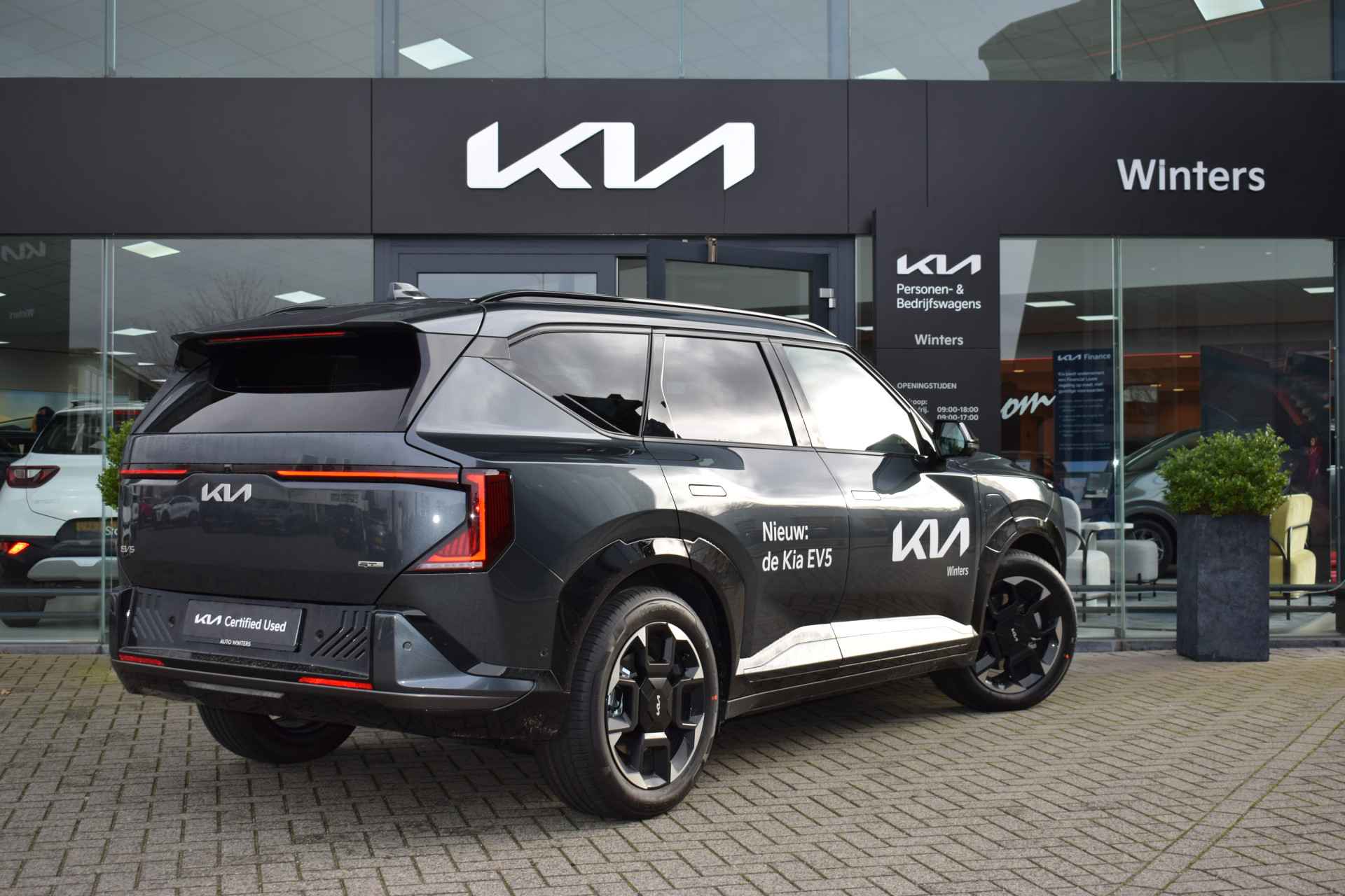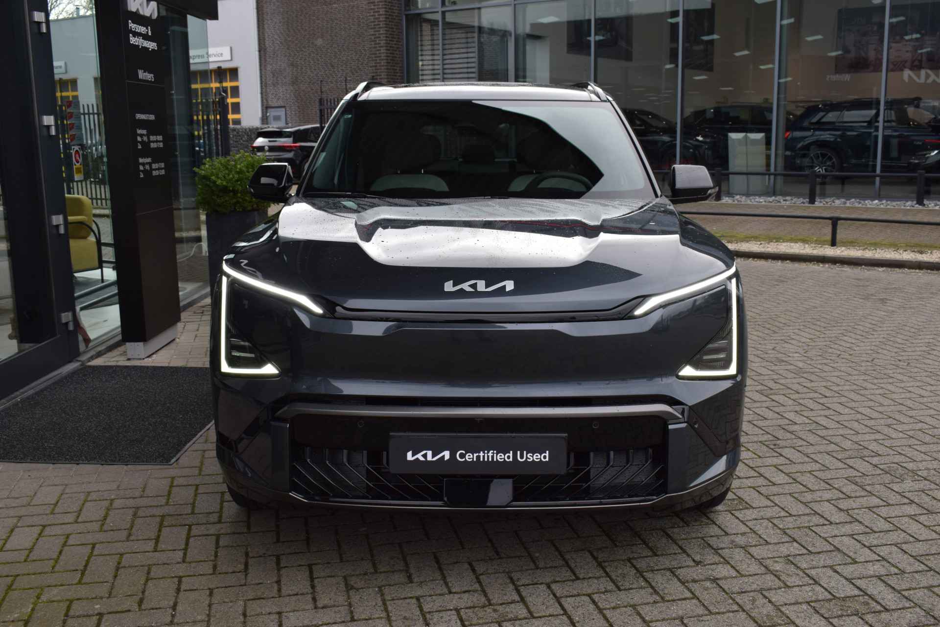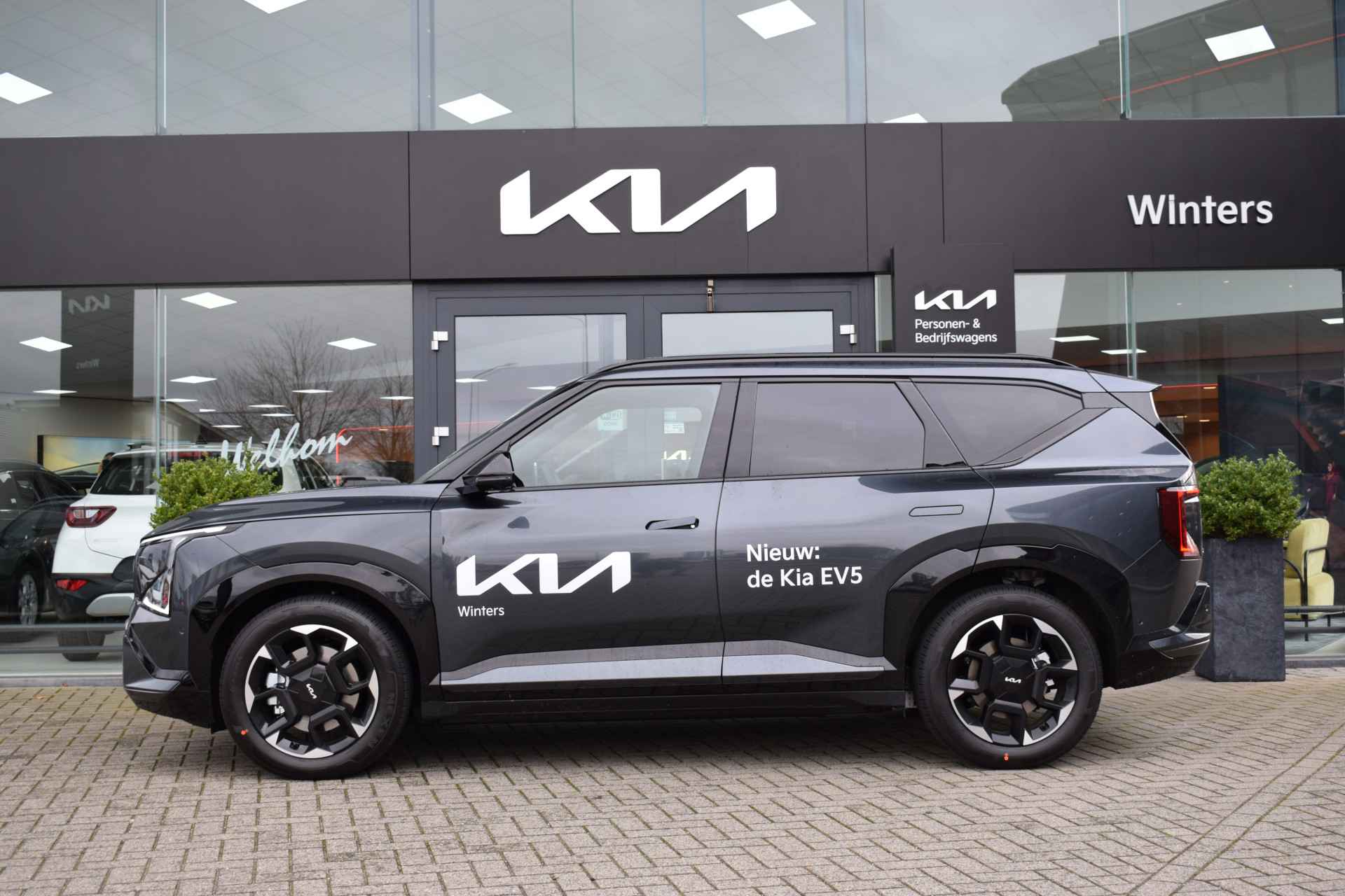 Sportieve, ruime en complete EV5 81.1kWh GT-PlusLine o.a. voorzien van ECC-Airco, Cruise control Adaptief, Dodehoekassistentie, Kruisend verkeer Achter, 360-Camera, Achteruitrij Camera, Bluetooth, Head Up display, Glazen Schuif/kantel-dak, Stoelverwarming, Stoelventilatie, Stuurverwarming, Privacy glas, Keyless Entry met start/stop-button, GT-Line bumpers, en Tot 10Jr. Kia Garantie t/m 3-12-2035. Verkoopprijs € 50.326,- incl. Basis Service-pakket. Rijklaarprijs € 50.921,- incl. FullService-afleverpakket van € 595,-.