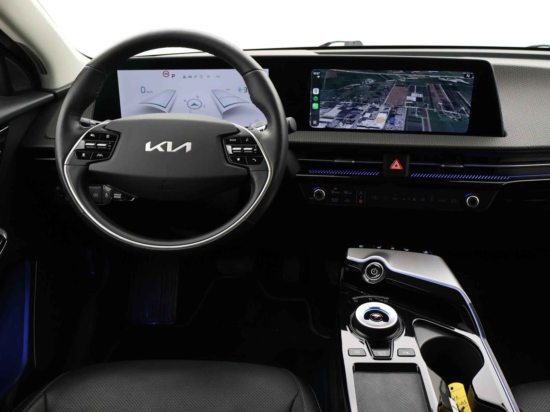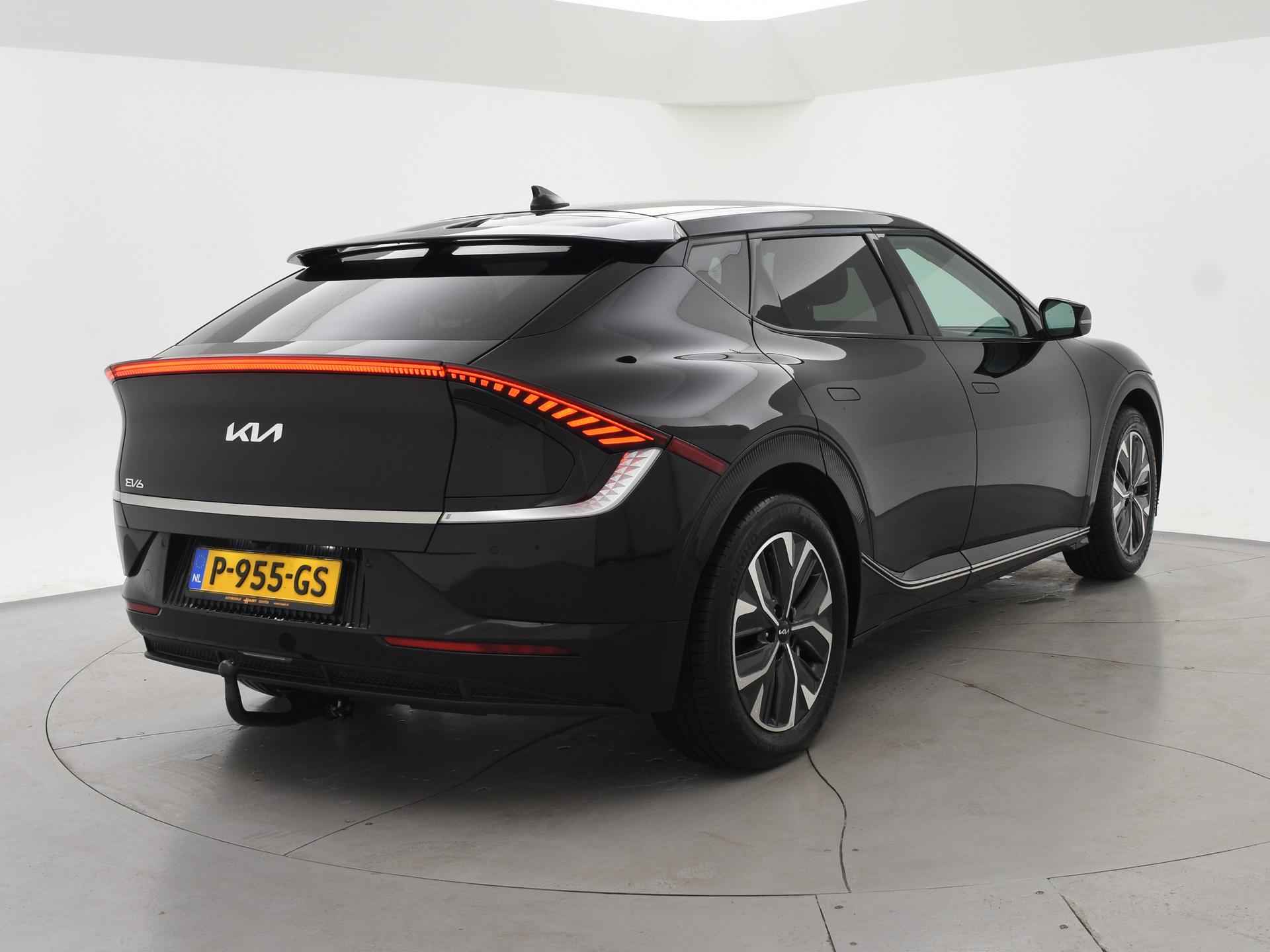 EV6 GT met de 228 PK 77.4 kWh accu, Origineel Nederlandse en 2e eigenaar auto, Aurora Black Pearl exterieurkleur, Afneembare trekhaak met 1600 kg trekgewicht op kenteken, Volledig leder interieur, Stoelverwarming voor + achterin, Stoelventilatie, Stuurwielverwarming, Meridian Premium sound, Sfeerverlichting interieur met verschillende kleuren, Elektrisch achterklep, Zwarte hemelbekleding, Navigatie breedbeeld, Apple Carplay / Android Auto appstreaming Google Maps, Flitsmeister, Whatsapp etc, Lichtmetalen velgen, Full LED koplampen, LED achterlichten, Privacy glass, Adaptive cruise control, DAB+ digitale radio, Achteruitrijcamera. Elektrische stoelverstelling met geheugen.