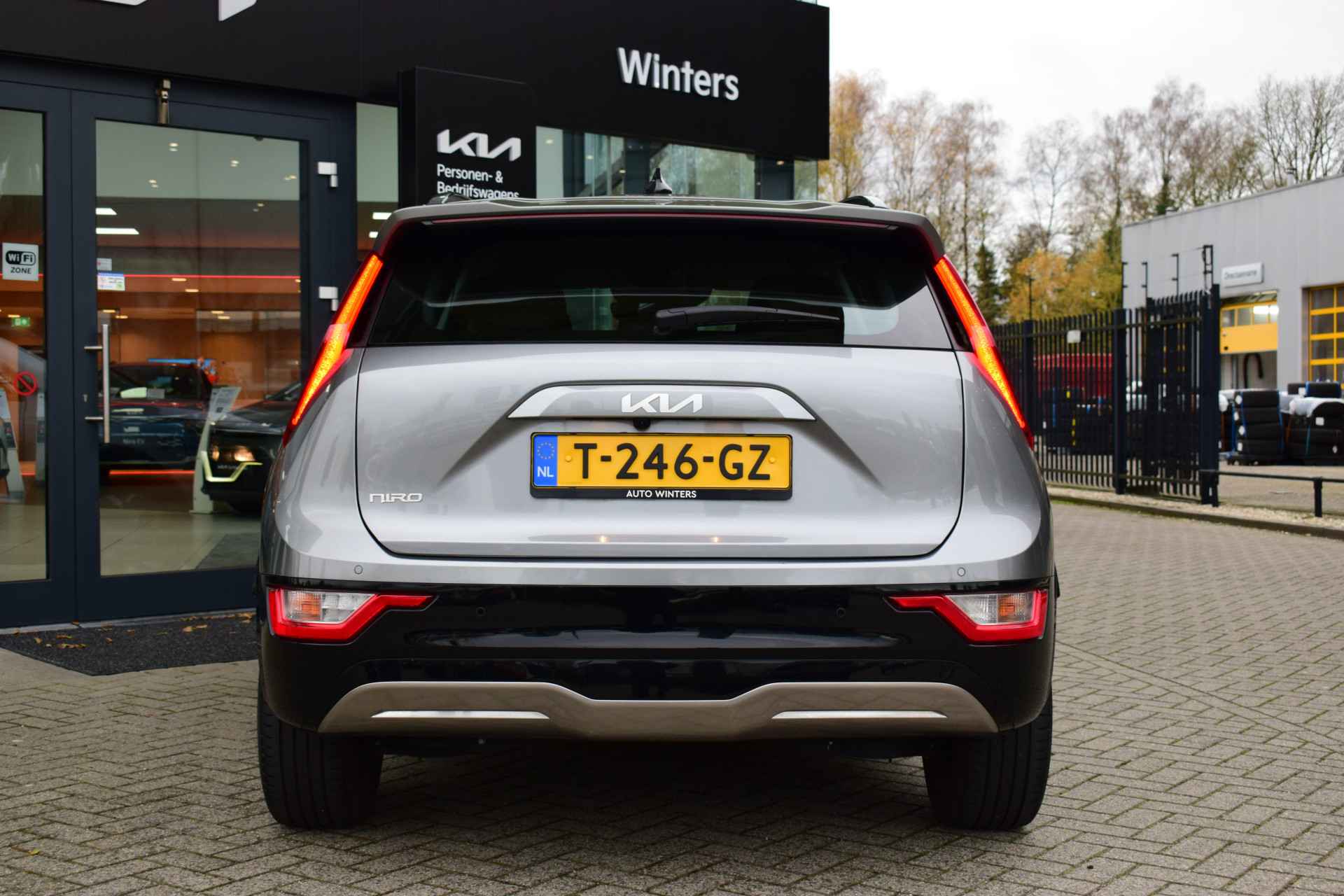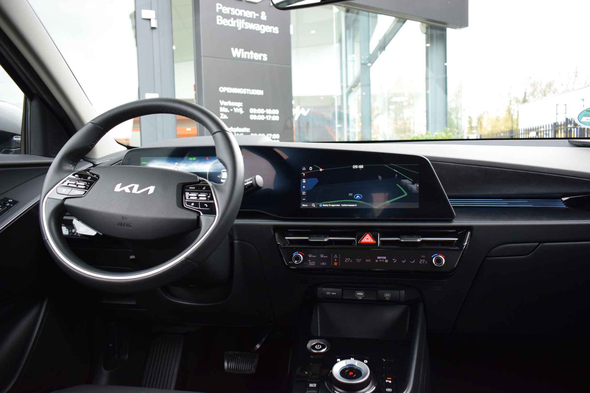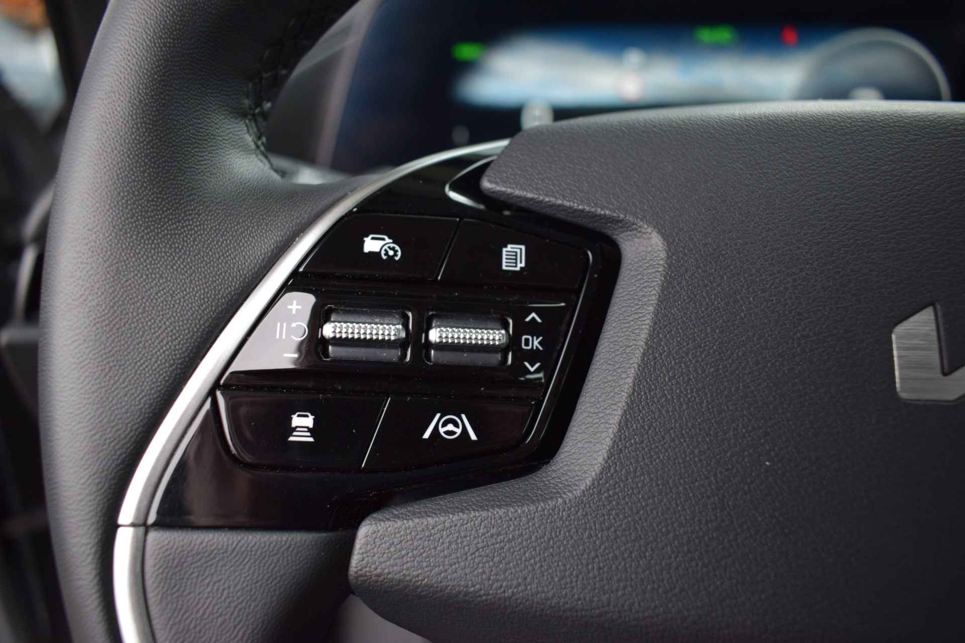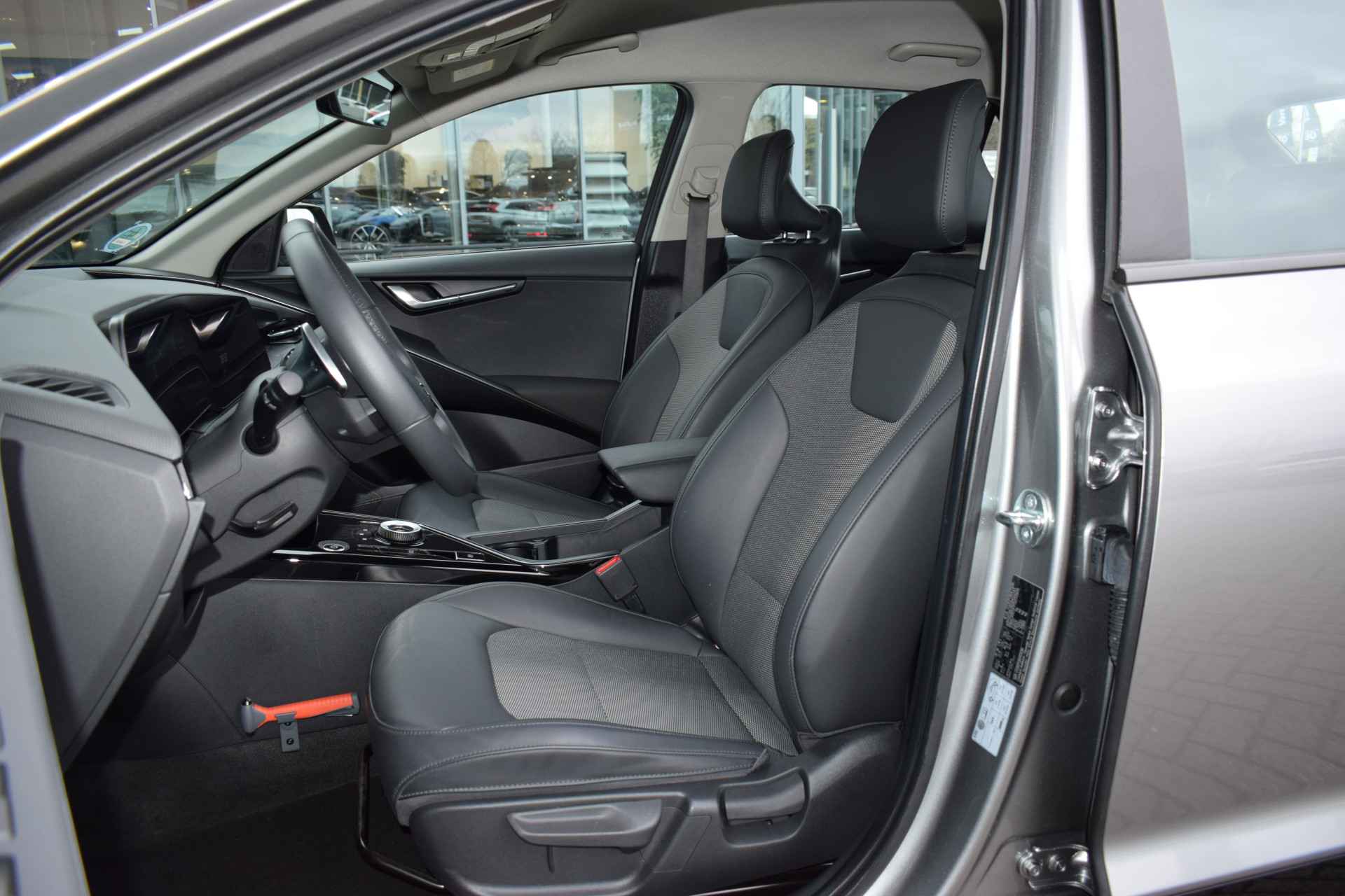 Jonge, ruime en complete Kia Niro EV DynamicLine 64,8kWh o.a. voorzien van ECC-Airco, Adaptieve Cruise control, 10.25" Navigatie, Achteruitrijcamera, Bluetooth, DAB+, Leder/stof, Armsteun Voor + Achter, Lane Keep Assist, Smart Key met start/stop-button, LED verlichting, 17" LMV, Parkeersensoren, en Tot 10Jr. Kia-Garantie t/m 23-06-2033! Verkoopprijs € 29920,- incl. Basis Service-pakket. Rijklaarprijs € 30515,- incl. FullService-afleverpakket van € 595,-.
