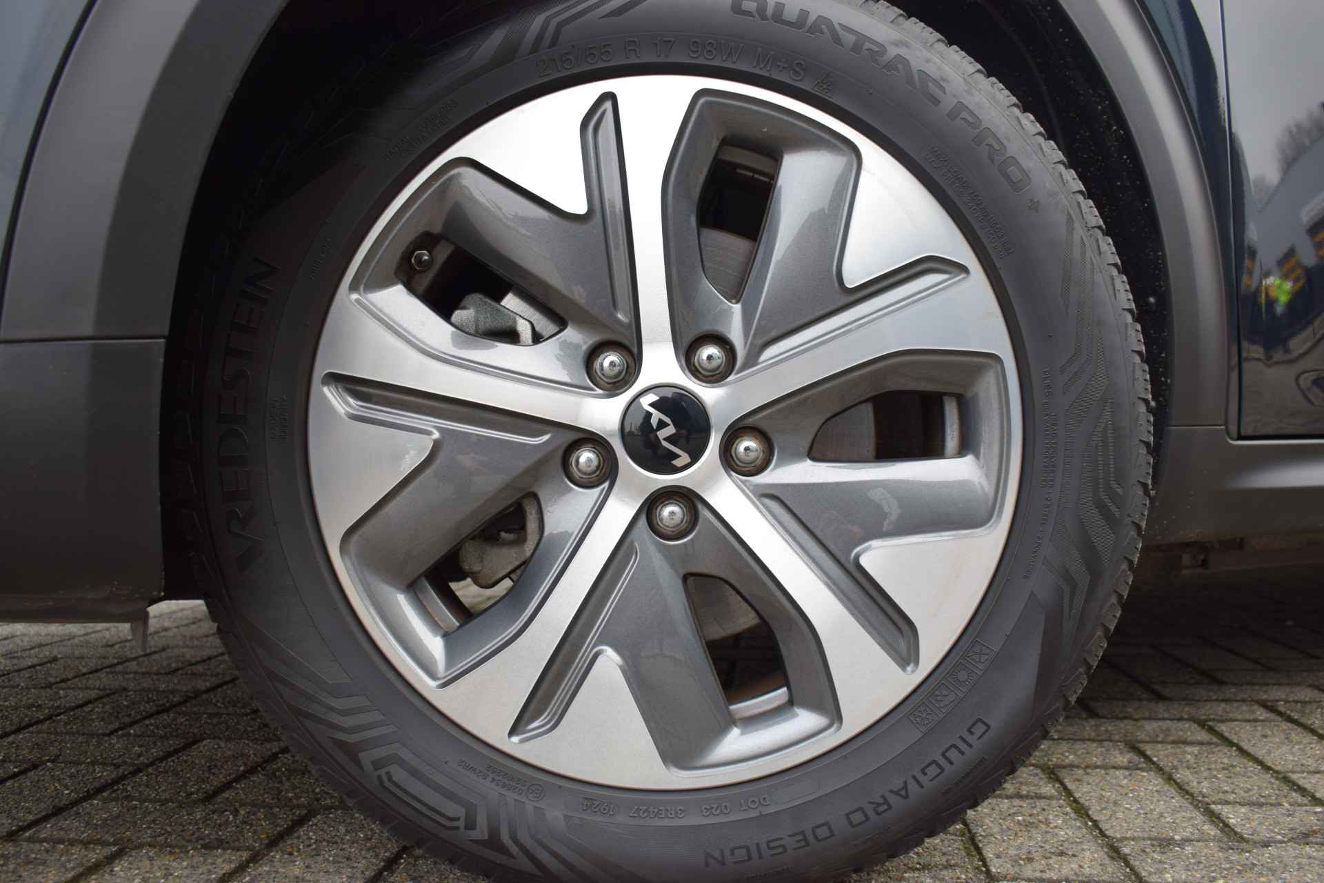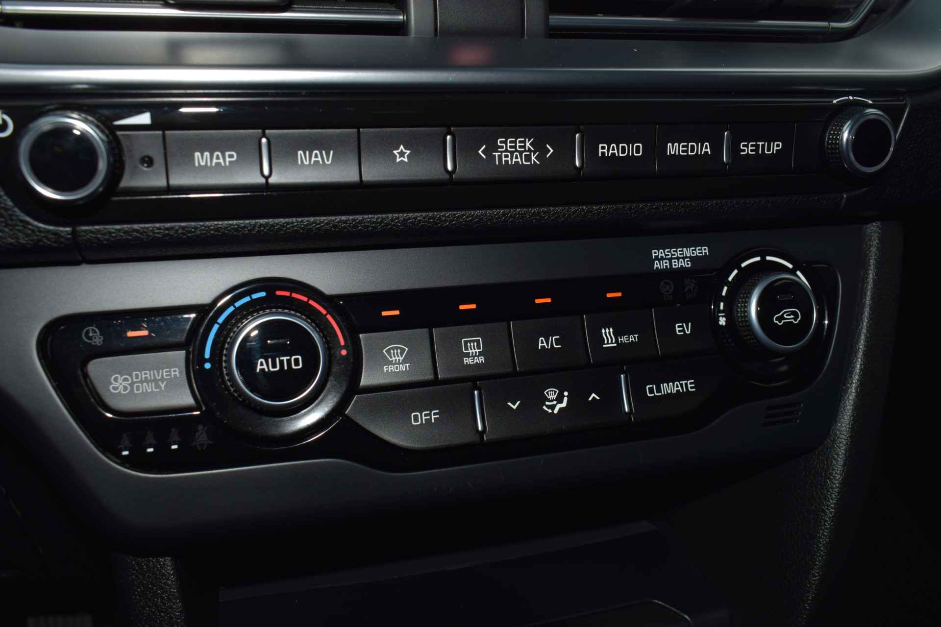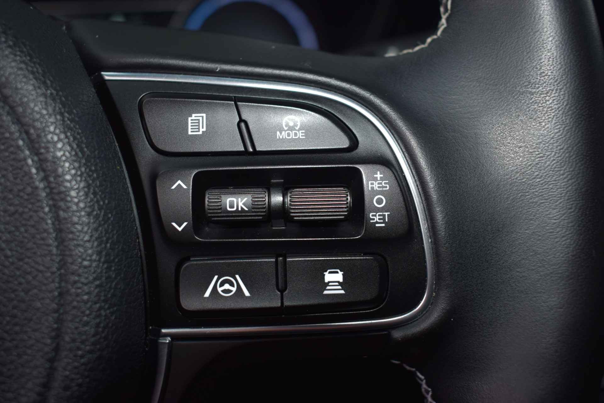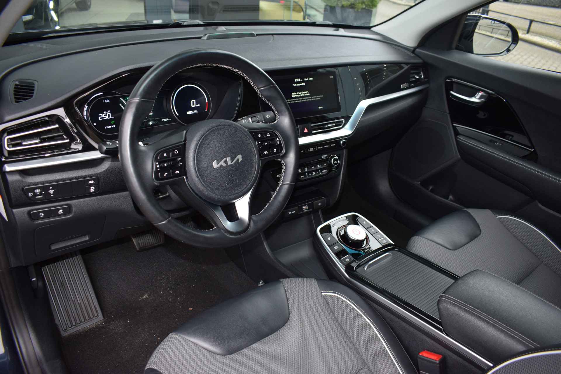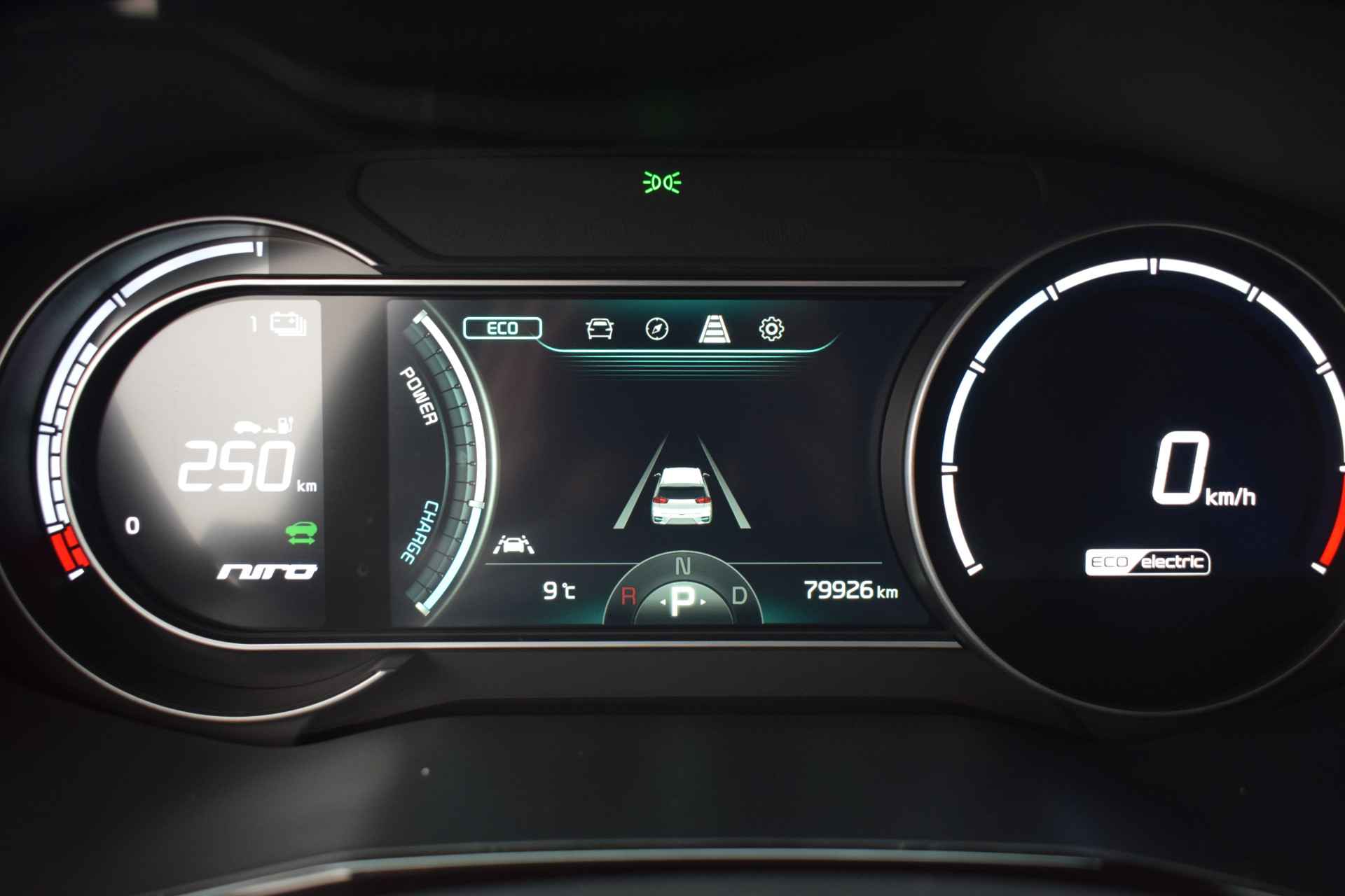 De Kia e-Niro Edition (64 kWh) is een volledig elektrische SUV die comfortabel en rijk uitgerust is voor zijn klasse. De auto heeft 17-inch lichtmetalen velgen, elektrisch inklapbare, verstelbare en verwarmde buitenspiegels, automatische dimlichten, extra getint glas en keyless entry voor gemakkelijk in- en uitstappen. Binnenin biedt hij electronic climate control, een verwarmd stuurwiel en verwarmde voorstoelen, een automatisch dimmende binnenspiegel en een in hoogte verstelbare bestuurdersstoel, samen met elektrisch bedienbare ramen en multifunctioneel stuur. Voor entertainment en navigatie beschikt de e-Niro over een full-map navigatiesysteem, Apple CarPlay en Android Auto, Bluetooth-telefoonvoorbereiding, DAB-radio en spraakbediening. Veiligheid en rijcomfort worden verhoogd door adaptieve cruise control met Stop & Go, parkeersensoren achter, een achteruitrijcamera en diverse assistentiesystemen zoals Autonomous Emergency Braking, rijstrooksensor met correctie, vermoeidheidsherkenning, ABS, ESP en grootlichtassistent. Al met al biedt deze Edition-uitvoering een complete mix van comfort, connectiviteit en moderne rijhulpsystemen.