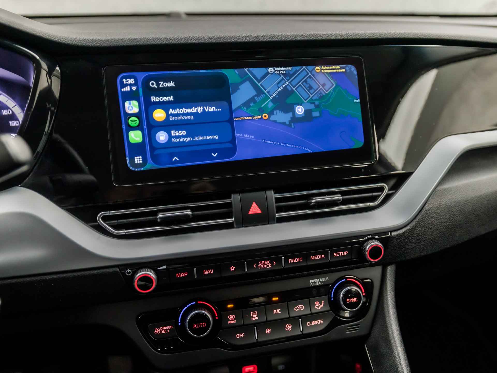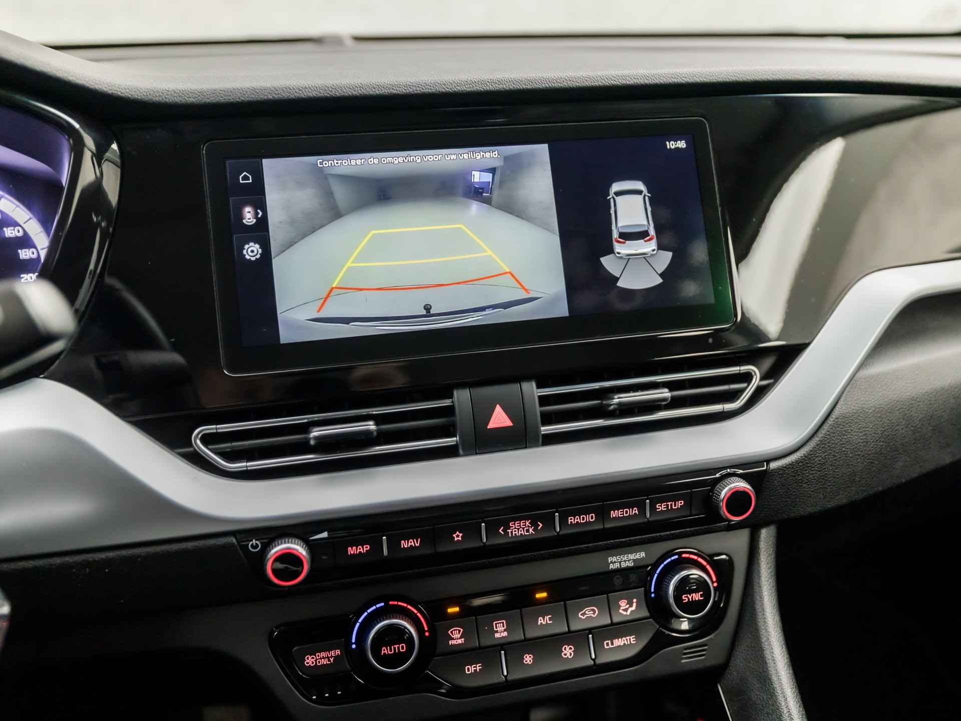 Hoeveel ruimte heeft u nog bij het inparkeren? De achteruitrijcamera brengt helder in beeld wat zich achter de auto bevindt en geeft een geluidssignaal. Adaptive cruise control is een comfortabele en veilige optie. Het systeem reguleert de snelheid en houdt automatisch afstand tot uw voorligger. Als u regelmatig met een aanhanger of een fietsendrager op pad bent, is de afneembare trekhaak een praktische extra. U kunt het audio-installatiesysteem met DAB-ontvangst en het navigatiesysteem bedienen met de knoppen op het stuur. Met automatische airconditioning hoeft u alleen de gewenste temperatuur in te stellen. Het systeem doet de rest. Deze Kia is voorzien van sportstuur met schakelpaddels, regensensor, automatisch dimmende binnenspiegel, isofix-aansluiting, centrale deurvergrendeling met afstandsbediening en bagage afdekhoes.