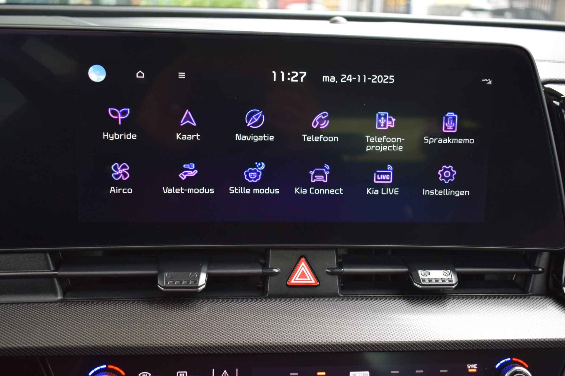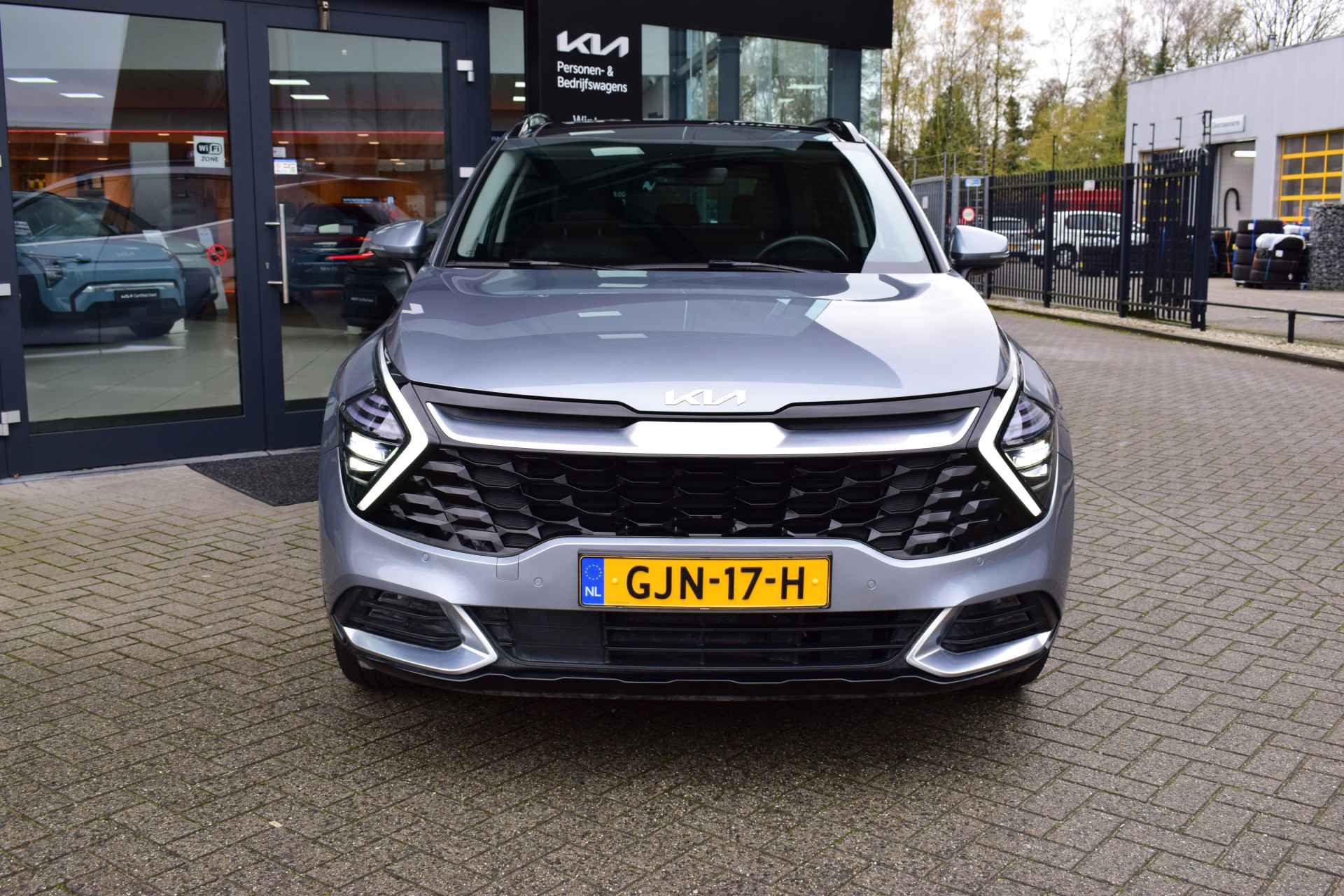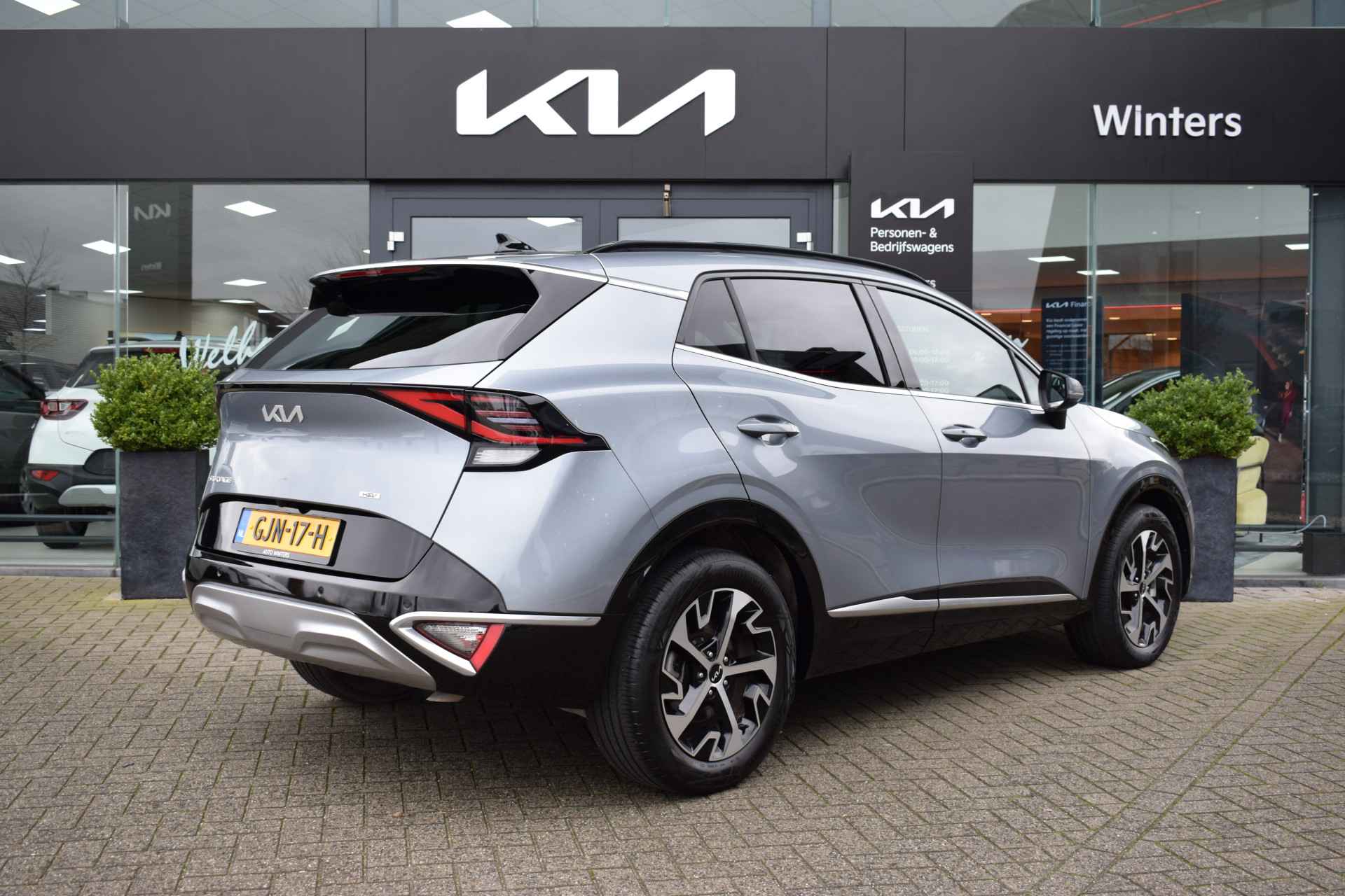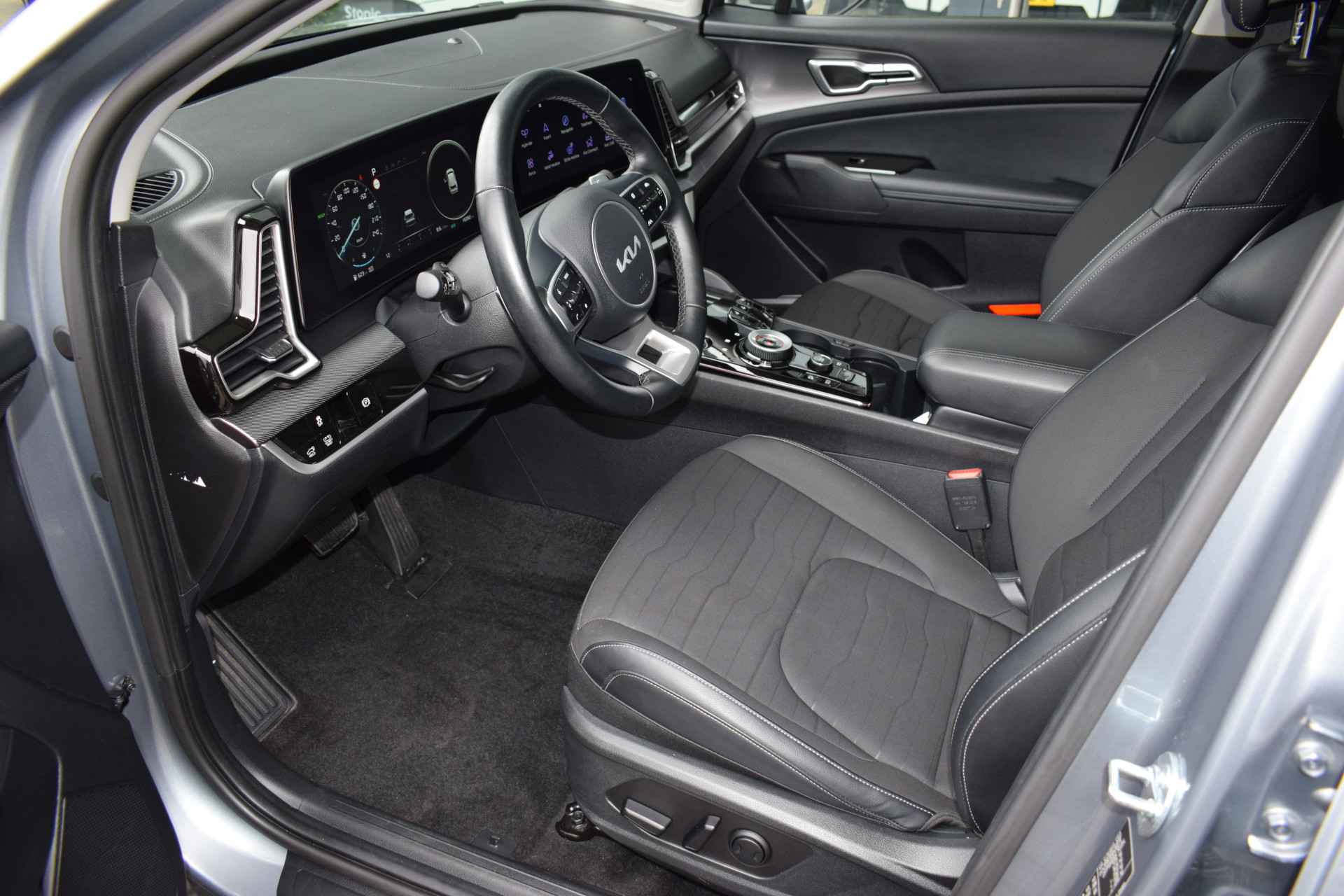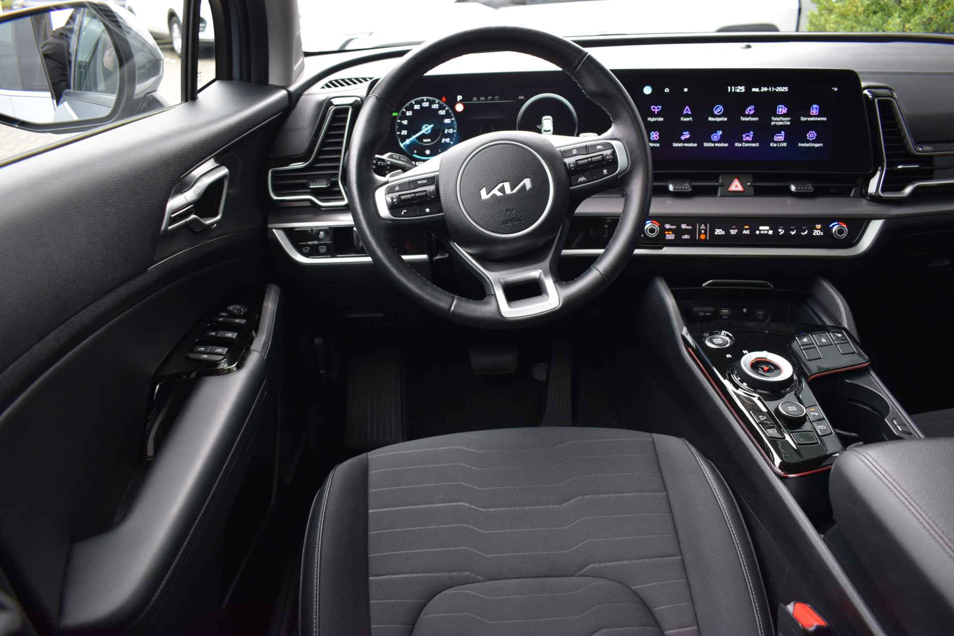 Ruime, comfortabele en complete Kia Sportage 1.6 T-GDi Hybrid DynamicPlusLine. O.a. voorzien van Hoge instap, Automaat, ECC-Airco, Cruise Control Adaptief, 12,3" Navigatie, Achteruitrijcamera, Bluetooth, Stof/Leder, Stoelverwarming, Stuurverwarming, Electrisch verstelbare voorstoelen, Electrisch Panorama Schuif/kantel-dak, Dodehoekherkenning, Kruisend verkeerassistentie achter, Privacy Glass, Keyless Entry met start/stop-button, Slimme Automatische achterklep, 18" LMV, Parkeersensoren voor + achter en Tot 10Jr. Kia-Garantie t/m 3-9-2034. Verkoopprijs € 40.895 ,- incl. Basis Service-pakket. Rijklaarprijs € 41.490,- incl. FullService-afleverpakket van € 595,-.