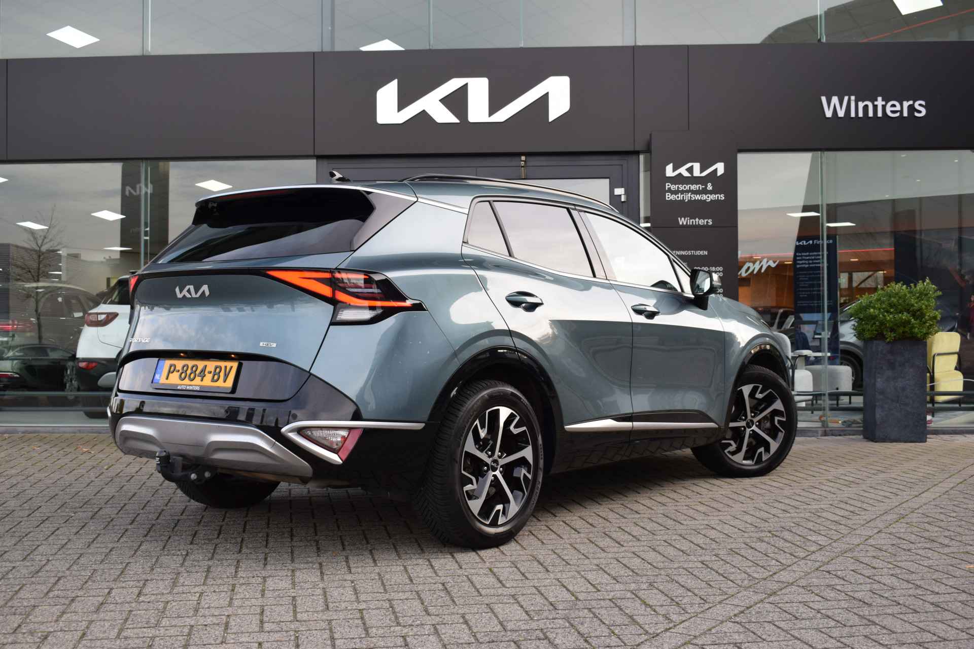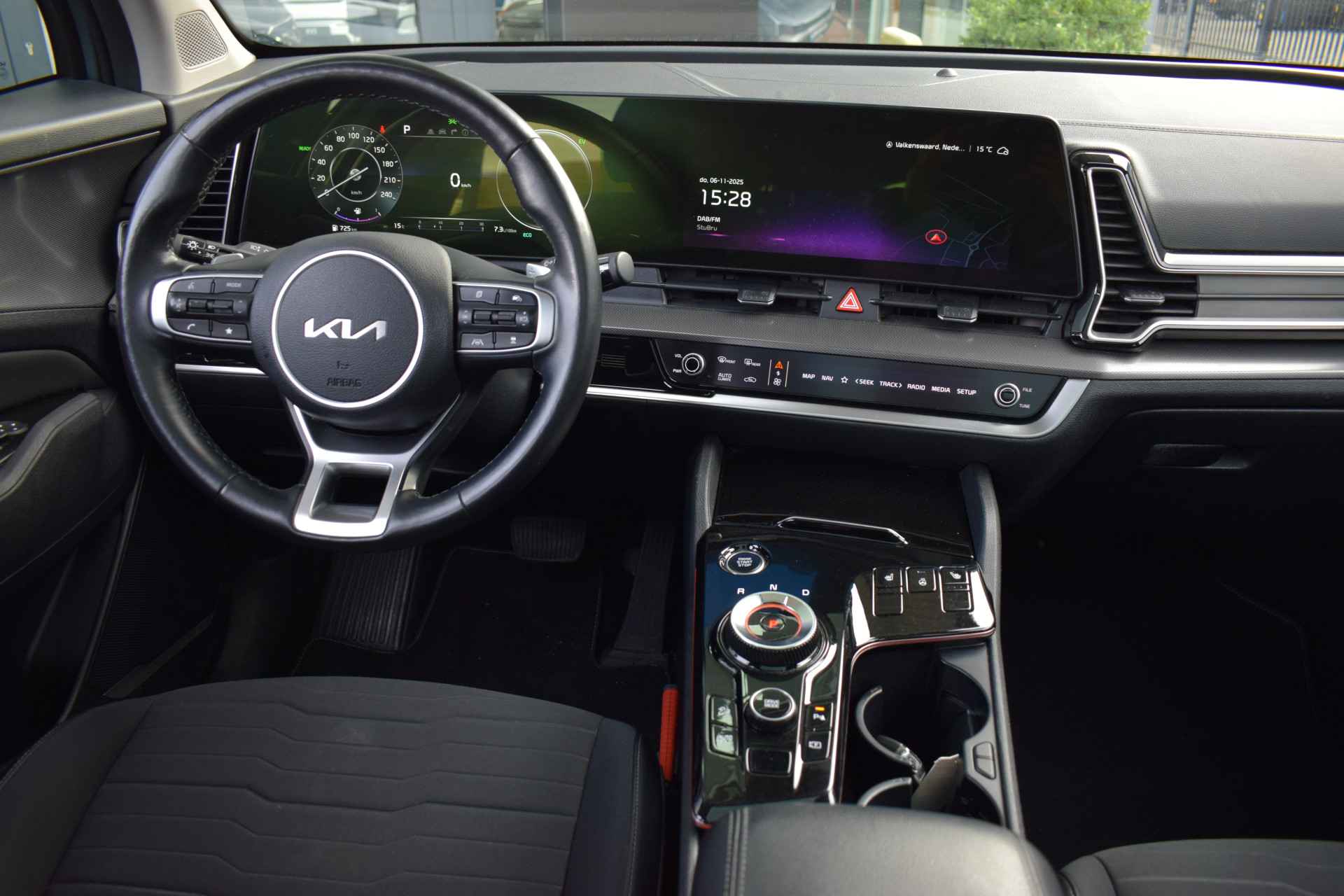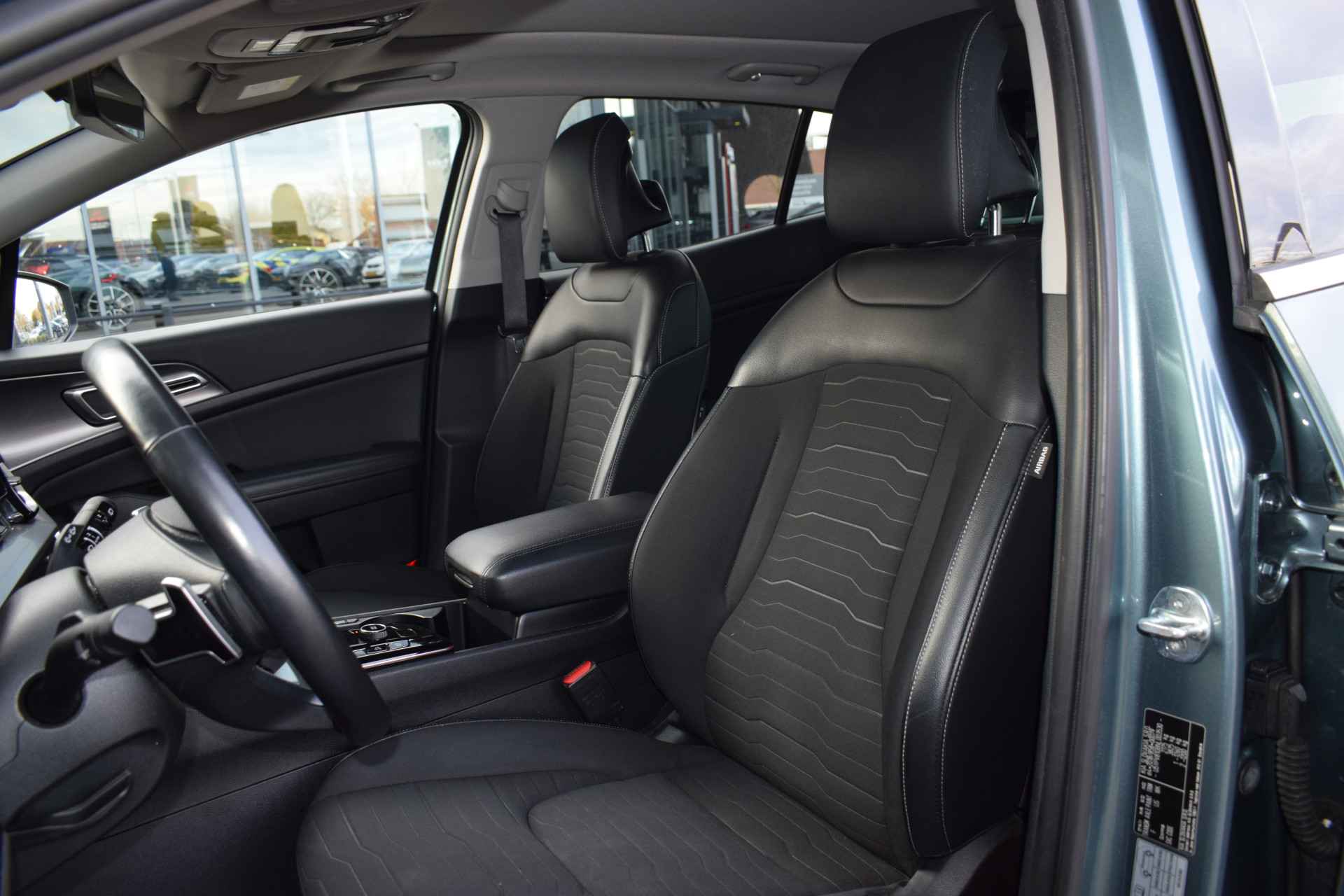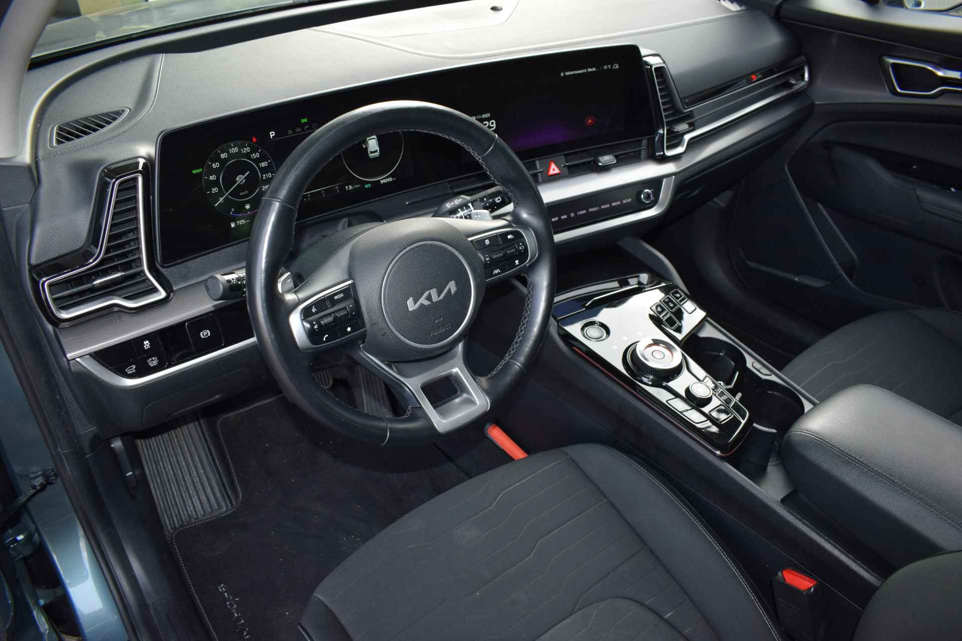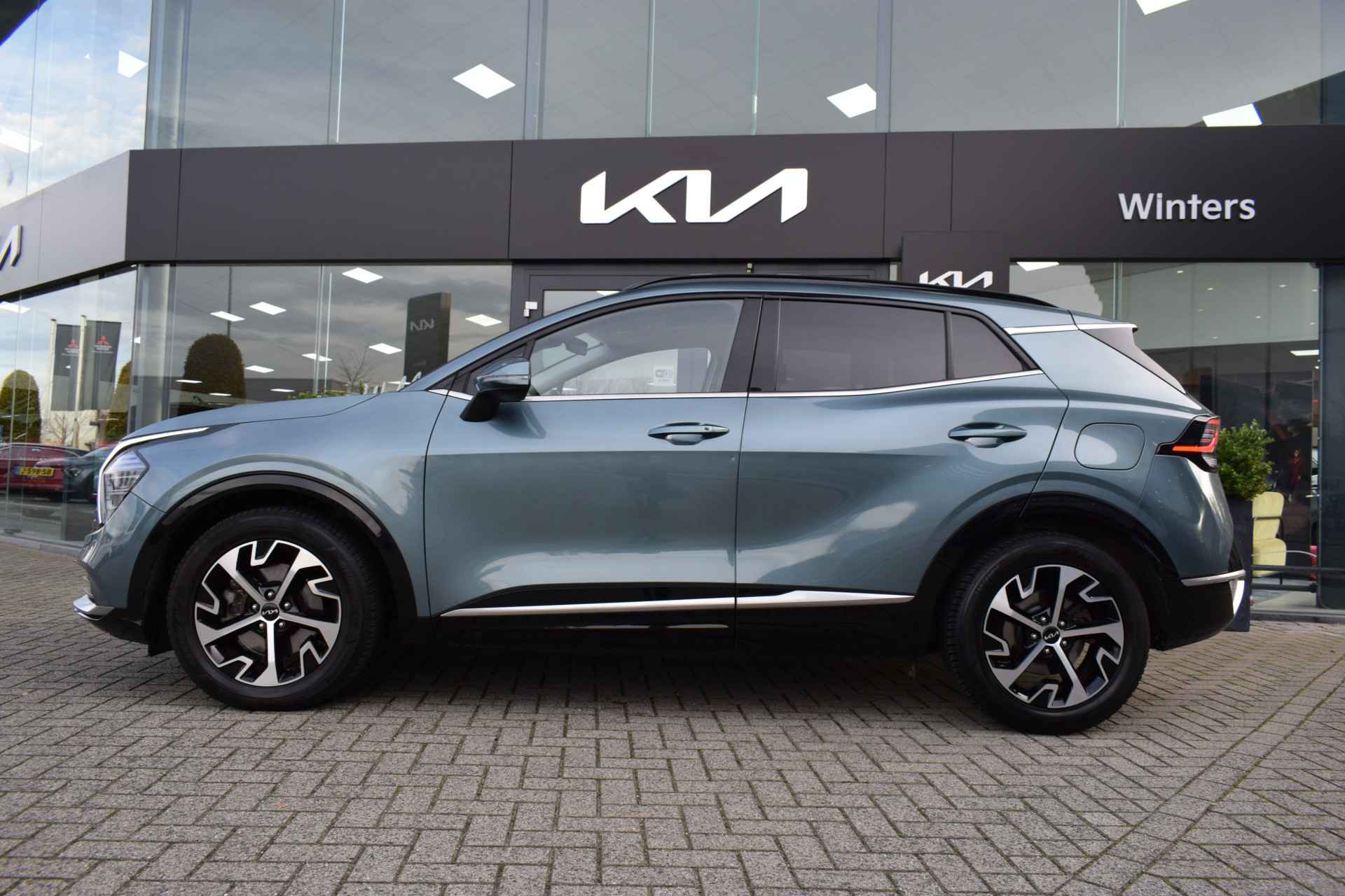 Ruime, comfortabele en complete Kia Sportage 1.6 T-GDi Hybrid DynamicPlusLine. O.a. voorzien van Hoge instap, Automaat, ECC-Airco, Cruise Control Adaptief, 12,3" Navigatie, Achteruitrijcamera, Bluetooth, Stof/Leder, Stoelverwarming, Stuurverwarming, Electrisch verstelbare voorstoelen, Electrisch Panorama Schuif/kantel-dak, Dodehoekherkenning, Kruisend verkeerassistentie achter, Privacy Glass, Keyless Entry met start/stop-button, Slimme Automatische achterklep, 18" LMV, Parkeersensoren voor + achter en Tot 10Jr. Kia-Garantie t/m 7-4-2032. Verkoopprijs € 32.845 ,- incl. Basis Service-pakket. Rijklaarprijs € 33.440,- incl. FullService-afleverpakket van € 595,-.