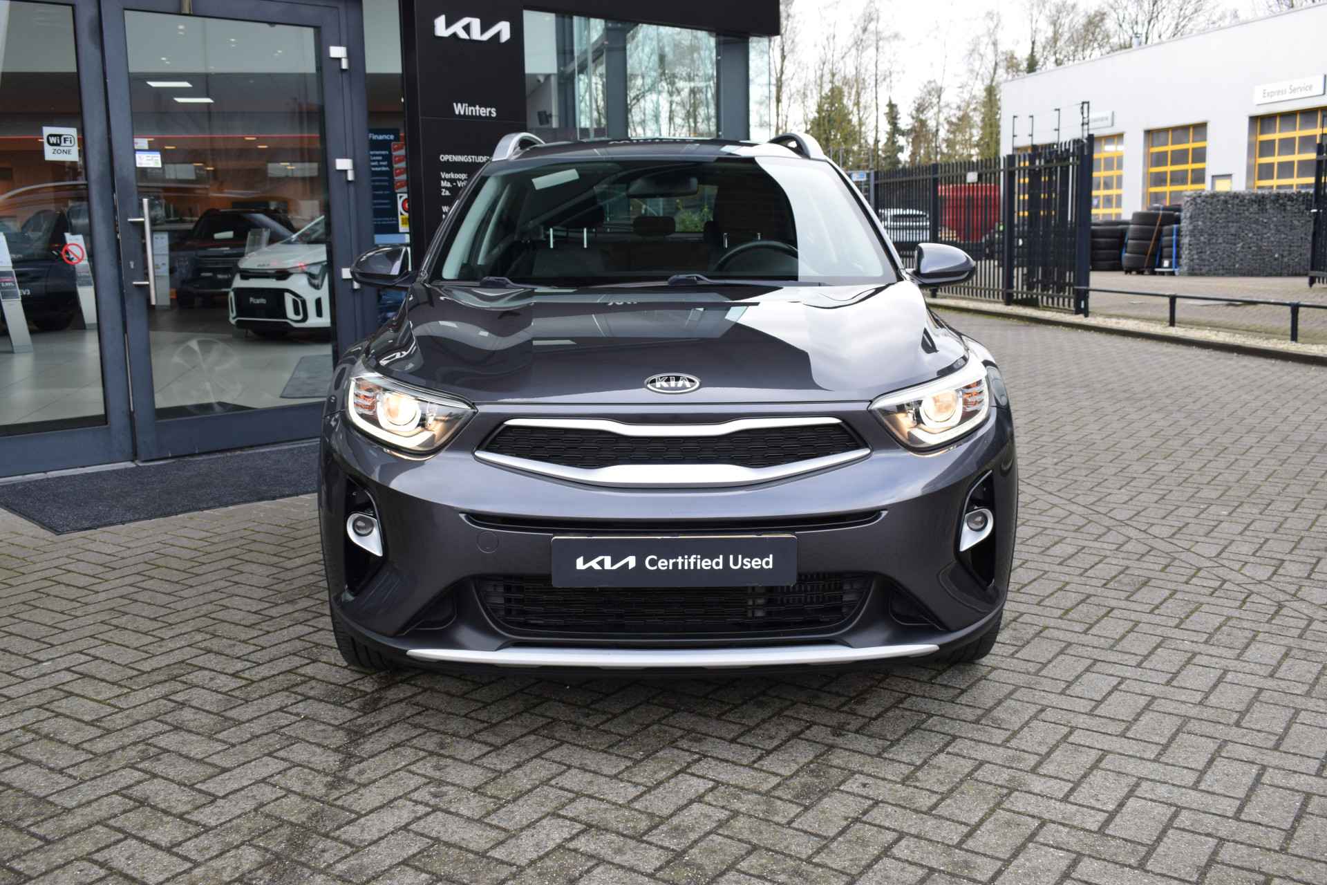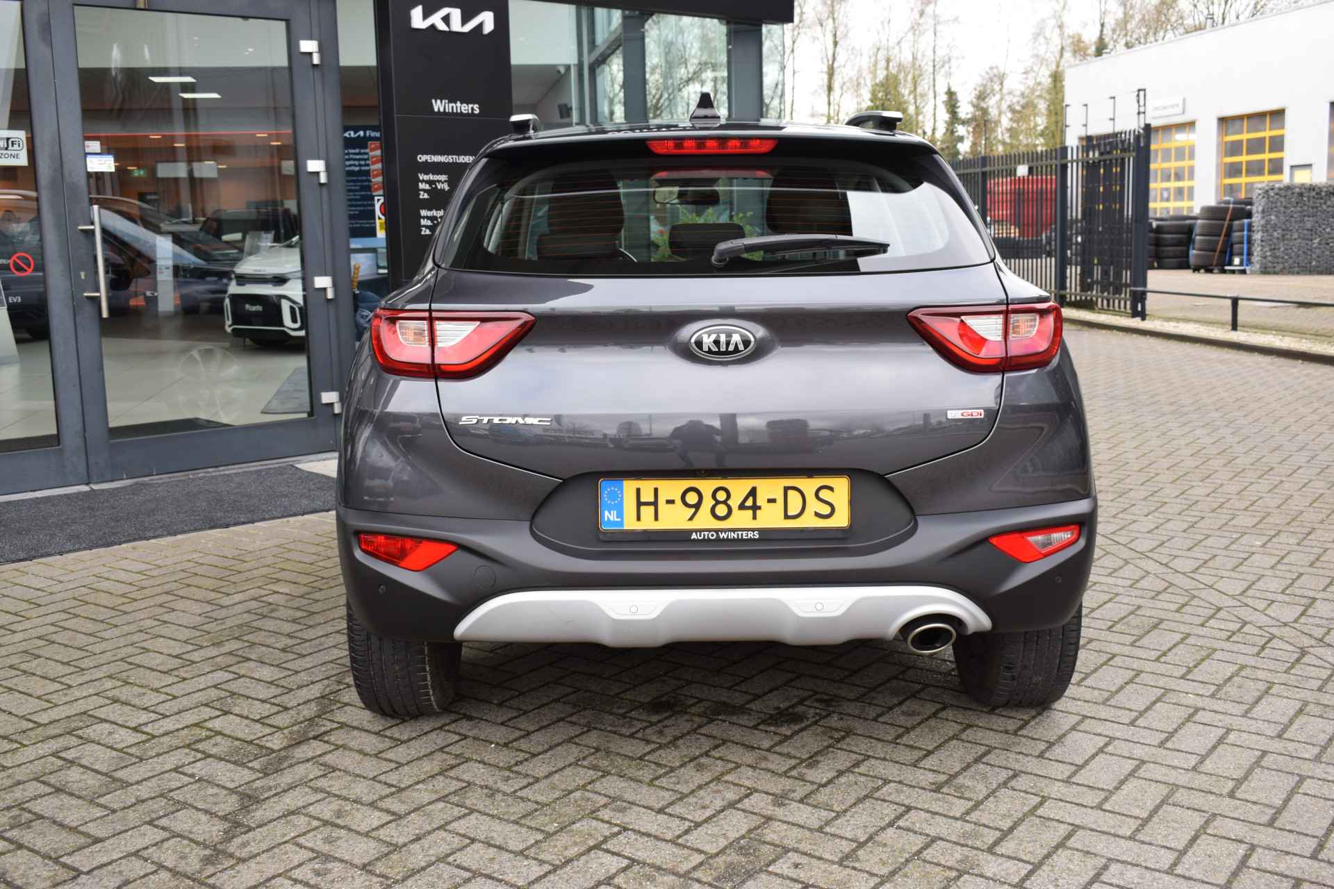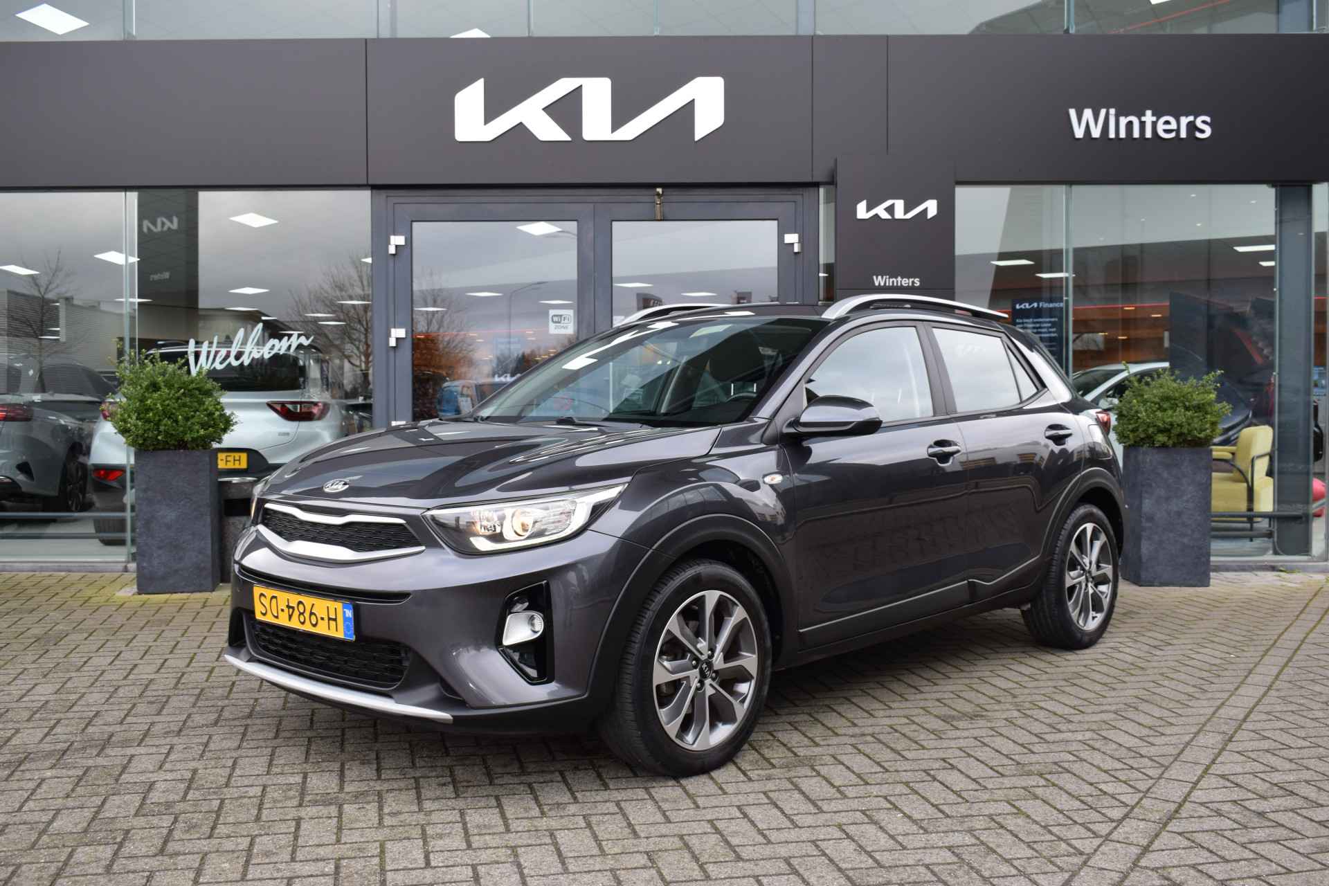Sportieve, ruime en complete Stonic 1.0 T-GDi/100pk DynamicLine o.a. met Hogere instap, Airco, Cruise control, Speed Limiter, Navigatie, Achteruitrijcamera, Bluetooth, Middenarmsteun, Electrische ramen voor + spiegels, Hoogte verstelbare stoel + stuur, Deels neerklapbare achterbank, Centrale vergrendeling met afstandbediening, 17" LMV, Parkeersensoren en Tot 10Jr. Kia-Garantie t/m 31-1-2030. Verkoopprijs € 16.385,- incl. Basis Service-pakket. Rijklaarprijs € 16.980,- incl. FullService-afleverpakket van € 595,-.