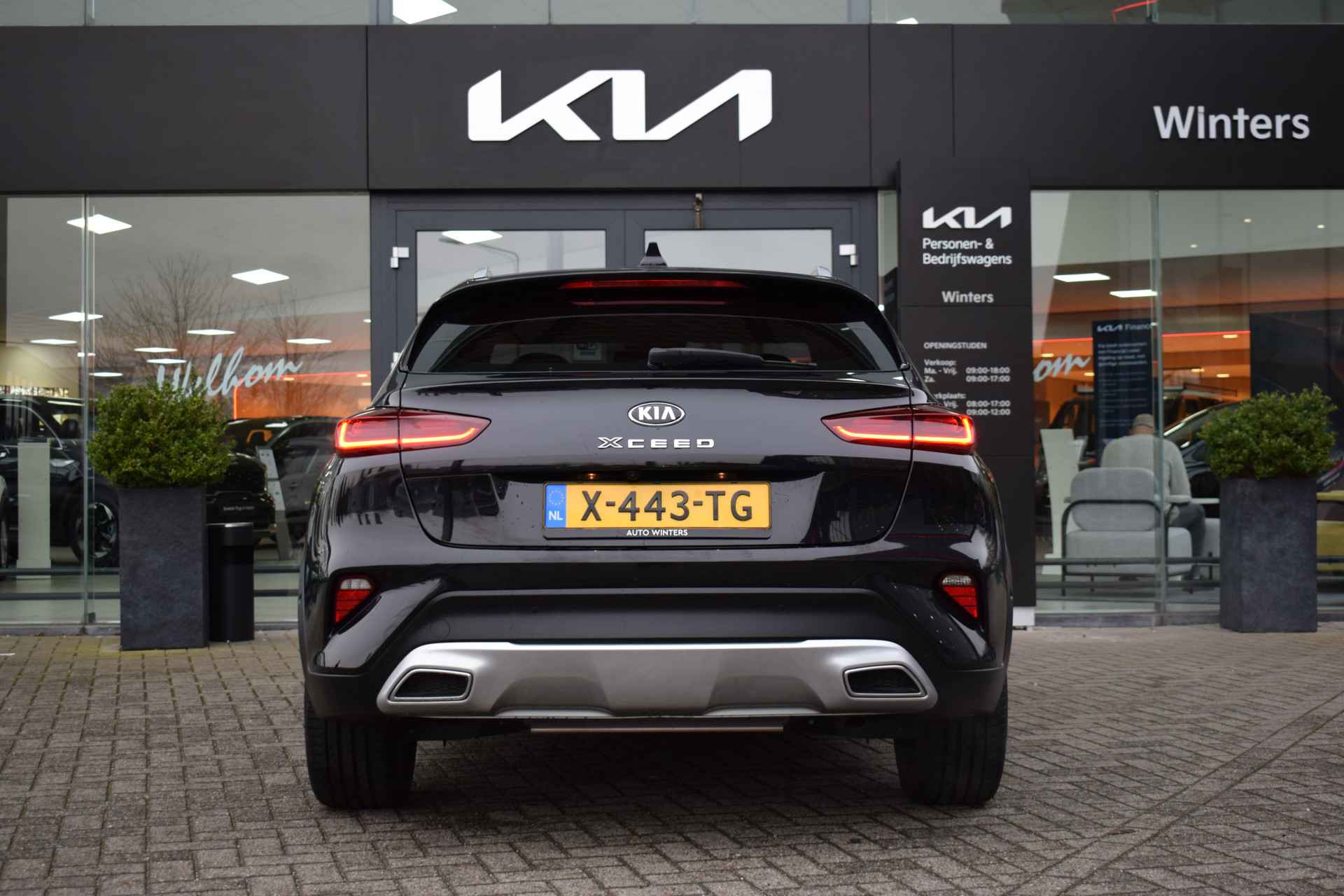Sportieve, ruime en complete XCeed 1.6 GDi PHEV DynamicLine automaat o.a. met Airco, Cruise control, Speed Limiter, Navigatie, Apple Carplay + Android Auto, Achteruitrijcamera, Bluetooth, 6-bak, Elektrische ramen voor + spiegels, Hoogte verstelbare stoel + stuur, Mistlampen, 18" LMV, Parkeersensoren en Tot 10Jr. Kia Garantie t/m 18-12-2030. Verkoopprijs €19.945,- incl. Basis Service-pakket. Rijklaarprijs €20.540,- incl. FullService-afleverpakket van € 595,-.