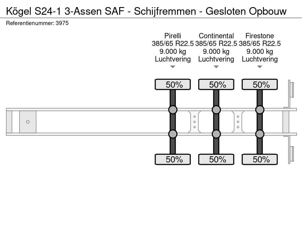 Opbouw Bouwjaar: 2019 WK0S0002400242302 3-Assen SAF Schijfremmen Gesloten opbouw Afm. binnenmaat: 1360 x 249 x 273 Roest vrij Nederlandse registratie