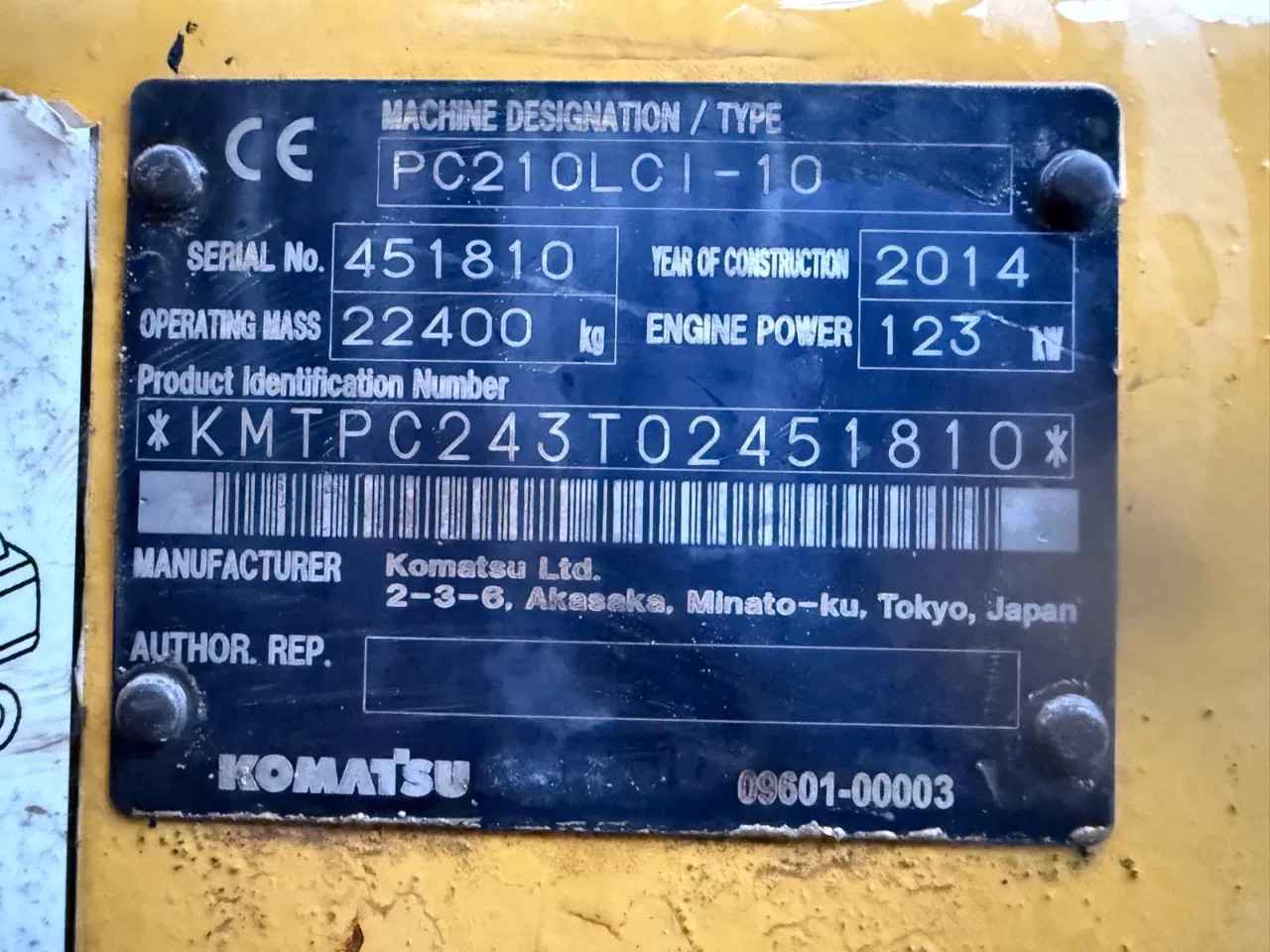 Komatsu PC210LCI-10 2014 15846 hours 22400 kg 123 kw Extra hydraulic function GPS Funtkion