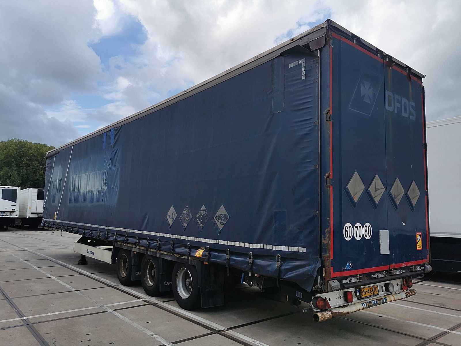 Aantal Assen: 3, Laadvermogen: 32200 kg, Eigen gewicht: 6800 kg, Totaalgewicht: 39000 kg, Kingpin afmeting: 2 inch, Vering type: vollucht, ABS (Anti Blokkeer Systeem), EBS, Bouwjaar opbouw: 2015, Zijwand materiaal: zeil, Hefdak, Schuifdak, Merk as: BPW, Price is per piece. Price for the full stack is Euro 19.750 FAS Antwerp