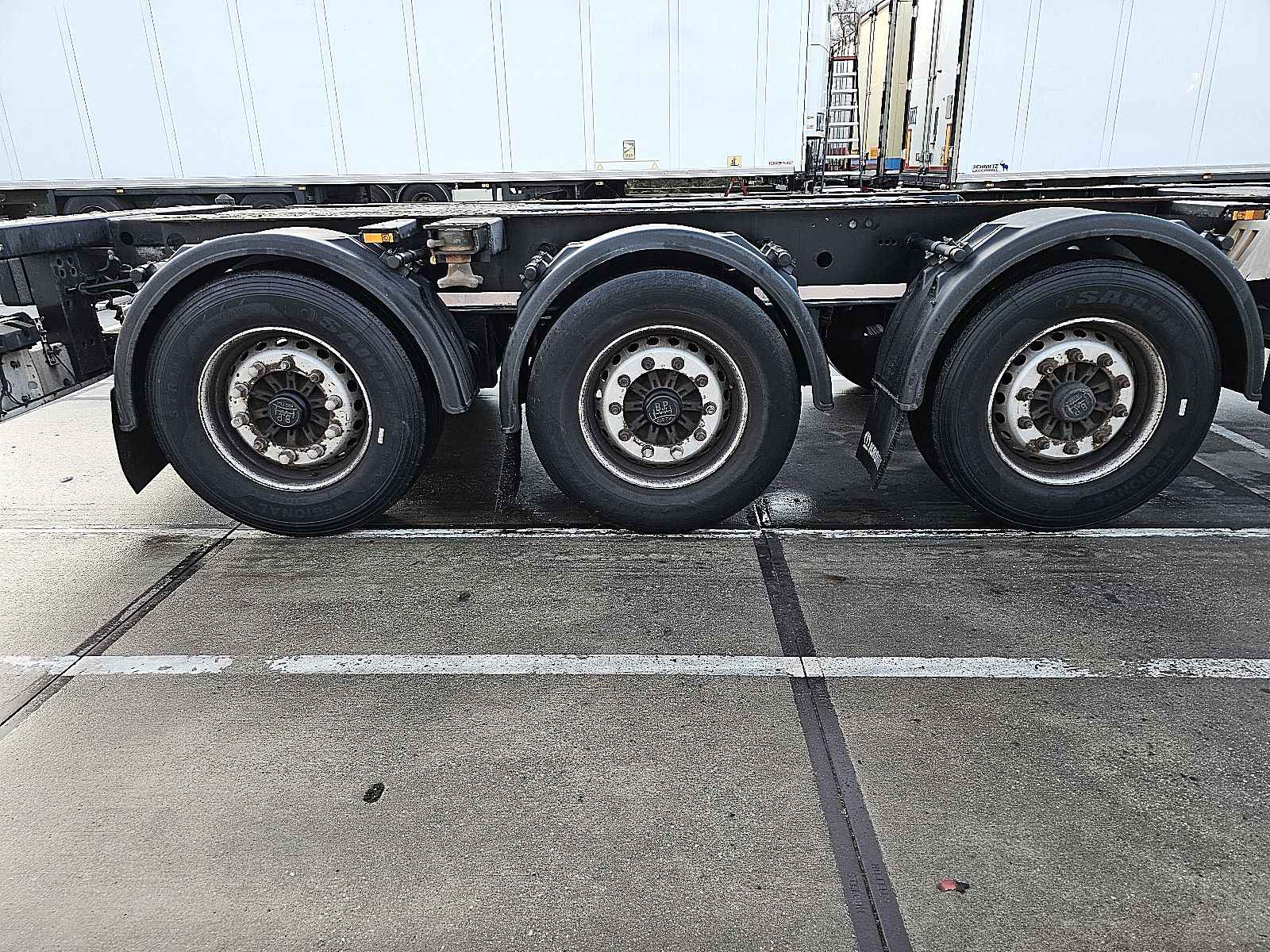 Aantal Assen: 3, Soort chassis: Volledig chassis, Materiaal chassis: staal, Kingpin afmeting: 2 inch, Vering type: vollucht, ABS (Anti Blokkeer Systeem), EBS, Bouwjaar opbouw: 2015, Twistlocks: 2x20 + 1x30 + 1x40 + 1x45 high cube, Uitschuifbare chassis: Voorkant / achter, Merk as: BPW