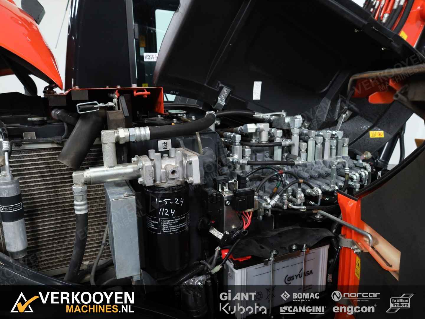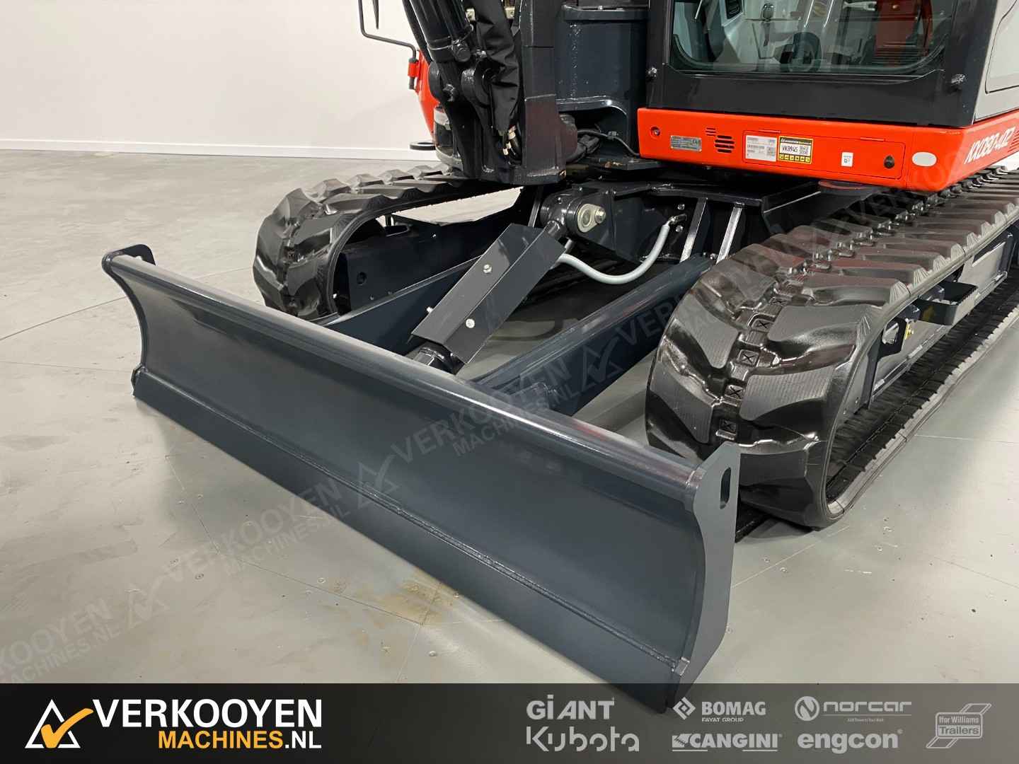 Algemeen Aansluiting: CW10 Status: Gebruikt Opties Standaard voorzien van: Zwaailamp Extra opties: Radio Rijwerk Breedte: 220 cm Conditie rijwerk: 80 % De Kubota KX080-4 Alpha2 levert krachtige prestaties met respect voor het milieu, een doordacht en aantrekkelijk ontwerp en optimaal gebruikers gemak. De Alpha2 uitvoering heeft een verzwaard chassis en contragewicht voor extra stabiliteit! Talloze innovaties zorgen ervoor dat deze ruime 8-tonner uw beste keus is. Het topmodel van de Kubota range heeft een verbeterd hydraulisch systeem en voldoet aan EU stage V door toepassing van een geavanceerd roetfilter.