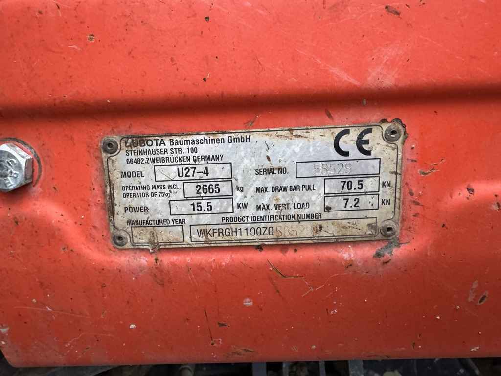 Kubota U27-4 minigraver/graafmachine rups 1 bak 2016 Diesel