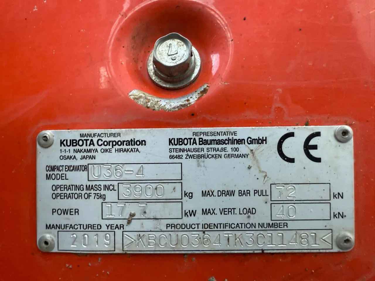 Kubota U36-4 2019 3500 hours 3900 kg 17,7 kw Extra hydraulic function Quick coupler MS03 1x hydraulic bucket 140cm