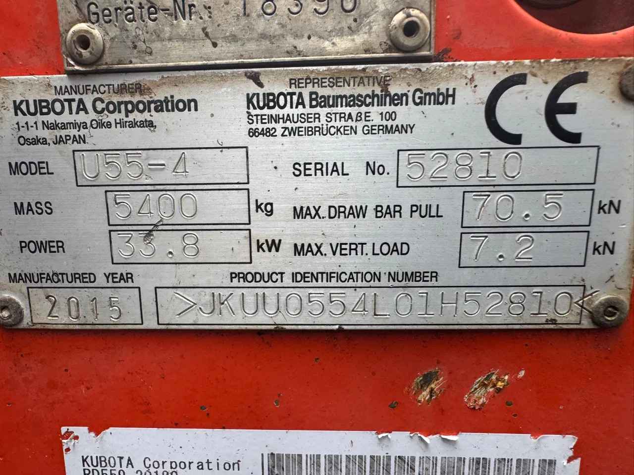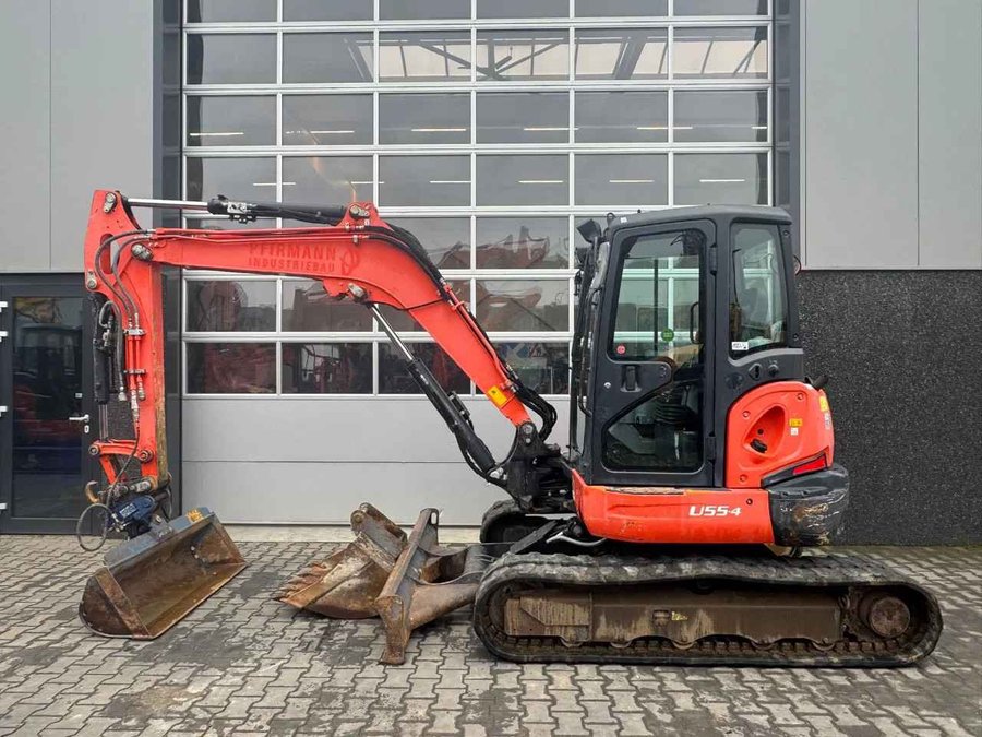 Kubota U55-4 2015 5187 hours 5400 kg 33,8 kw Extra hydraulic function Hydraulic quick coupler MS03 1x hydraulic bucket 140cm 1x Bucket 80cm