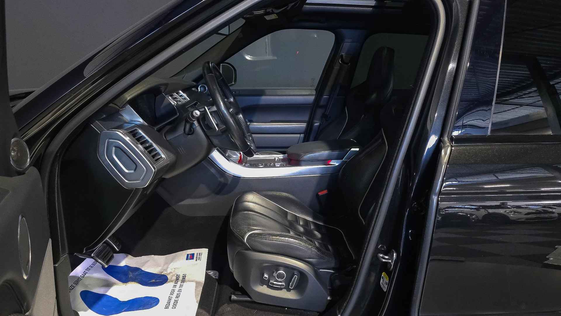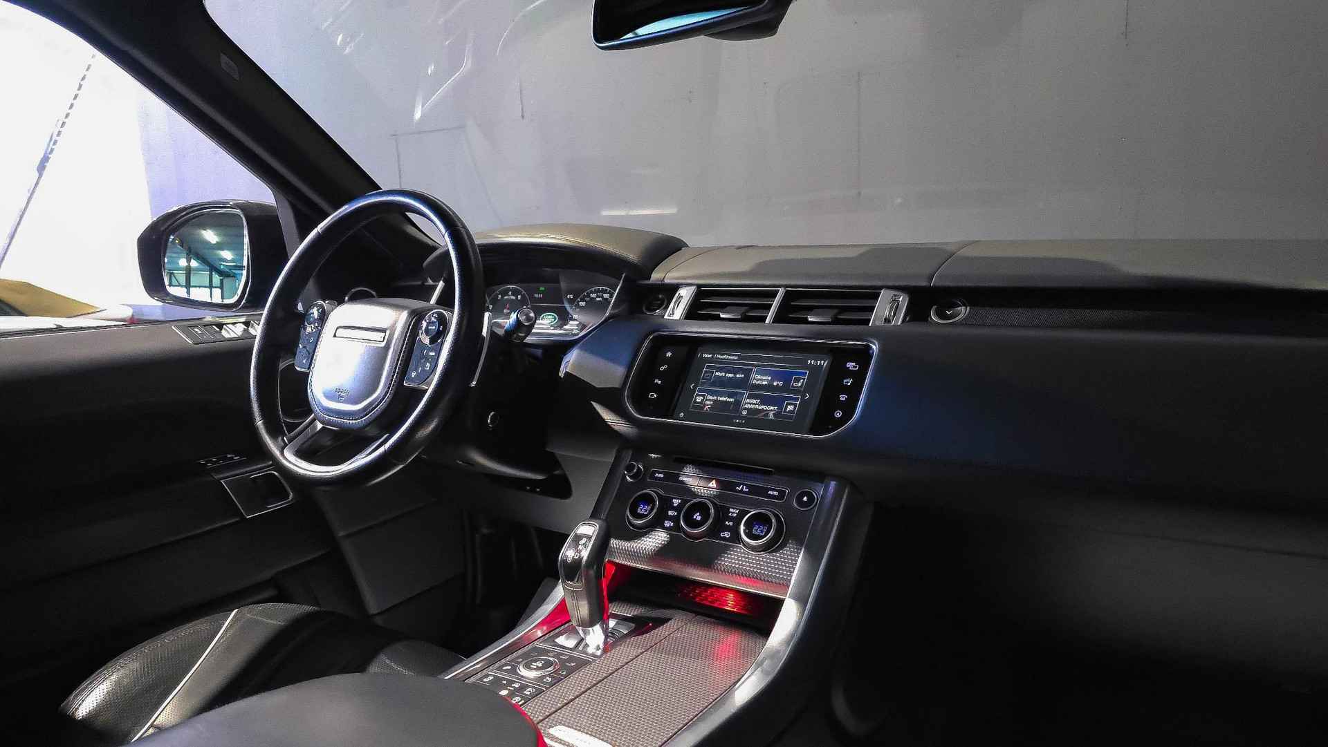 Alle technologie in de Land Rover Range Rover Sport is er op gericht om uw rit veilig en gemakkelijk te laten verlopen. Een achtcilinder benzinemotor en een automatische transmissie zorgen samen voor een snelle en comfortabele rijervaring. Aan gemak én ruimte is uitstekend gedacht: een elektrisch bediend glazen panorama dak en een elektrisch bedienbare achterklep. En dan krijgt u het mooie lederen interieur er ook nog eens bij! Dankzij de elektrische stoelbediening is het gemakkelijk om de optimale zitpositie te vinden. Ook in winterse omstandigheden is rijden een plezier, niet in de laatste plaats dankzij het verwarmd stuurwiel. In het donker zorgt de xenonverlichting voor een goed zicht op de weg. Natuurlijk behoren 21 inch lichtmetalen velgen, adaptief dempingsysteem, geluidsisolerende ramen, in delen neerklapbare achterbank en snelheidsafhankelijke stuurbekrachtiging ook tot de uitrusting van deze complete auto.