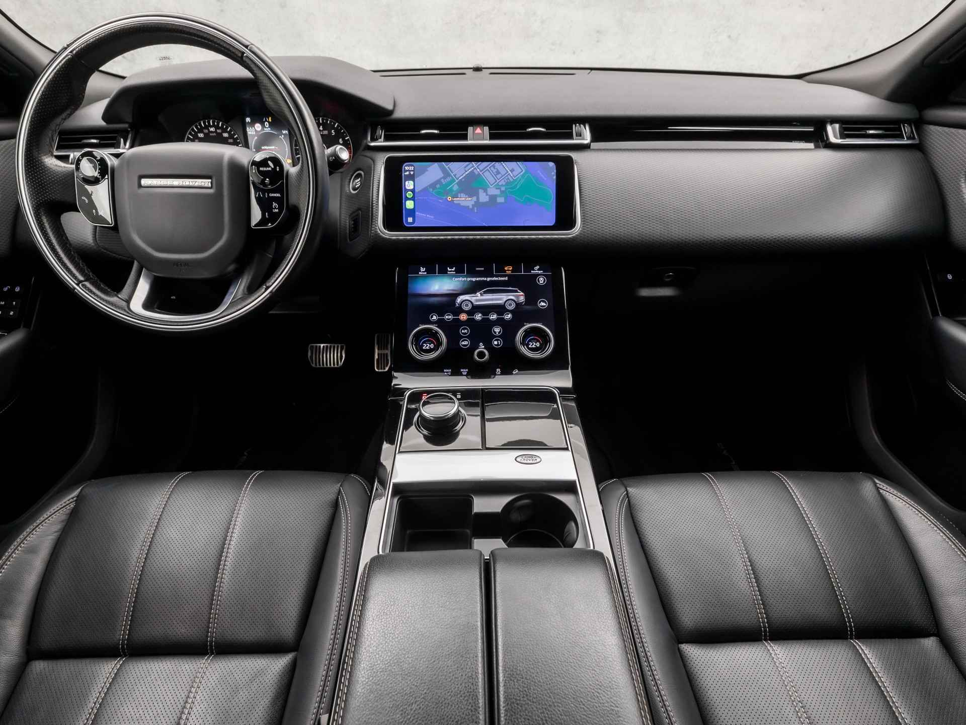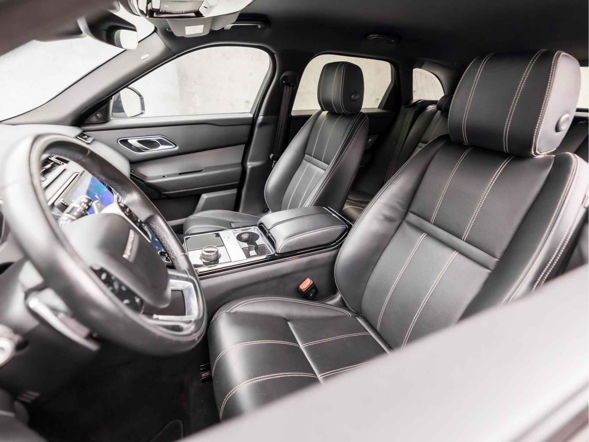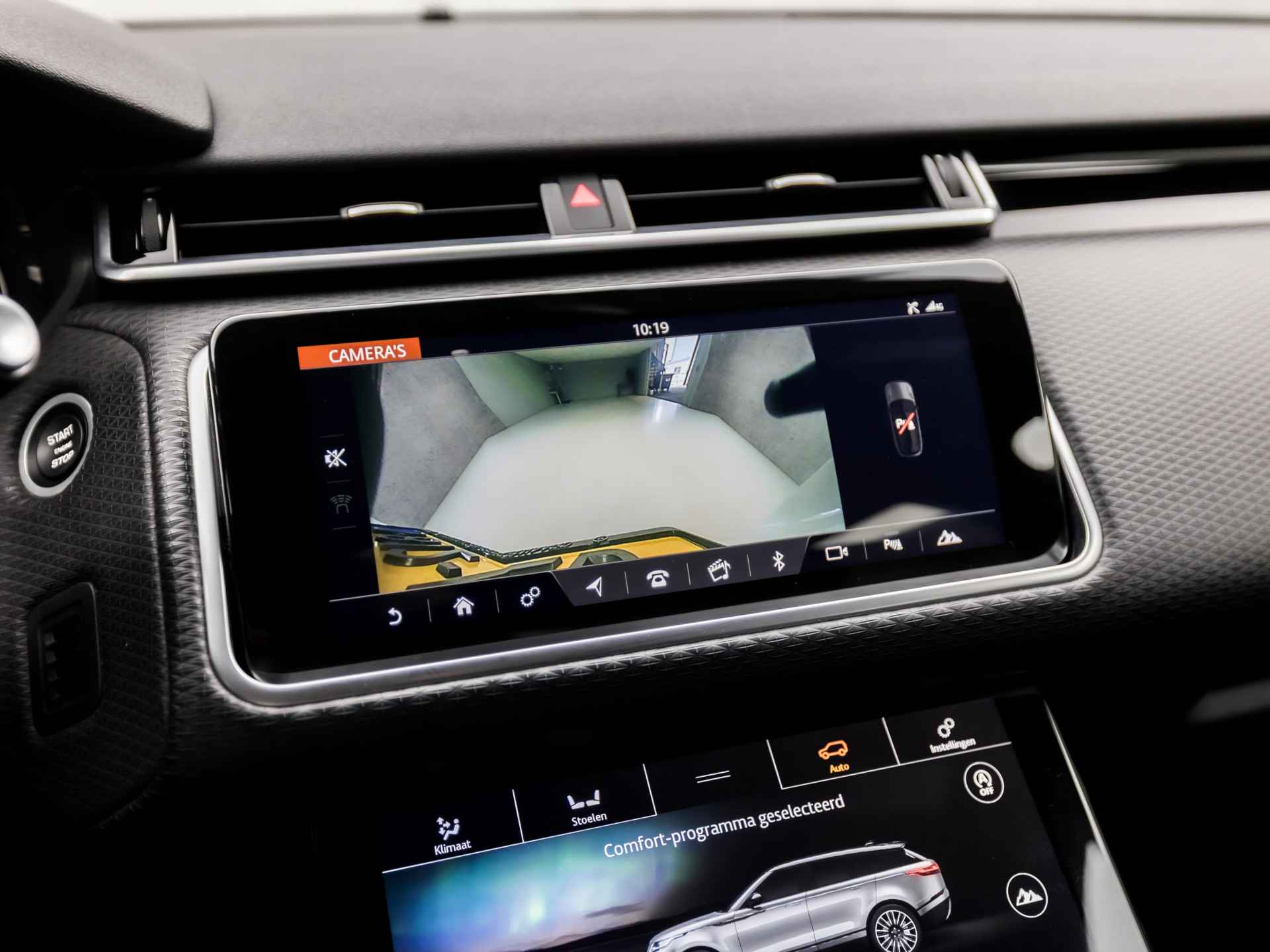 De nieuwste veiligheidssystemen komen in deze Land Rover Range Rover Velar samen. Verkeersbord-detectie herkent verkeersborden en toont deze op het instrumentarium van de auto. Met het Lane-keeping systeem komt u nooit per ongeluk buiten de rijstrook. De forward collision warning geeft een botswaarschuwing als een aanrijding dreigt met een voorligger. De auto is ook uitgerust met dodehoekdetectie, hill hold functie, vermoeidheidsherkenning, autonoom remsysteem en bandenspanningcontrolesysteem.