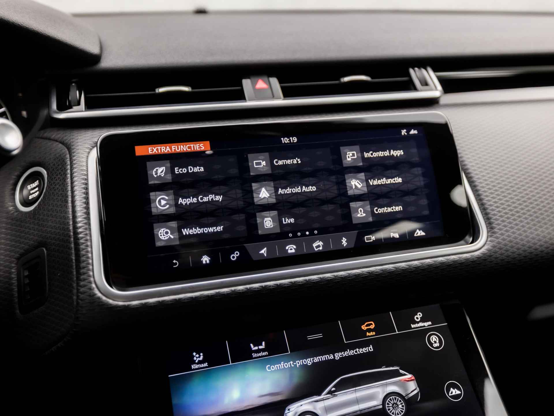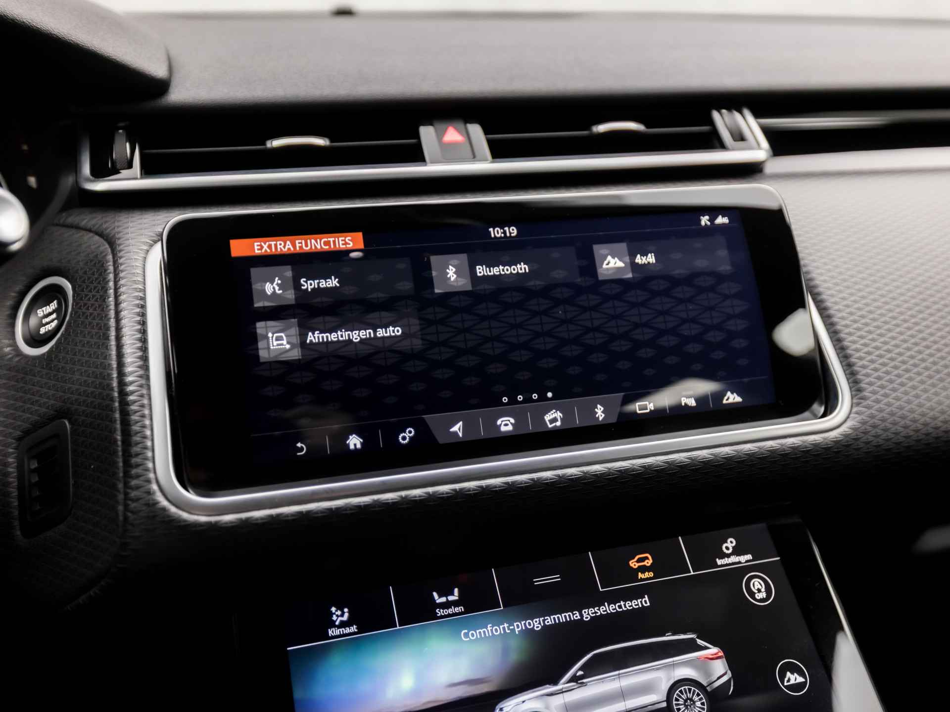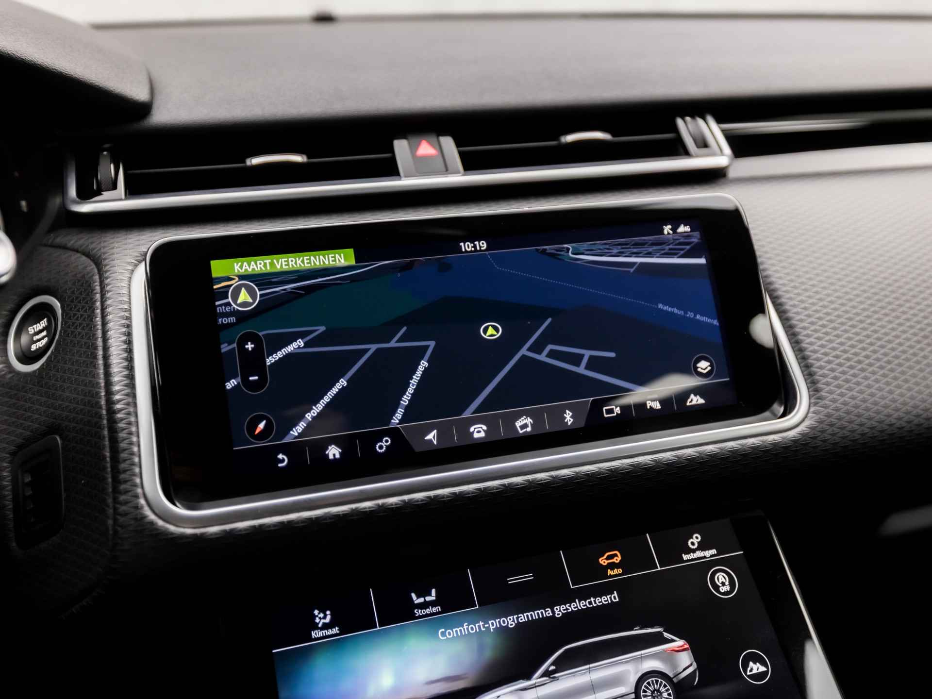 De nieuwste veiligheidssystemen komen in deze Land Rover Range Rover Velar samen. Verkeersbord-detectie herkent verkeersborden en toont deze op het instrumentarium van de auto. Met het Lane-keeping systeem komt u nooit per ongeluk buiten de rijstrook. De forward collision warning geeft een botswaarschuwing als een aanrijding dreigt met een voorligger. De auto is ook uitgerust met dodehoekdetectie, hill hold functie, vermoeidheidsherkenning, autonoom remsysteem en bandenspanningcontrolesysteem.