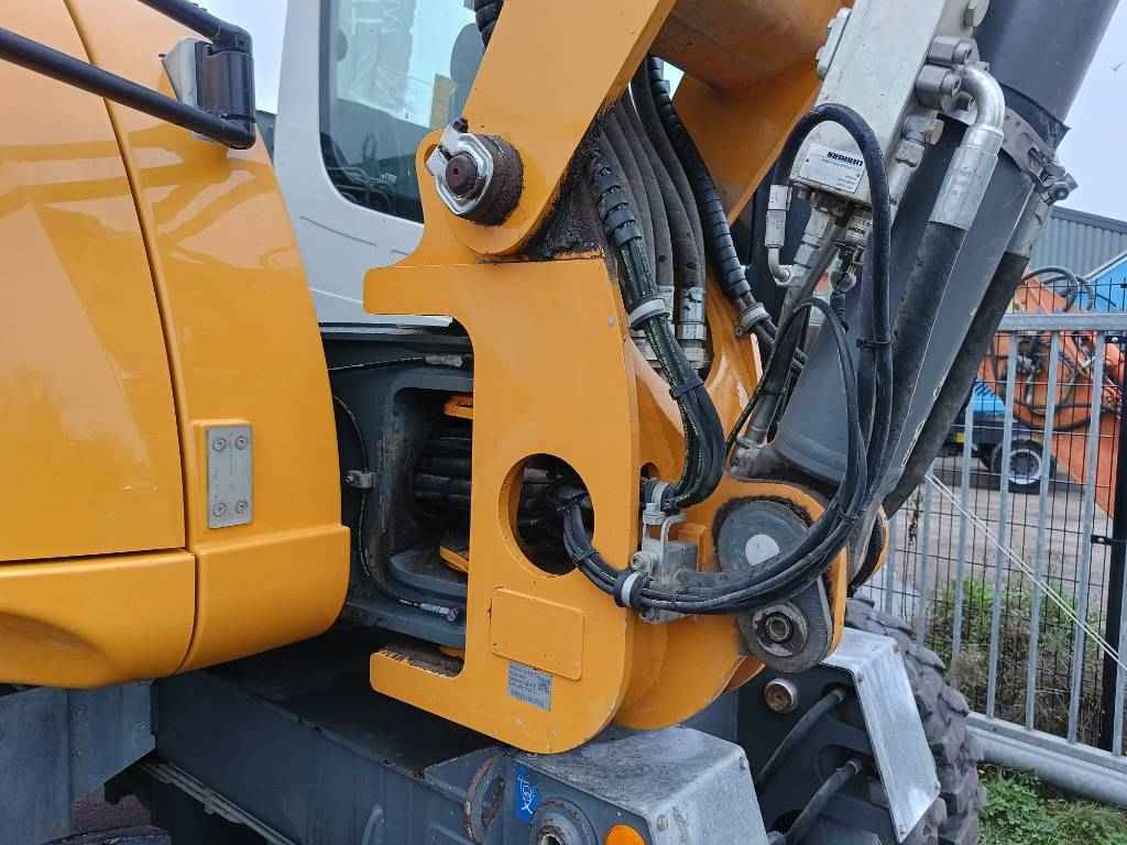 Liebherr A 910 Compact mobiele graafmachine excavator 12,5T - bj 2018 - 4.770 uur - incl. 3 bakken en vorkenbord - 12.500 kg - CE-marked - stelgiek - roterende mast - hydraulische snelwissel - automatische smering - 4x4, 4 wiel sturen prijs is ex. BTW Video machine: occasions-tuytel-machinery.com/tuytelmachinery/bouw/mobiele-graafmachines