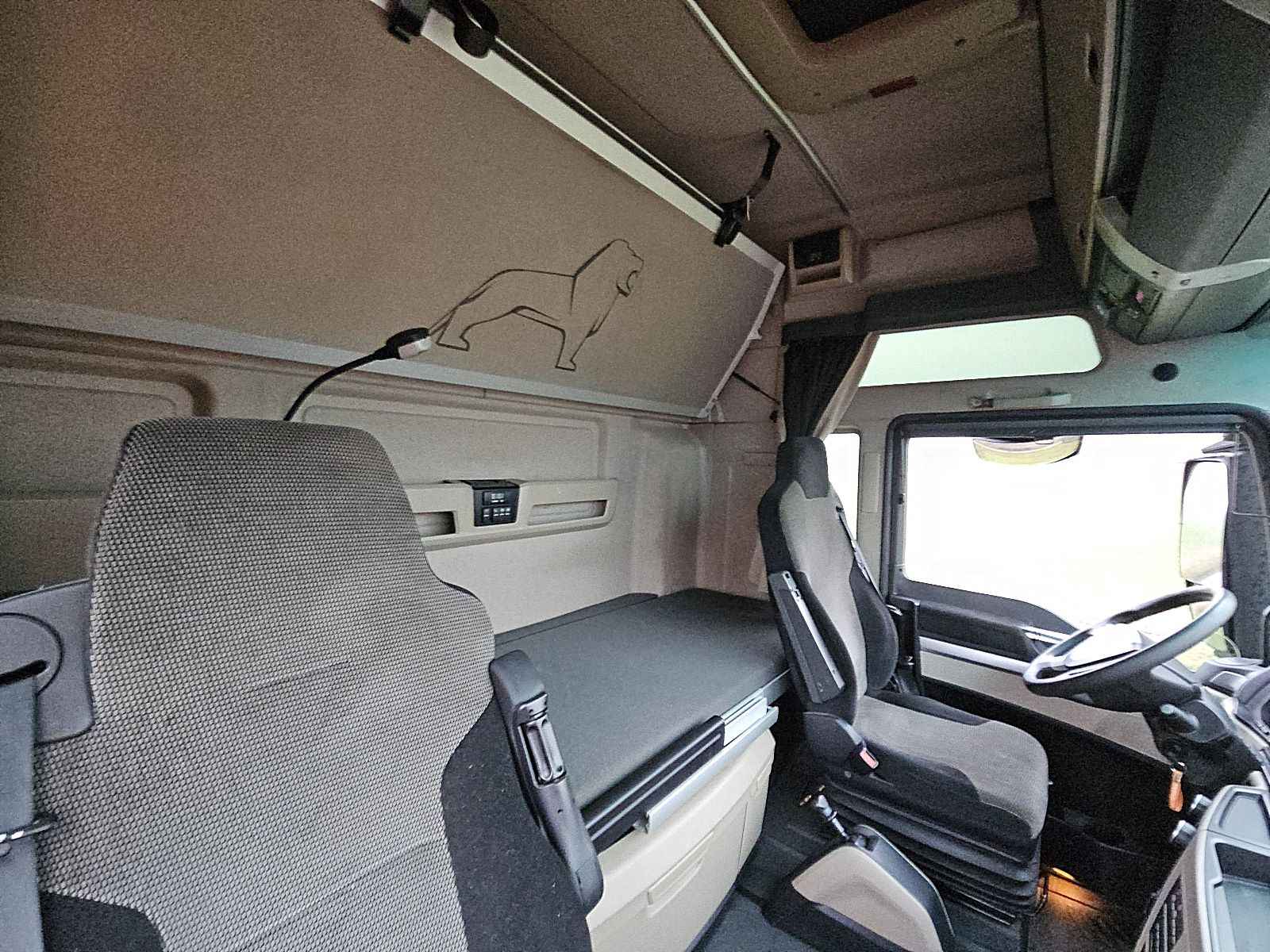 Configuratie: 4x2, Laadvermogen: 11117 kg, Eigen gewicht: 7883 kg, Totaalgewicht: 19000 kg, Diesel inhoud totaal: 1160 liter, 2e dieseltank, Schotelhoogte: 110 cm, Schotel type: Fixed, Aantal sperren: 1, Lichtmetalen velgen, Soort cabine: Hoge cabine, Cruise control, Tachograaf, Digitale tachograaf, Airconditioning, Standkachel, Elektrische ramen, Elektrische spiegels, Radio/cassette, Kleur: Groen, Verwarmde spiegels, Soort lampen: Halogeen, Laneassist, Climatecontrol, Stoelverwarming, Bluetooth, Zwaailichten, Motorvermogen: 368 Kw (493 Hp), Brandstof: diesel, Euro: 6, Soort versnellingsbak: Automaat, Merk versnellingsbak: Scania, Versnellingen: 14, Extra remsysteem, Merk retarder: Intarder, Stuurbekrachtiging, ABS (Anti Blokkeer Systeem), ASR (Anti Slip Regeling), Start accu, Centrale vergrendeling, Zitplaatsen: 2, Stoelopstelling: 1+1, Stoelbekleding: stof, Stoel verstelling: Handmatig