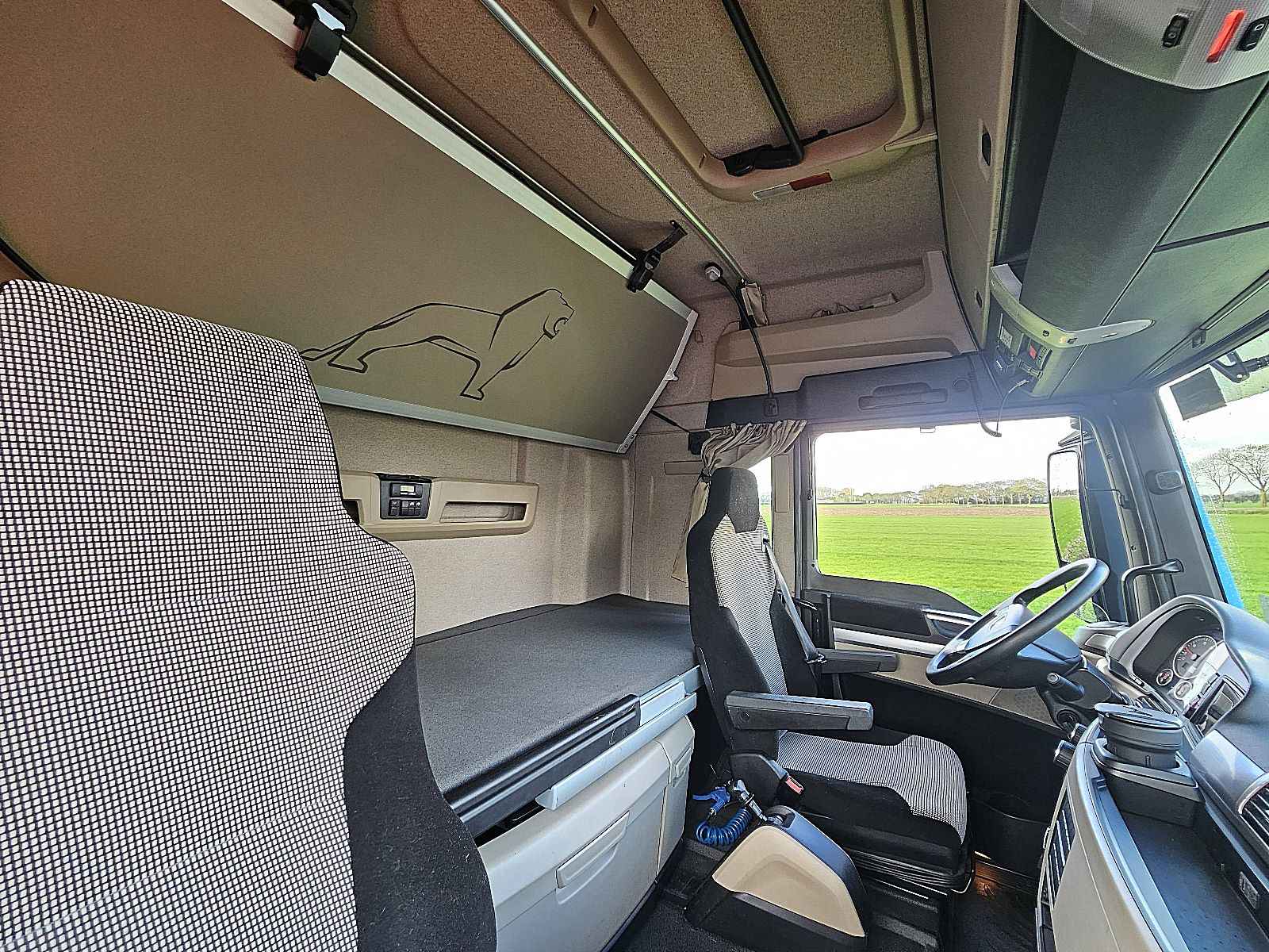 Aantal Assen: 3, Configuratie: 6x2, Diesel inhoud totaal: 460 liter, Schotelhoogte: 117 cm, Schotel type: Slide, Aantal sperren: 1, Vering type: luchtvering, Soort cabine: Hoge cabine, Cruise control, Tachograaf, Digitale tachograaf, Airconditioning, Standkachel, Elektrische ramen, Elektrische spiegels, Radio/cassette, GPS navigatie, Kleur: Blauw, Verwarmde spiegels, Soort lampen: Halogeen, Laneassist, Climatecontrol, Stoelverwarming, Bluetooth, Motorvermogen: 368 Kw (493 Hp), Brandstof: diesel, Euro: 6, Soort versnellingsbak: AS-tronic, Merk versnellingsbak: ZF, Versnellingen: 12, Stuurbekrachtiging, ABS (Anti Blokkeer Systeem), ASR (Anti Slip Regeling), Start accu, Centrale vergrendeling, Stoelopstelling: 1+1, Stoelbekleding: stof, Stoel verstelling: Handmatig