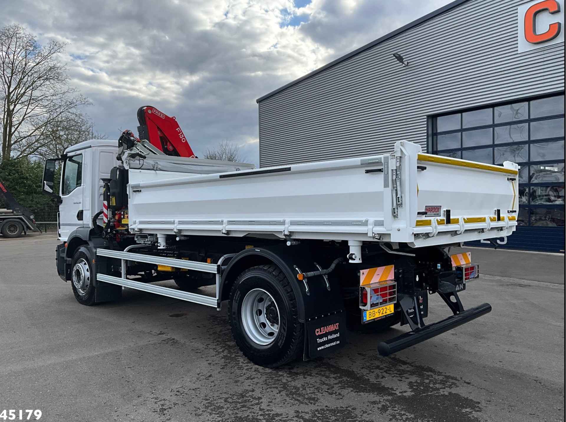 - Fassi 13 Tonmeter laadkraan (type: F130A.0.23 E-Active) - 3 x hydraulisch uitschuifbaar - 5-e en 6-e functie - Radiografische afstandsbediening - Hijstabel: * 6,05 meter -> 1.880 kg * 7,95 meter -> 1.400 kg * 9,95 meter -> 1.065 kg - 3-zijdige kipper - Afmetingen: lengte 450 cm x breedte 242 cm x hoogte 60 cm - Laadvloer hoogte: 148 cm - Linker- en rechterzijde klapbare panelen - Sjorogen - Afnetsysteem - MAN TipMatic 12.12 OD - Electronic brake system (EBS) - Motortype: D0836LFL - Volledig bladgeveerd! - Nieuw & ongebruikt!