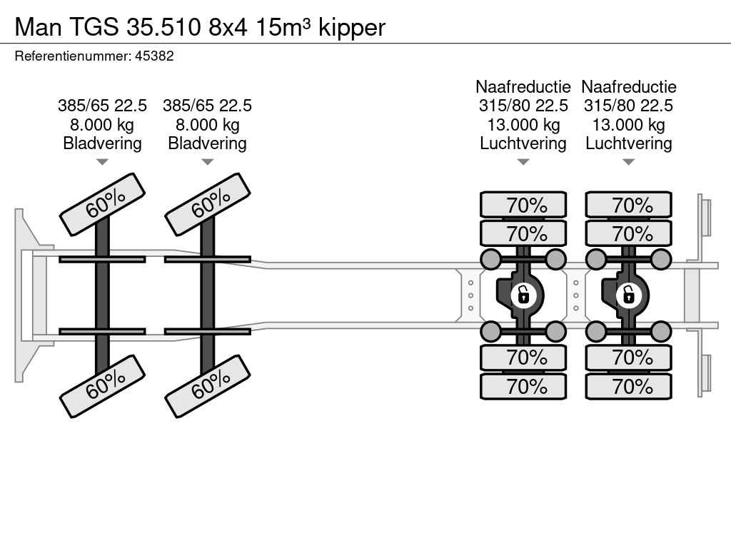 - Zettenbergs 15m³ (type ZD4-F 10/8-57-11) achterwaartse kipper - Afmetingen kipper (inwendig) lengte 565 cm x breedte 238 cm x hoogte 111 cm) - Dieselmotor D2676LF78 - 510 hp / 375 kW EURO6 SCR - 2,600 Nm C-R OBD-D - Versnellingsbak MAN TipMatic® 12 28 OD - Aluminium brandstoftank 390 Liter - Adblue tank 35 Liter - 2-e as hydrodrive aandrijving - Vangmuil 50mm - 1 x bed - 13 Ton achterassen - In nette staat!