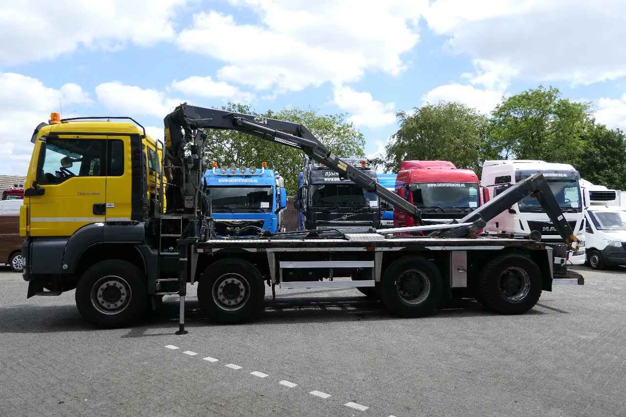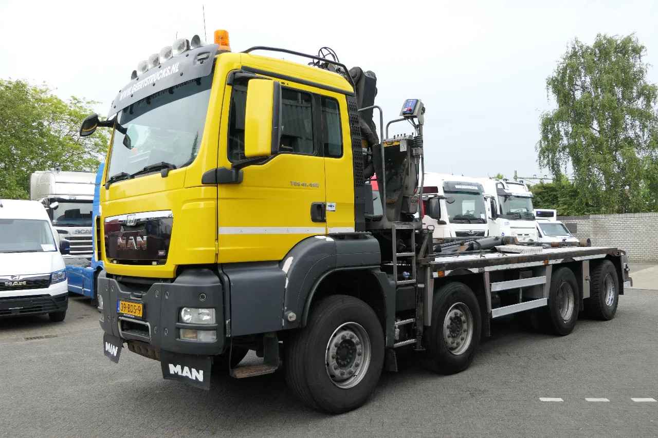 MAN TGS 41.480 | 8X4 | HMF 1643-Z2 | Afstand Bestuurbaar | Hyva Haakarm | 591871 km | 2014 | Euro5 | Wijd verspreid | Blad Vering | Handgeschakeld | Achteruitkijkcamera | NL-vrachtwagen ViN: WMA39SZZ2EM640763 Transportdiensten over de weg: NL Transitkentekens met verzekering + €150,- Transportdiensten per verzending: Transport naar haven (Antwerpen/Rotterdam/Amsterdam) + €300,- Transport naar haven Zeebrugge + €400,- Meer over Geerts Trucks & Trailers: Youtube Kanaal Geerts Trucks & Trailers: https://www.youtube.com/channel/UCP6BJ3kV7kyhJz3p6nDvFzw Instagram Geerts Trucks & Trailers: https://www.instagram.com/geertstrucks.nl/ Facebook Geerts Trucks & Trailers: https://www.facebook.com/GeertsTrucks Tiktok Geerts Trucks & Trailers: https://www.tiktok.com/@geertstrucks.nl Linkedin Geerts Trucks & Trailers: https://www.linkedin.com/in/geerts-trucks-a4a34726b/ Like en abonneer u op onze NIEUWSTE voorraad