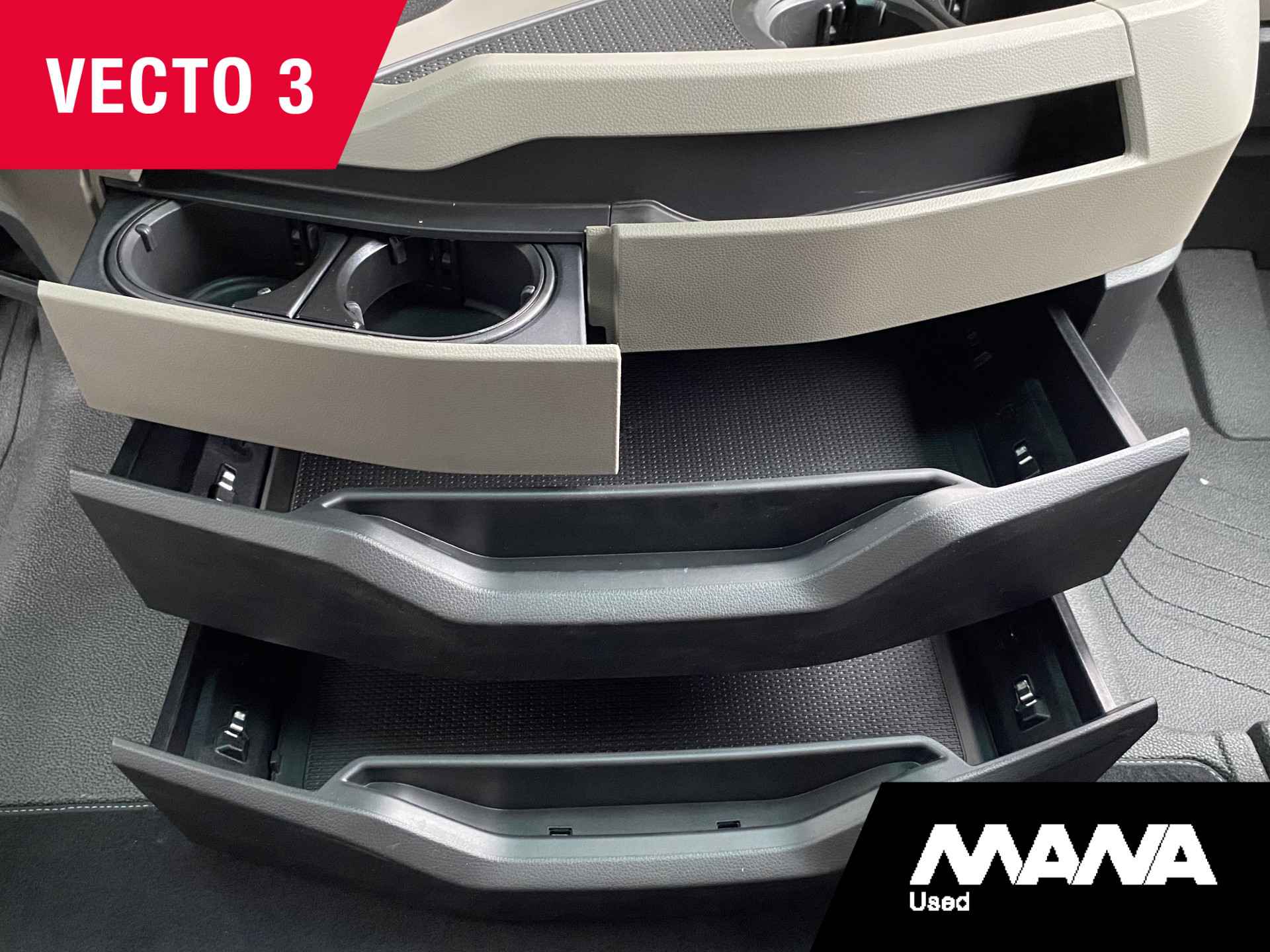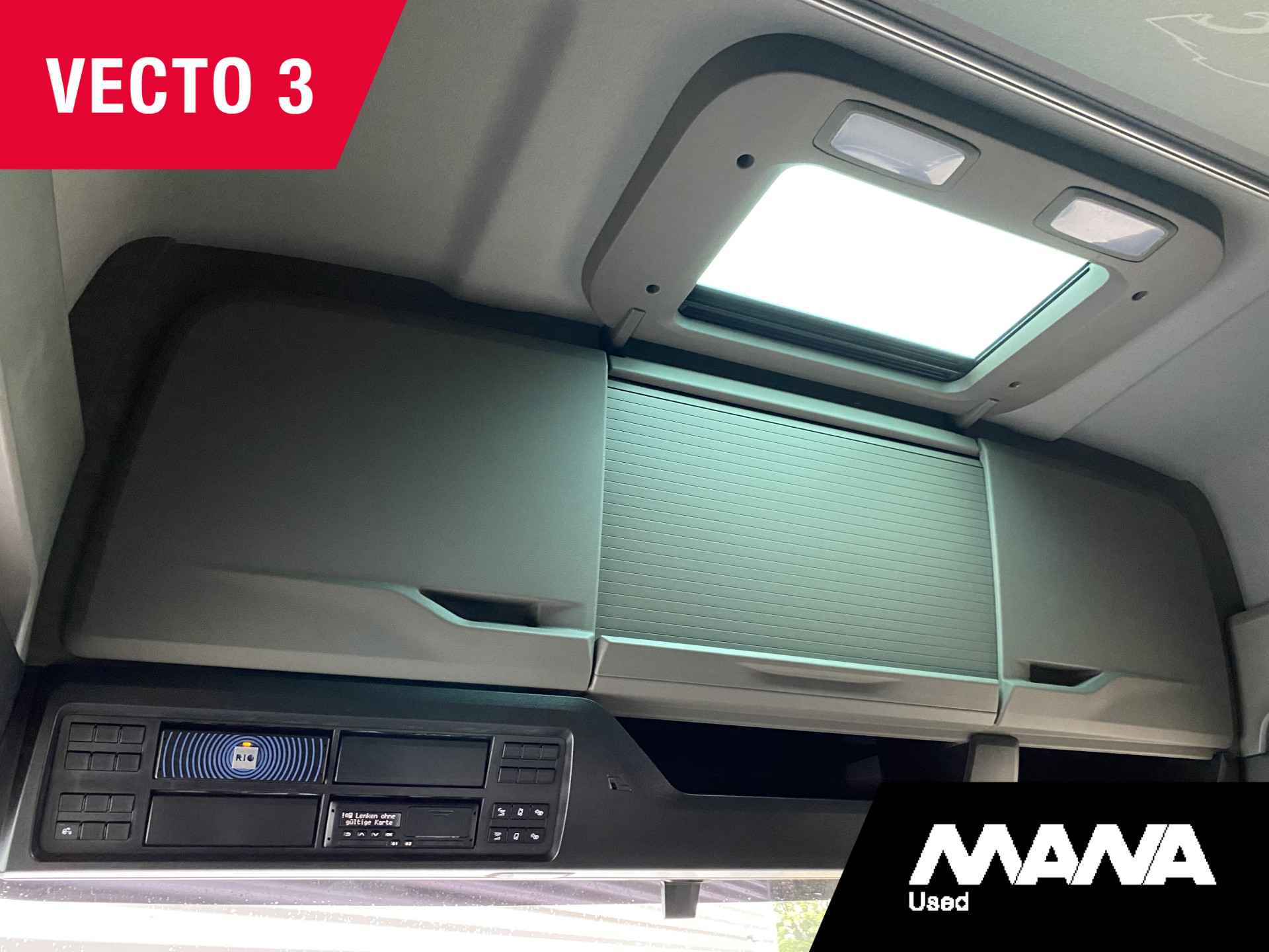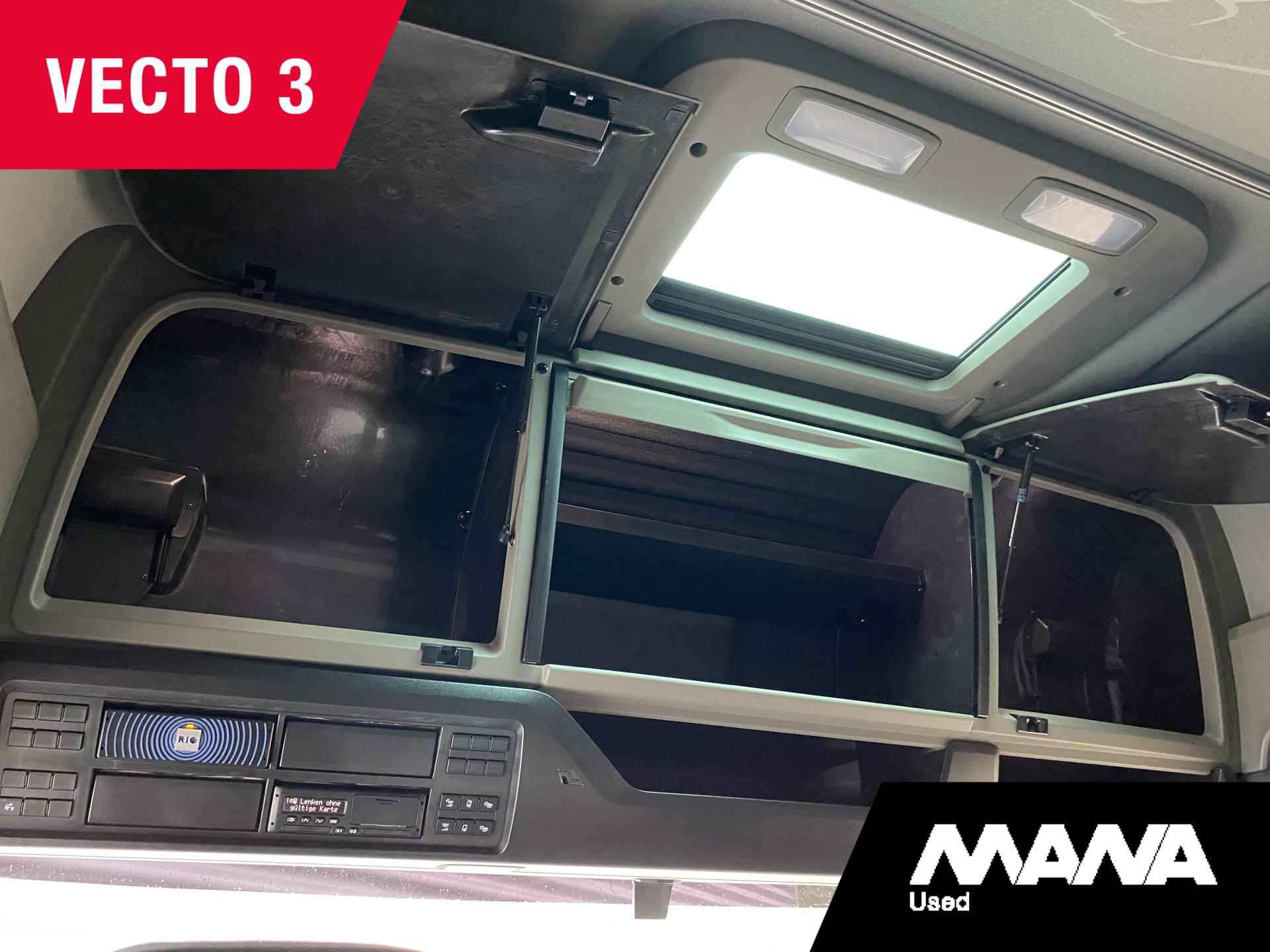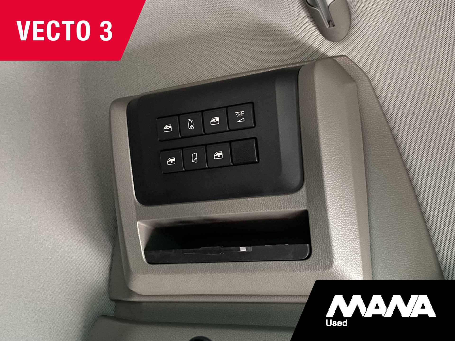 • ­ 3 opbergvakken hoog dak voor, 1 links en 1 rechts, met klep, 1 in het midden met jaloezie