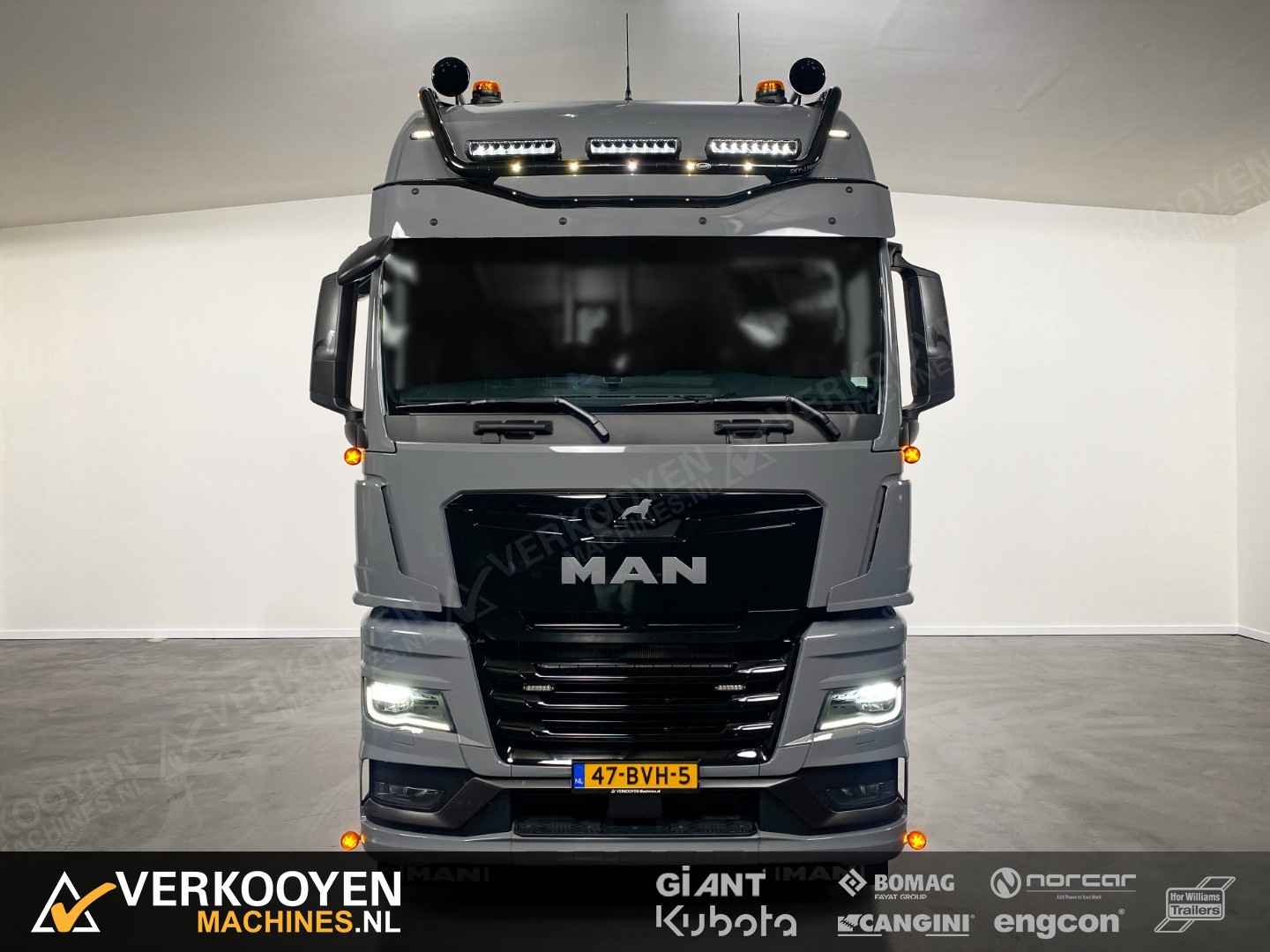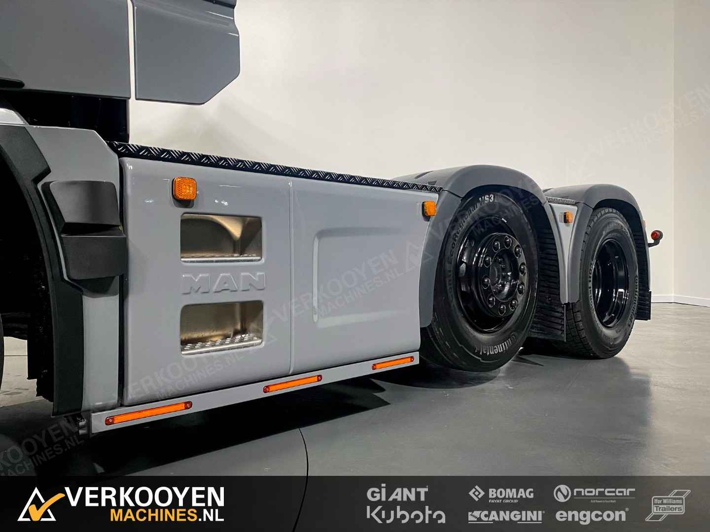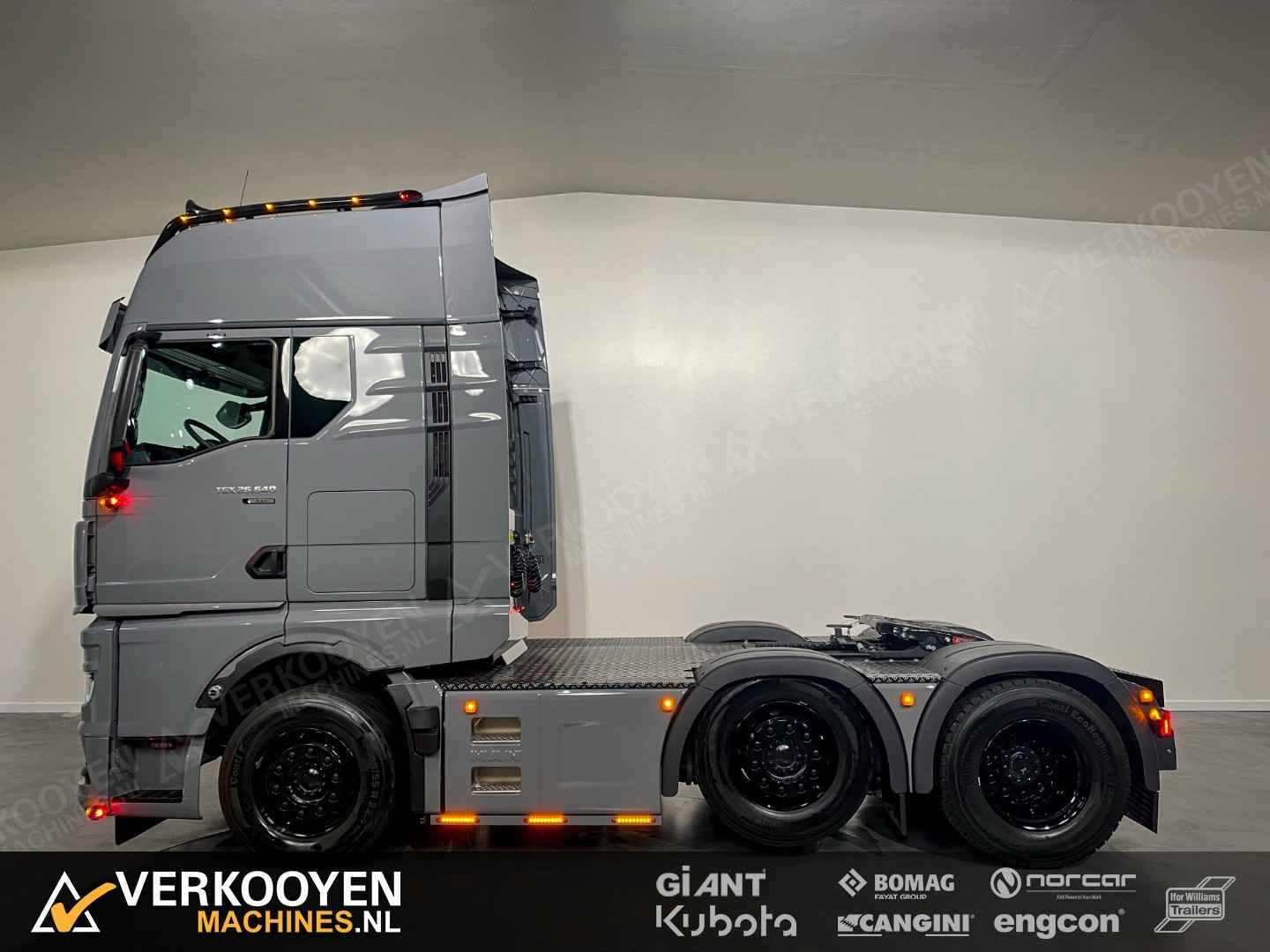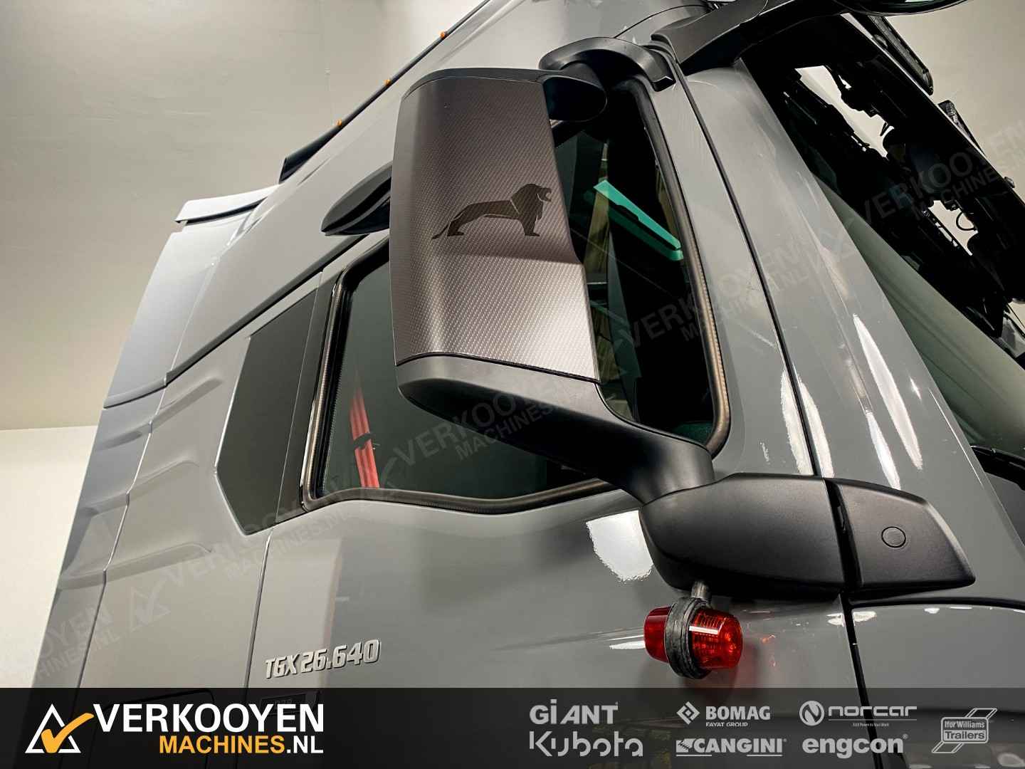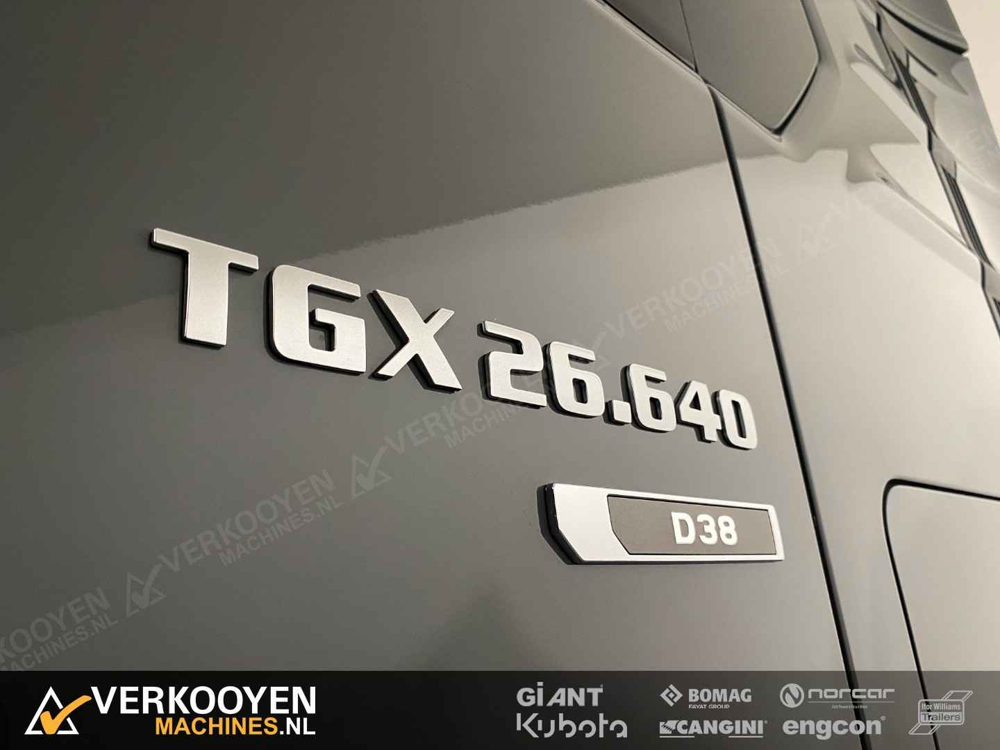 MAN TGX 26.640 6x2 Auto is voorzien van - 640pk 15,6ltr motor - Voorloop-as -> Lift-as is ten alle tijden liftbaar en luchtgeveerd - Liftas is meesturend - LightFix beugel met verstralers (3x rechthoek), zwaailampen en luchthoorns - Flitsers in de grill. - Zwaailampen & flitsers gaan aan bij seinen met groot licht. - LED werklampen achteruit bij instap, achterop en bovenkant achterzijde cabine. - Dakspoiler + Zijfenders, Side-skirts en zonneklep (alle gespoten) - JOST schuif schotel, hoogte 1150 mm - Zwart traanplaat op chassis - MAN slangenrek met slangaansluiting met verlicht MAN-logo - Breedtelampen voor + achter - Bestuurderscomfortpakket Plus voor TGX - Brandstoftank links 460 L - AdBleutank rechts 80 L - Luchtvering op achteras en voorloopas , geen luchtvering op vooras - Schotelhoogte 115cm Opties auto - Airco A/C - Elektrische stand-airconditioning - Koelkast - Adaptive cruise-control - Elektrisch dakluik - LED-koplampen - LED achterlichten en zijmarkeringslichten - Lederen stoelen incl stoelverwarming - Cabineophanging Comfort (luchtgeveerd) - Stoelverwarming Veiligheid - Antiblokkeersysteem (ABS) - Antislipregeling (ASR) - Elektronisch stabiliteitsprogramma (ESP) - Lane departure warning - Hill-assist - Lane Return Assist (LRA) - Lane Change Support LCS en dodehoekhulp - Spiegels verwarmd Infotainment - MAN mediasysteem Naviagtion Professional 12,3inch - MAN Soundsystem Advanced met subwoofer - MAN Telematics - Radio - Bluetooth telefoon verbinding - Navigatiesysteem (incl navigatiekaart Europa en Rusland) - Apple CarPlay + Android Auto + Mirrorlink Cabine - Cabine GX: de maximale - Kleur: Nardogrijs Audi LY7C - Kleurambiance Moon Grey interieur - Glazen kanteldak, elektrisch - 2x Matras comfortbed 110mm - Contactdoos 230v - Instapverlichting voor bestuurderszijde "Leeuw" en bijrijderszijde "MAN" Assen / Banden Vooras 9.200 kg, niet aangedreven, bladgeveerd. Banden 1e as: 385/55R22.5 Voorloopas 8.200 kg, niet aangedreven, gestuurd, hefbaar, luchtgeveerd. Banden 2e as: 315/70R22.5 Achteras 13.000 kg, Luchtgeveerd. Banden 3e as: 315/70R22.5