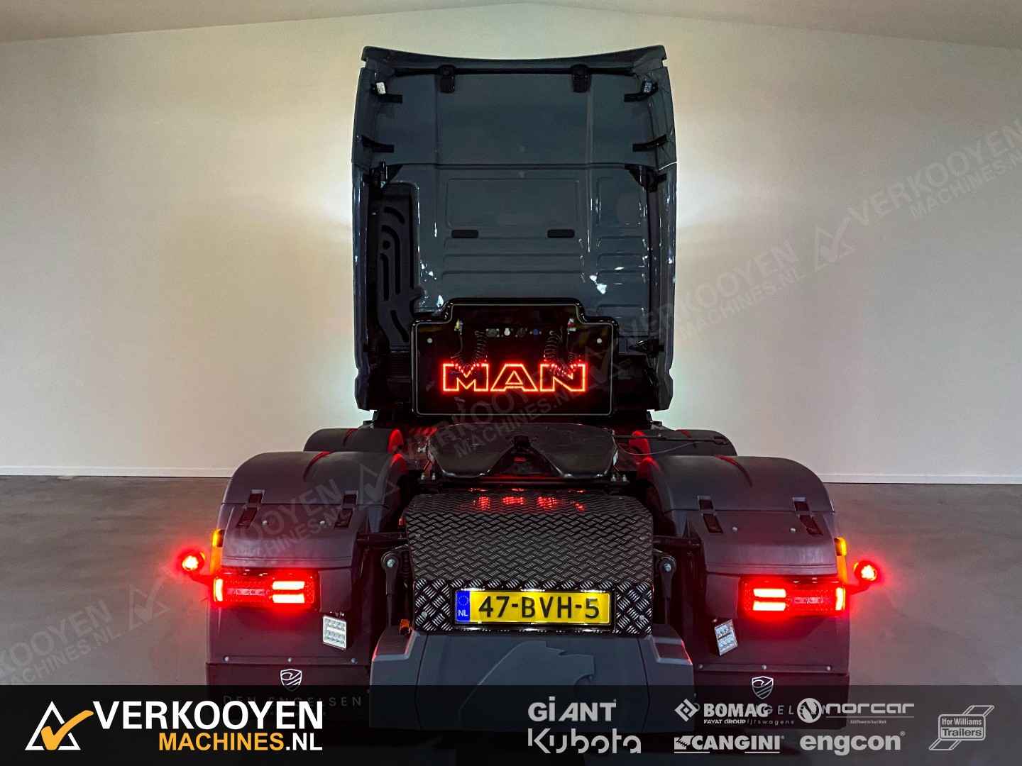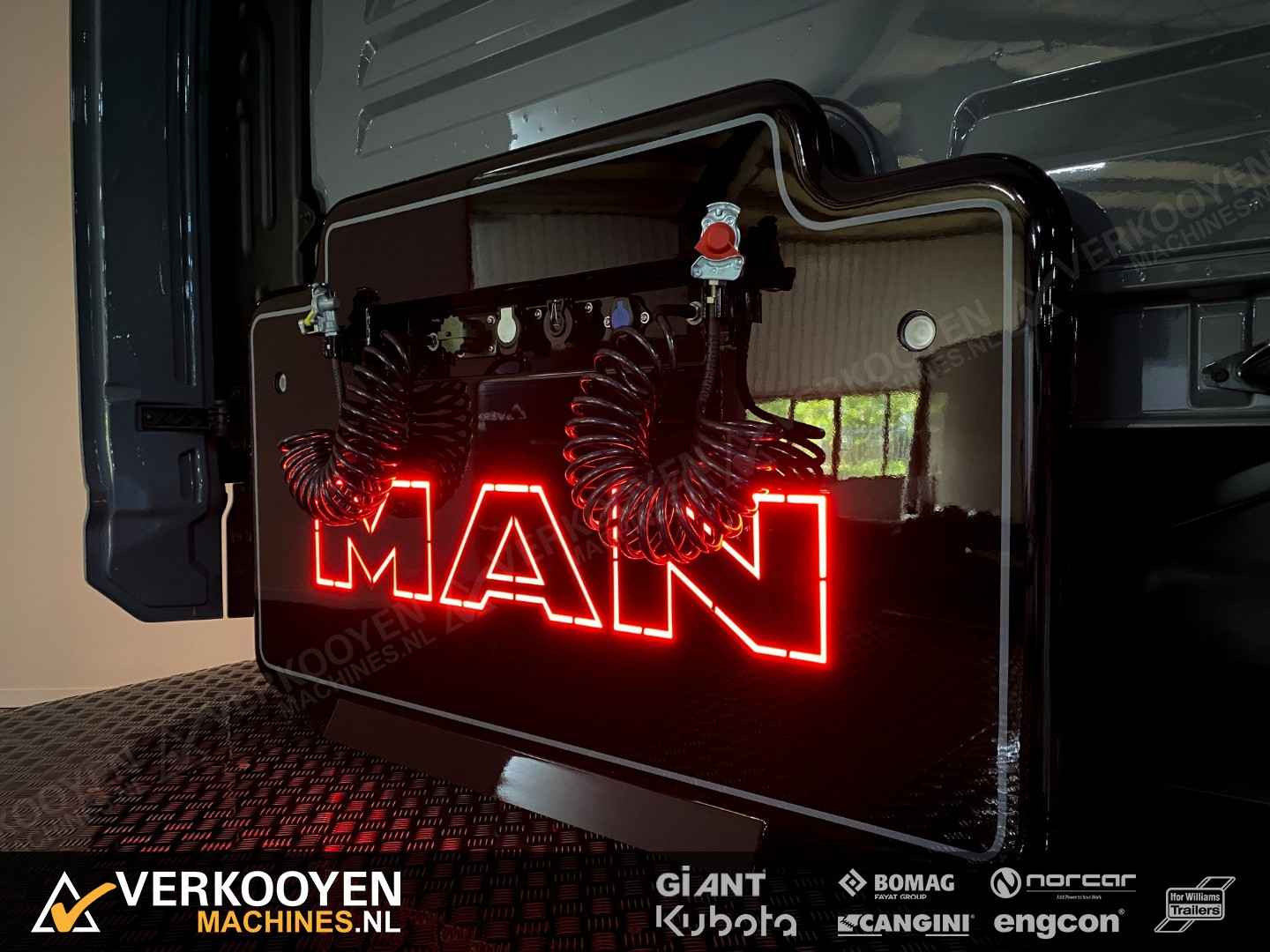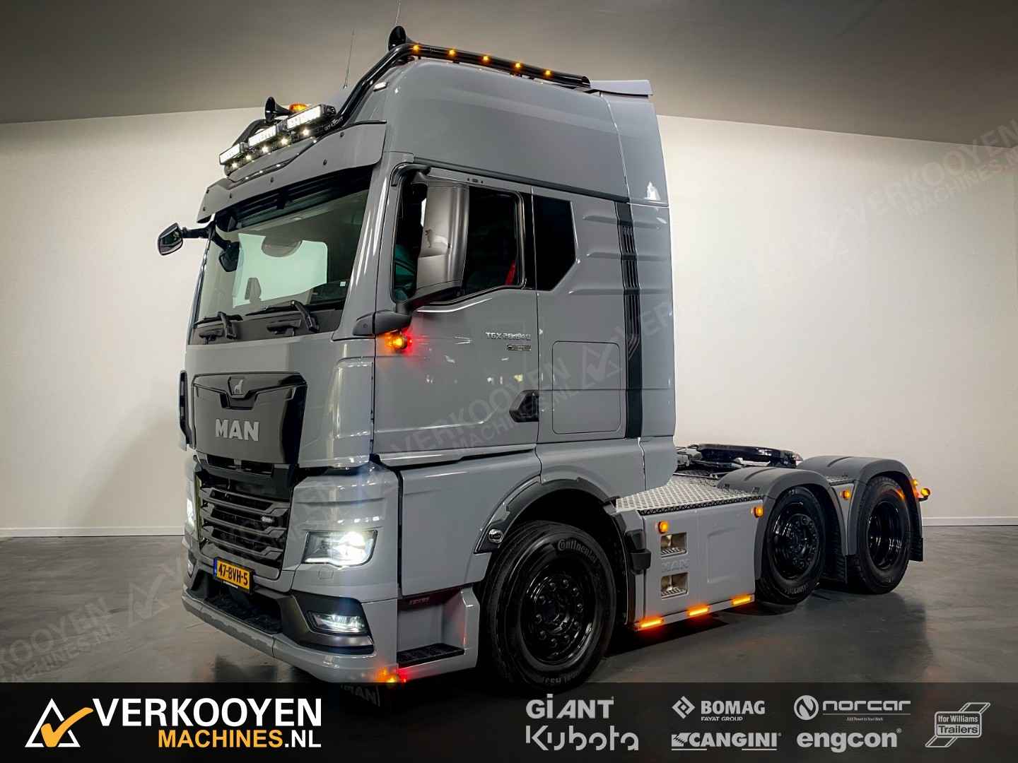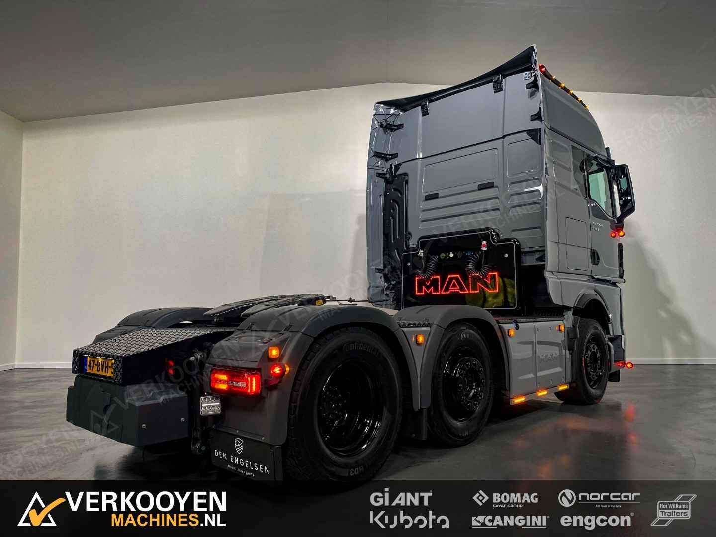 MAN TGX 26.640 6x2 Auto is voorzien van - 640pk 15,6ltr motor - Voorloop-as -> Lift-as is ten alle tijden liftbaar en luchtgeveerd - Liftas is meesturend - LightFix beugel met verstralers (3x rechthoek), zwaailampen en luchthoorns - Flitsers in de grill. - Zwaailampen & flitsers gaan aan bij seinen met groot licht. - LED werklampen achteruit bij instap, achterop en bovenkant achterzijde cabine. - Dakspoiler + Zijfenders, Side-skirts en zonneklep (alle gespoten) - JOST schuif schotel, hoogte 1150 mm - Zwart traanplaat op chassis - MAN slangenrek met slangaansluiting met verlicht MAN-logo - Breedtelampen voor + achter - Bestuurderscomfortpakket Plus voor TGX - Brandstoftank links 460 L - AdBleutank rechts 80 L - Luchtvering op achteras en voorloopas , geen luchtvering op vooras - Schotelhoogte 115cm Opties auto - Airco A/C - Elektrische stand-airconditioning - Koelkast - Adaptive cruise-control - Elektrisch dakluik - LED-koplampen - LED achterlichten en zijmarkeringslichten - Lederen stoelen incl stoelverwarming - Cabineophanging Comfort (luchtgeveerd) - Stoelverwarming Veiligheid - Antiblokkeersysteem (ABS) - Antislipregeling (ASR) - Elektronisch stabiliteitsprogramma (ESP) - Lane departure warning - Hill-assist - Lane Return Assist (LRA) - Lane Change Support LCS en dodehoekhulp - Spiegels verwarmd Infotainment - MAN mediasysteem Naviagtion Professional 12,3inch - MAN Soundsystem Advanced met subwoofer - MAN Telematics - Radio - Bluetooth telefoon verbinding - Navigatiesysteem (incl navigatiekaart Europa en Rusland) - Apple CarPlay + Android Auto + Mirrorlink Cabine - Cabine GX: de maximale - Kleur: Nardogrijs Audi LY7C - Kleurambiance Moon Grey interieur - Glazen kanteldak, elektrisch - 2x Matras comfortbed 110mm - Contactdoos 230v - Instapverlichting voor bestuurderszijde "Leeuw" en bijrijderszijde "MAN" Assen / Banden Vooras 9.200 kg, niet aangedreven, bladgeveerd. Banden 1e as: 385/55R22.5 Voorloopas 8.200 kg, niet aangedreven, gestuurd, hefbaar, luchtgeveerd. Banden 2e as: 315/70R22.5 Achteras 13.000 kg, Luchtgeveerd. Banden 3e as: 315/70R22.5