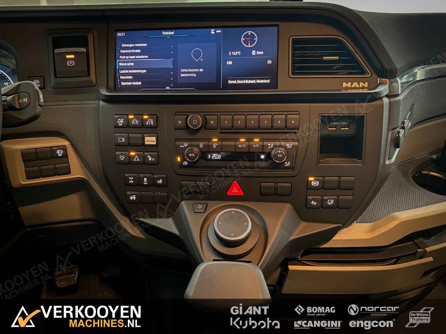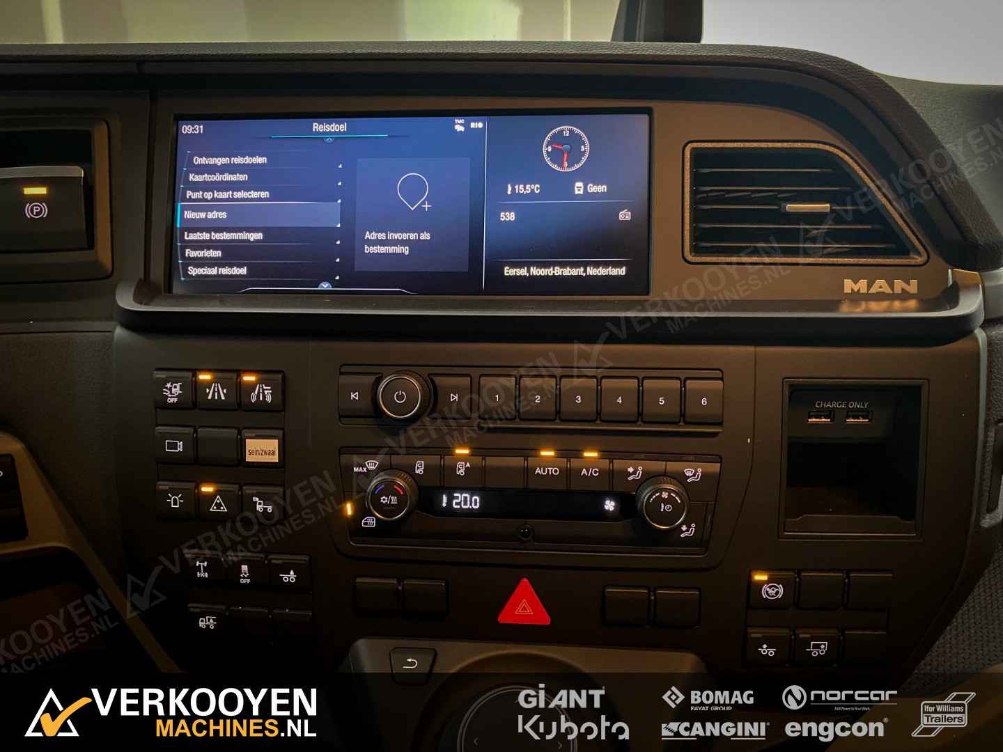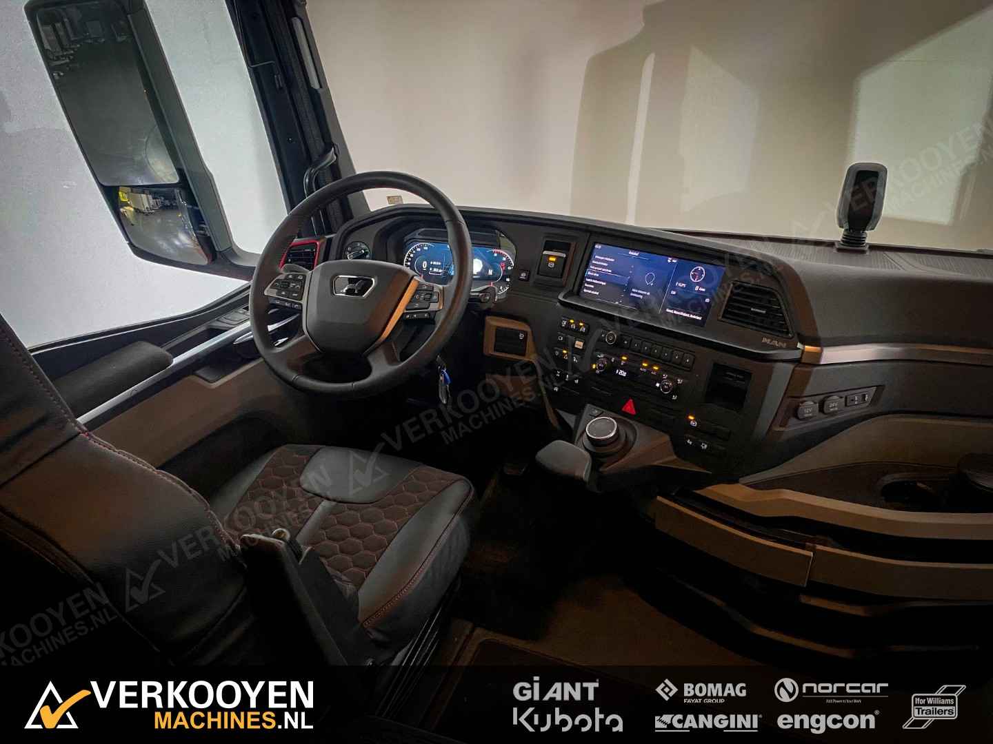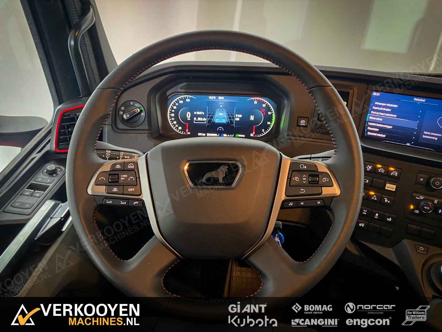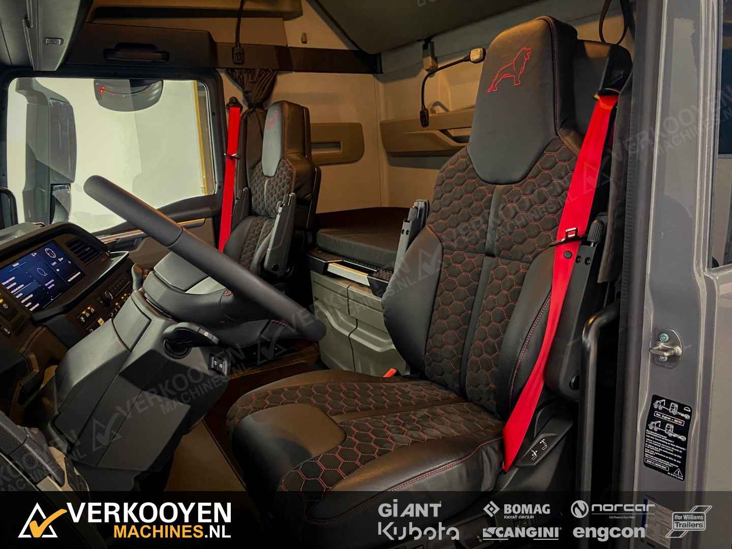 MAN TGX 26.640 6x2 Auto is voorzien van - 640pk 15,6ltr motor - Voorloop-as -> Lift-as is ten alle tijden liftbaar en luchtgeveerd - Liftas is meesturend - LightFix beugel met verstralers (3x rechthoek), zwaailampen en luchthoorns - Flitsers in de grill. - Zwaailampen & flitsers gaan aan bij seinen met groot licht. - LED werklampen achteruit bij instap, achterop en bovenkant achterzijde cabine. - Dakspoiler + Zijfenders, Side-skirts en zonneklep (alle gespoten) - JOST schuif schotel, hoogte 1150 mm - Zwart traanplaat op chassis - MAN slangenrek met slangaansluiting met verlicht MAN-logo - Breedtelampen voor + achter - Bestuurderscomfortpakket Plus voor TGX - Brandstoftank links 460 L - AdBleutank rechts 80 L - Luchtvering op achteras en voorloopas , geen luchtvering op vooras - Schotelhoogte 115cm Opties auto - Airco A/C - Elektrische stand-airconditioning - Koelkast - Adaptive cruise-control - Elektrisch dakluik - LED-koplampen - LED achterlichten en zijmarkeringslichten - Lederen stoelen incl stoelverwarming - Cabineophanging Comfort (luchtgeveerd) - Stoelverwarming Veiligheid - Antiblokkeersysteem (ABS) - Antislipregeling (ASR) - Elektronisch stabiliteitsprogramma (ESP) - Lane departure warning - Hill-assist - Lane Return Assist (LRA) - Lane Change Support LCS en dodehoekhulp - Spiegels verwarmd Infotainment - MAN mediasysteem Naviagtion Professional 12,3inch - MAN Soundsystem Advanced met subwoofer - MAN Telematics - Radio - Bluetooth telefoon verbinding - Navigatiesysteem (incl navigatiekaart Europa en Rusland) - Apple CarPlay + Android Auto + Mirrorlink Cabine - Cabine GX: de maximale - Kleur: Nardogrijs Audi LY7C - Kleurambiance Moon Grey interieur - Glazen kanteldak, elektrisch - 2x Matras comfortbed 110mm - Contactdoos 230v - Instapverlichting voor bestuurderszijde "Leeuw" en bijrijderszijde "MAN" Assen / Banden Vooras 9.200 kg, niet aangedreven, bladgeveerd. Banden 1e as: 385/55R22.5 Voorloopas 8.200 kg, niet aangedreven, gestuurd, hefbaar, luchtgeveerd. Banden 2e as: 315/70R22.5 Achteras 13.000 kg, Luchtgeveerd. Banden 3e as: 315/70R22.5