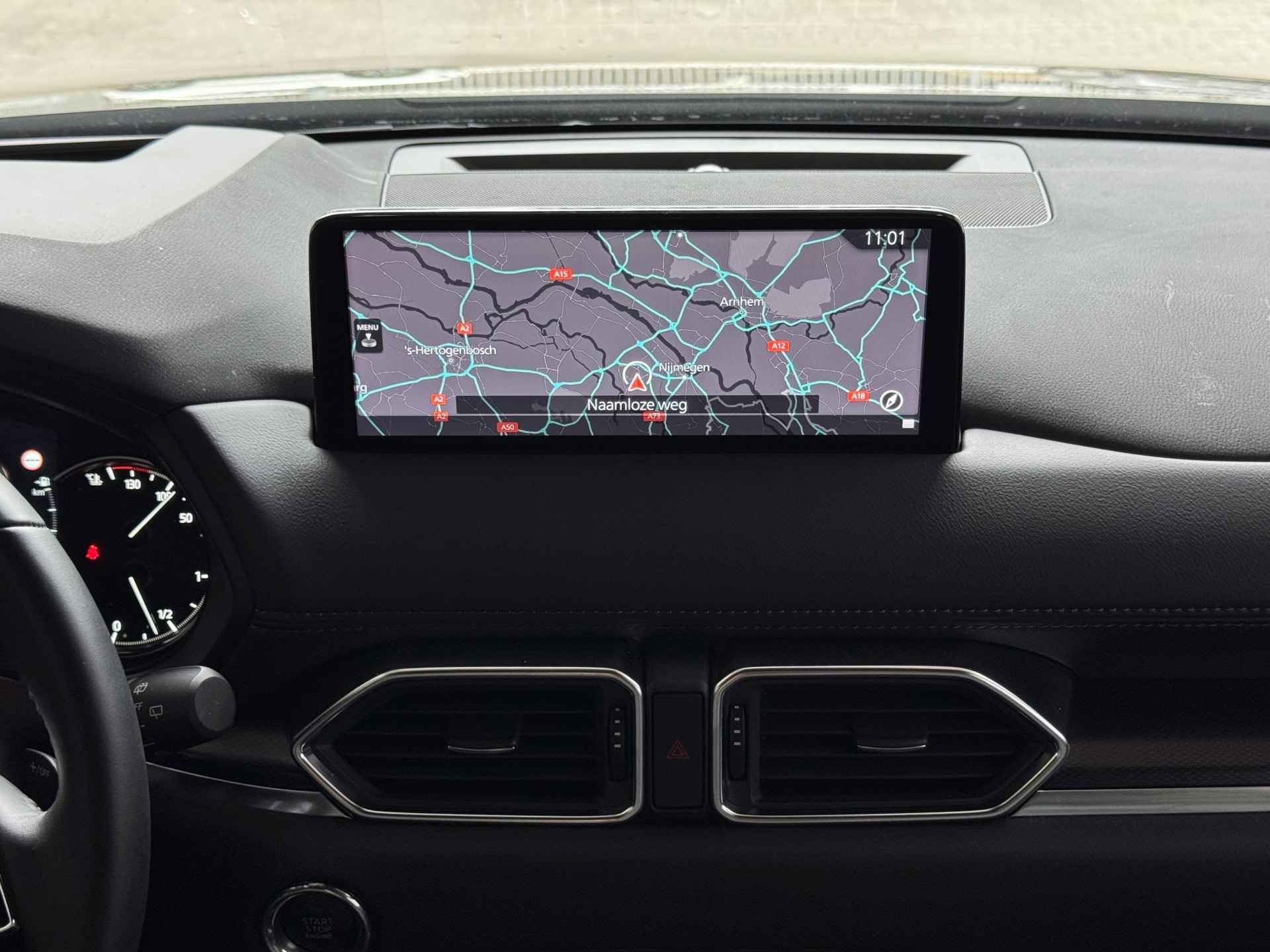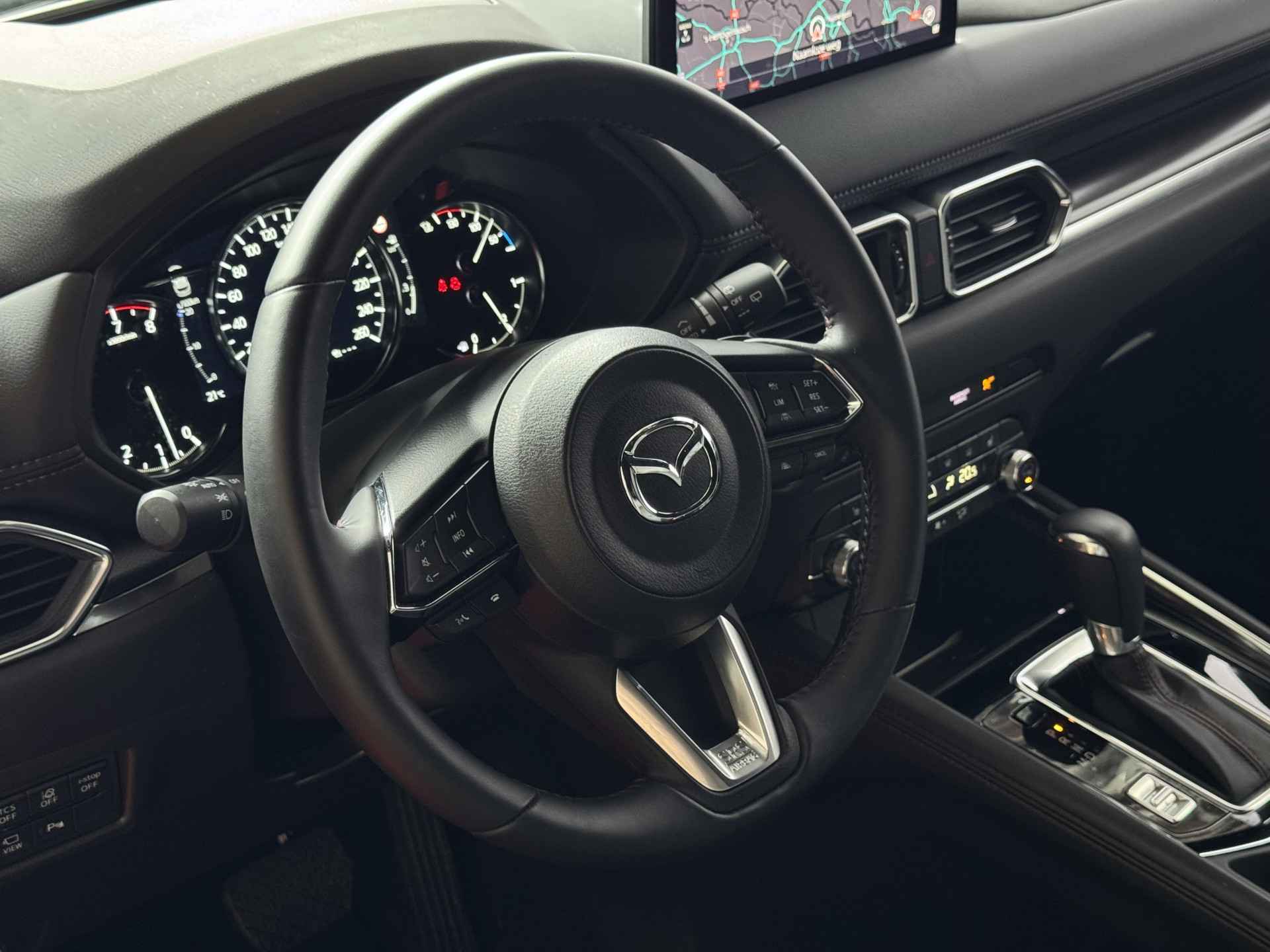 De Mazda CX-5 zit boordevol slimme technologieën die uw rijervaring naar een hoger niveau tillen. Met het geavanceerde Head-Up Display en het multimedia-navigatiesysteem met Apple CarPlay en Android Auto blijft u verbonden zonder afleiding. De auto is uitgerust met adaptieve cruise control, een rondomzichtcamera en diverse rijhulpsystemen zoals dodehoekdetectie en rijstrooksensor met correctie, zodat u altijd veilig en ontspannen op weg bent.