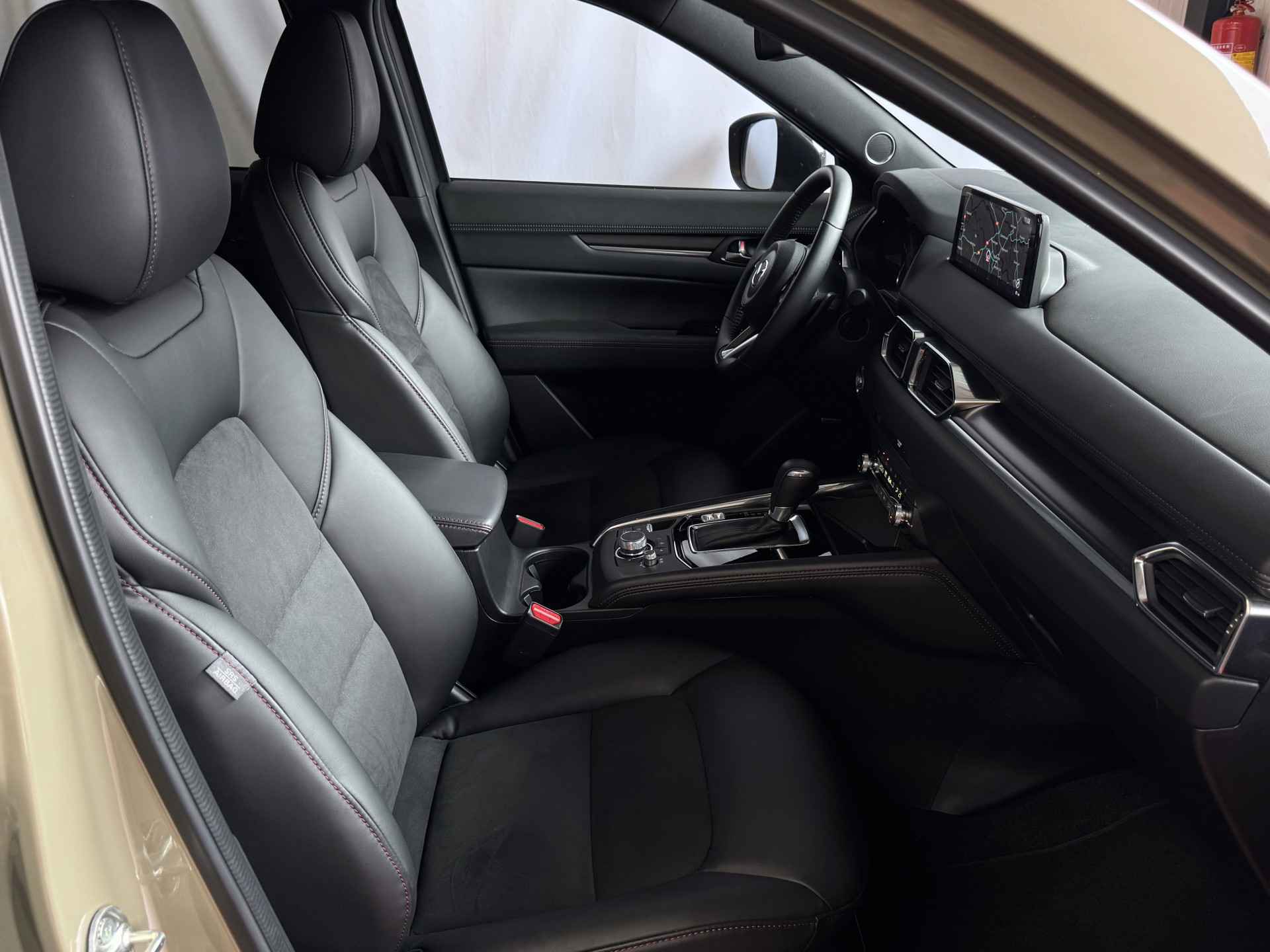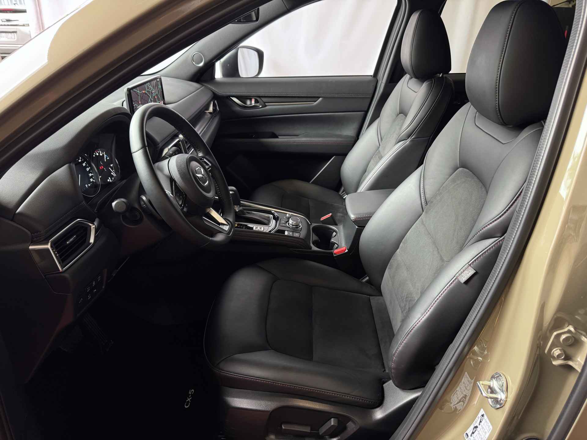 Stap in en ervaar het verschil: de CX-5 biedt een stille, verfijnde rijervaring met hoogwaardige materialen en een ergonomisch interieur dat luxe uitstraalt. De lederen stuurwielbekleding en comfortabele ederen/alcantara stoelen zorgen ervoor dat u en uw passagiers altijd in stijl reizen. De elektrisch verstelbare bestuurdersstoel en het in hoogte verstelbare stuurwiel maken het gemakkelijk om de perfecte rijpositie te vinden, zodat elke rit comfortabel en ontspannen verloopt.
