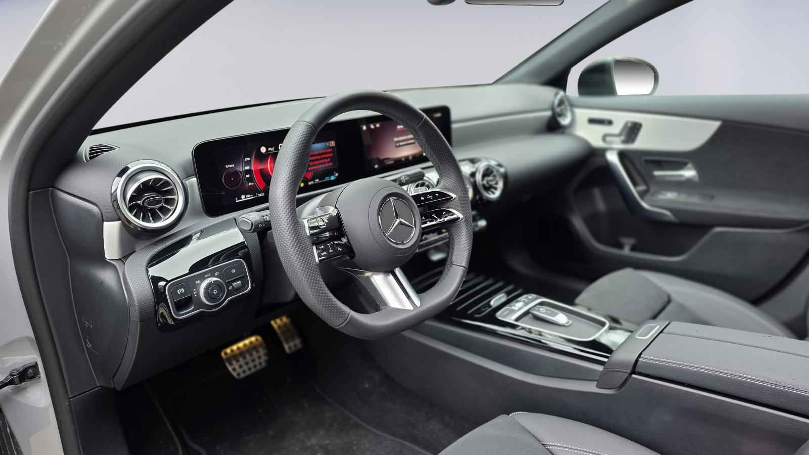 Dynamische styling, zorgvuldig afgewerkt met fraaie materialen en ontworpen met oog voor detail. De Mercedes-Benz A-klasse is van binnen en van buiten een toonbeeld van Duits design. Met de AMG-styling trekt u op een positieve manier de aandacht. De aandrijving van deze Mercedes-Benz wordt verzorgd door een viercilinder benzinemotor en een automatische transmissie. Neem plaats op de comfortabele stoelen. Dankzij de elektrische bediening en het geheugen is het eenvoudig om hierin de beste zitpositie te vinden. Licht, luxe en gemak komen samen in de vorm van het elektrische bediende glazen panoramadak. De kwaliteit van de matrix LED-verlichting geeft het gevoel dat u bij daglicht rijdt. U wordt in deze auto ook getrakteerd op 19 inch lichtmetalen velgen, AMG-styling, extra getint glas, in delen neerklapbare achterbank, LED-achterlichten en snelheidsafhankelijke stuurbekrachtiging.
