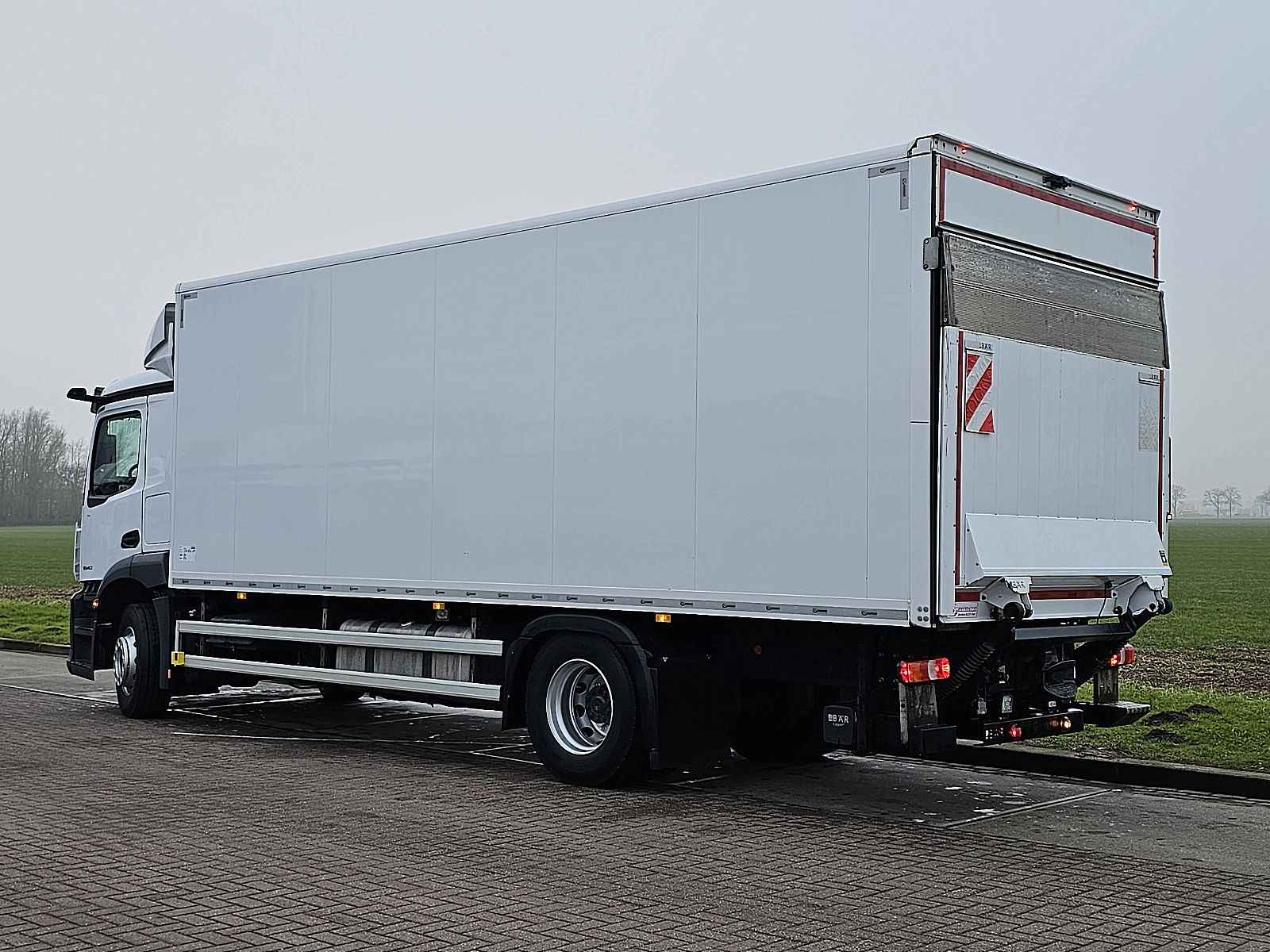 Aantal Assen: 2, Configuratie: 4x2, Eigen gewicht: 9400 kg, Totaalgewicht: 18000 kg, Diesel inhoud totaal: 500 liter, Aanhangwagen kopp., Dikte koppelingspen: 40 DIN, Aantal sperren: 1, Vering type: luchtvering, Soort cabine: Korte cabine, Cruise control, Tachograaf, Digitale tachograaf, Airconditioning, Aantal airbags: 1, Elektrische ramen, Elektrische spiegels, Radio/cassette, GPS navigatie, Kleur: Wit, Verwarmde spiegels, Spiegel camera, Achteruitrij camera, Soort lampen: Halogeen, Laneassist, Climatecontrol, Stoelverwarming, Bluetooth, Dodehoek detectie, Motorvermogen: 290 Kw (389 Hp), Brandstof: diesel, Euro: 6, Soort versnellingsbak: Telligent, Merk versnellingsbak: Mercedes Benz, Versnellingen: 12, Extra remsysteem, Merk retarder: Voith, Stuurbekrachtiging, ABS (Anti Blokkeer Systeem), ASR (Anti Slip Regeling), Start accu, Centrale vergrendeling, Stoelopstelling: 1+1, Stoelbekleding: stof, Stoel verstelling: Handmatig, Laadklep, Soort laadklep: achtersluit klep, Capaciteit laadklep: 2000 kg, Merk laadklep: Bar Cargolift, Materiaal laadklep: aluminium, Plateau grootte: 201 x 252