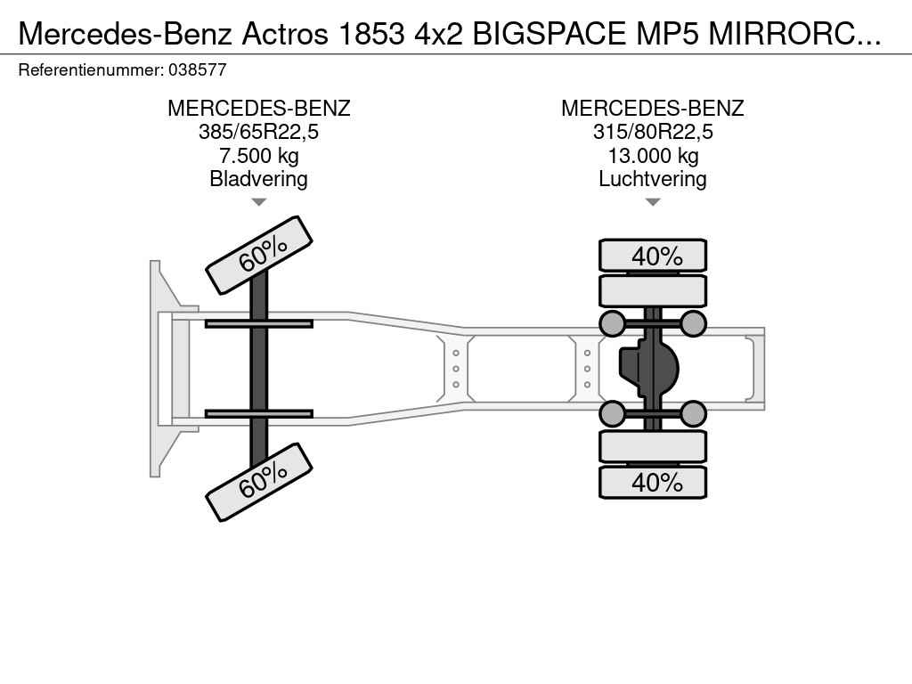 • Model: Mercedes-Benz Actros 1853 LS 4x2 BigSpace MP5