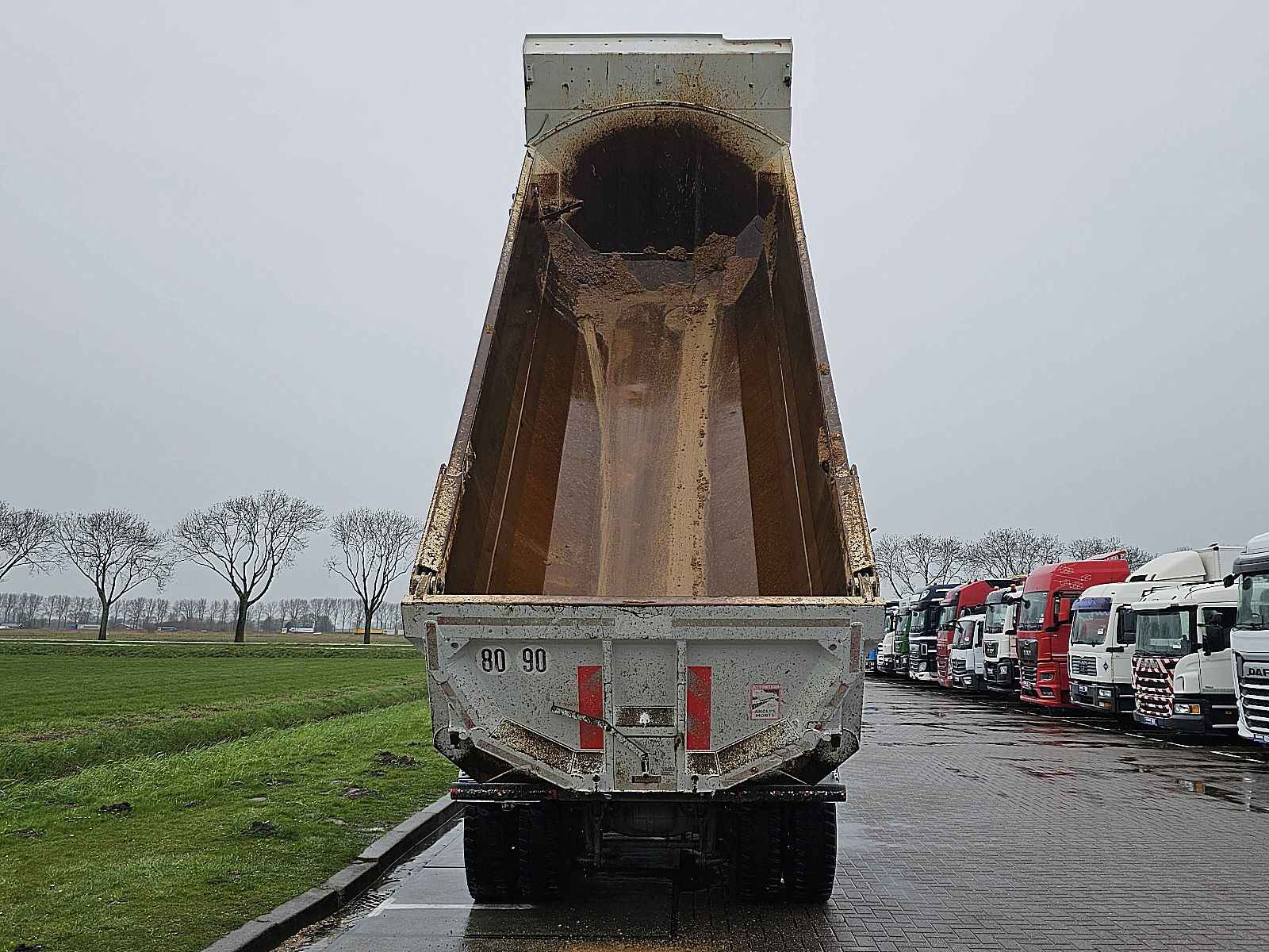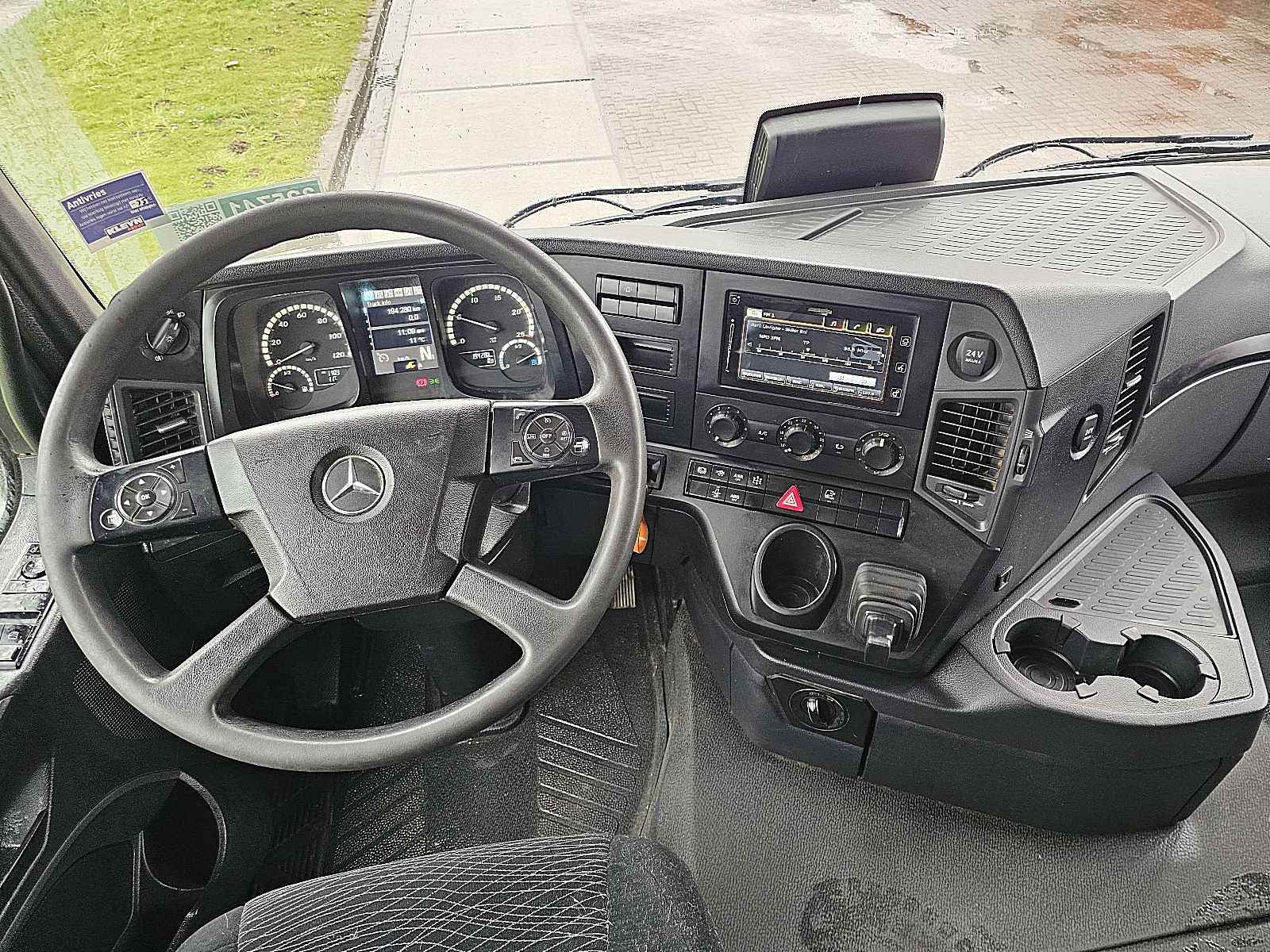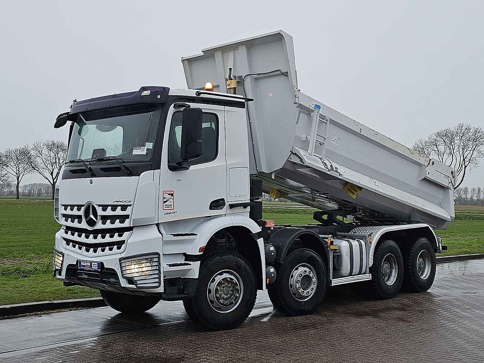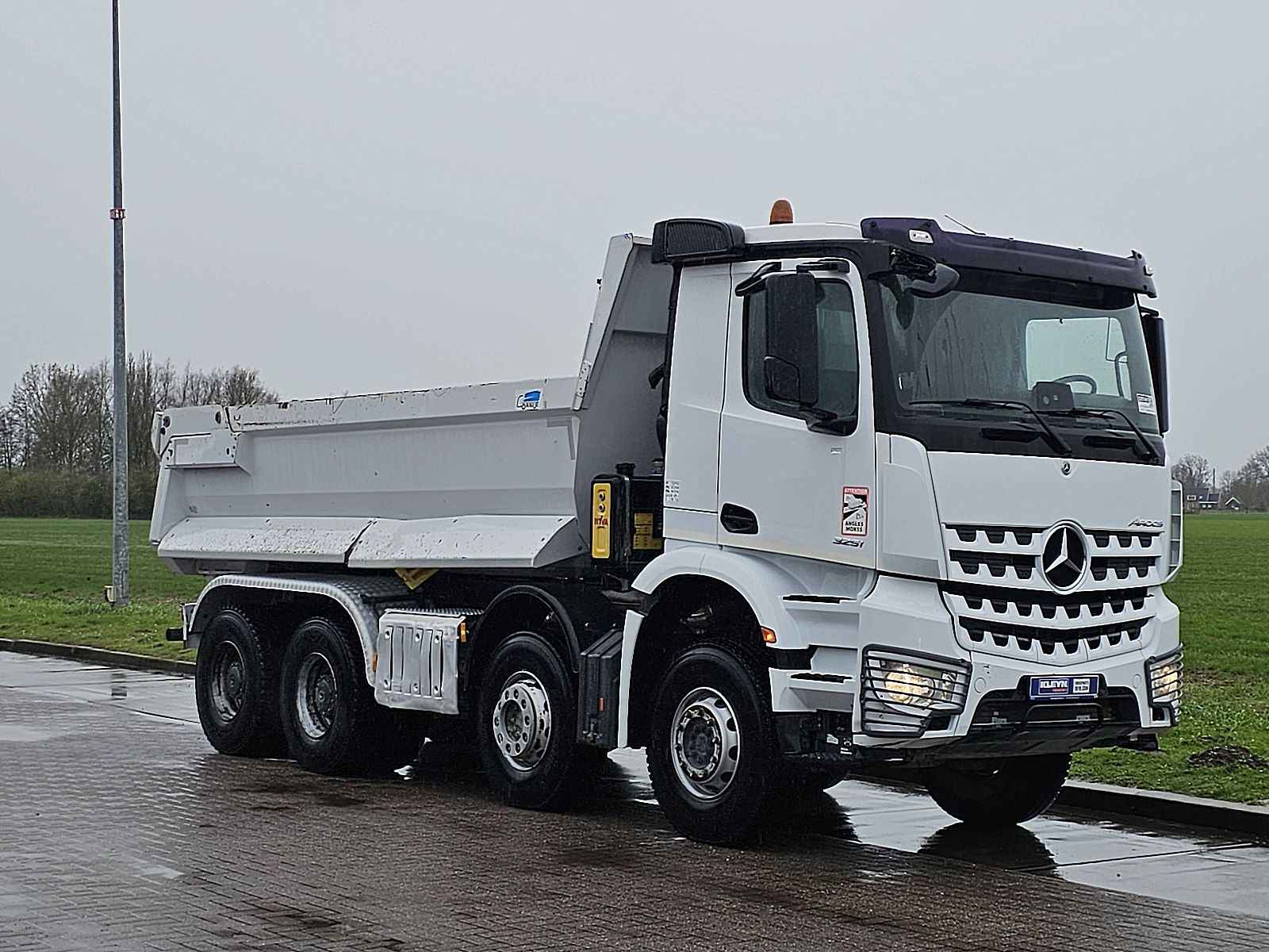 Aantal Assen: 4, Configuratie: 8x4, Eigen gewicht: 15100 kg, Totaalgewicht: 32000 kg, Diesel inhoud totaal: 320 liter, Schotel type: Fixed, Aantal sperren: 2, Vering type: bladvering, Soort cabine: Korte cabine, Cruise control, Tachograaf, Digitale tachograaf, Airconditioning, Elektrische ramen, Elektrische spiegels, Radio/cassette, Kleur: Wit, Verwarmde spiegels, Soort lampen: Halogeen, Stoelverwarming, Bluetooth, Zwaailichten, Motorvermogen: 375 Kw (503 Hp), Brandstof: diesel, Euro: 6, Soort versnellingsbak: Telligent, Merk versnellingsbak: Mercedes Benz, Versnellingen: 12, Extra remsysteem, Merk retarder: Voith, Stuurbekrachtiging, ABS (Anti Blokkeer Systeem), ASR (Anti Slip Regeling), PTO, PTO soort: 1, Start accu, Aantal zijden: 1 zijdig kippend, Pomp, Centrale vergrendeling, Stoelopstelling: 1+1, Stoelbekleding: stof, Stoel verstelling: Handmatig